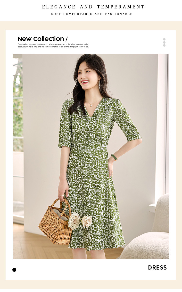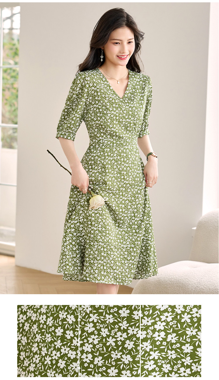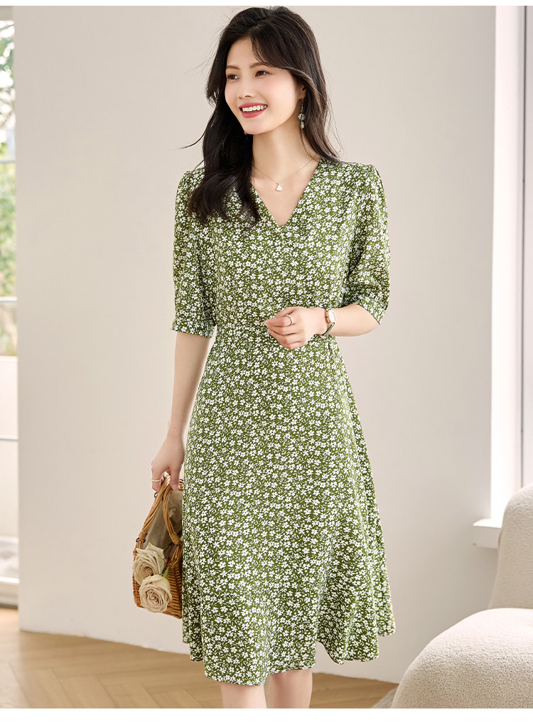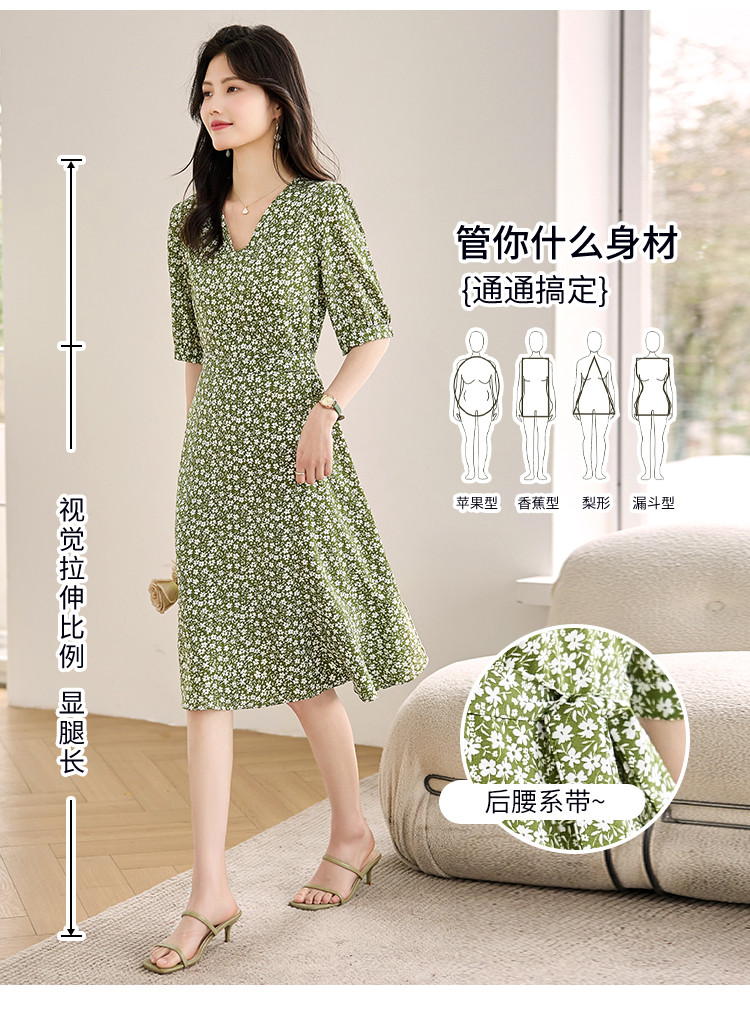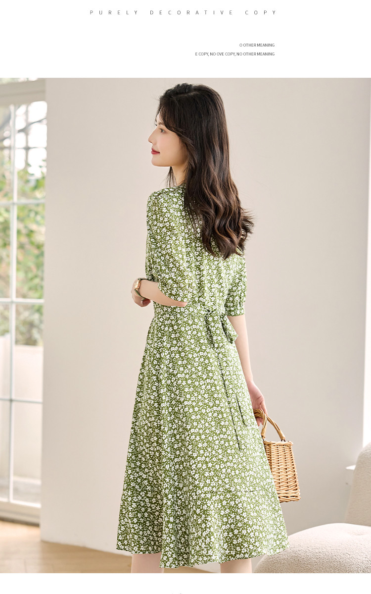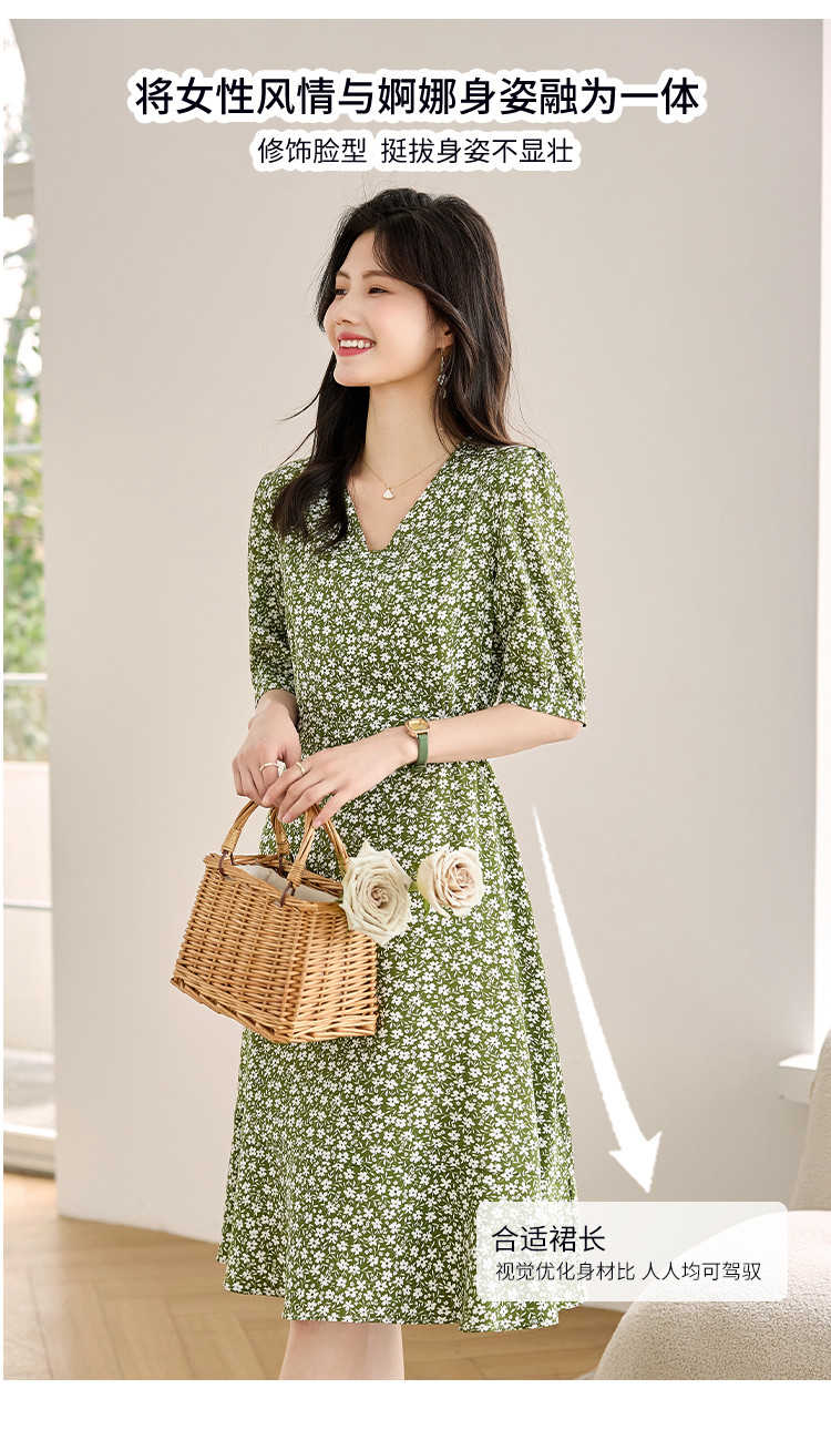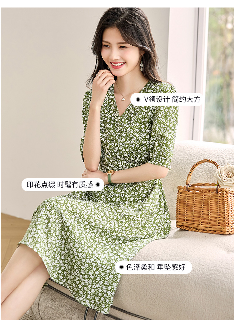 商品名称:2025春夏女装知性淑女气质浪漫印花雪纺轻奢连衣裙 434008
