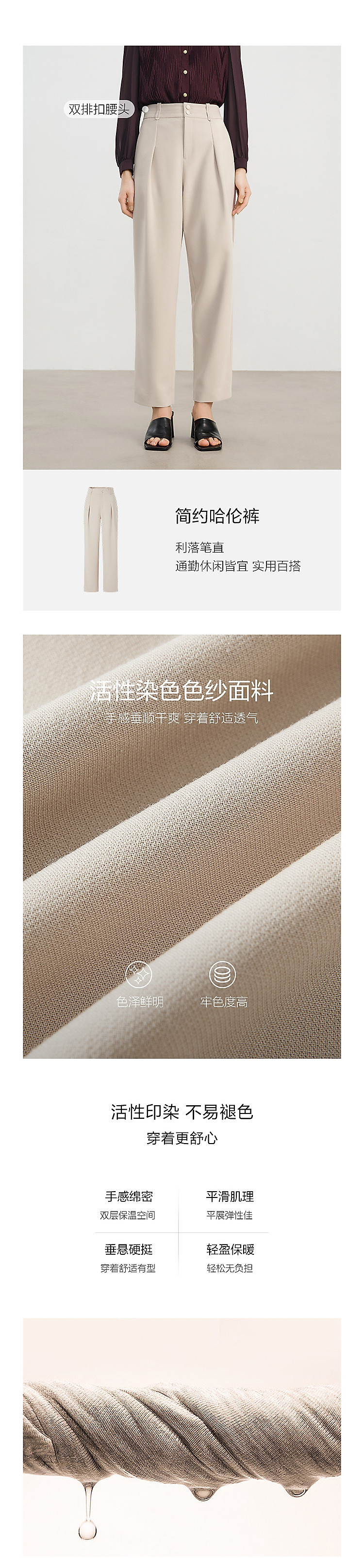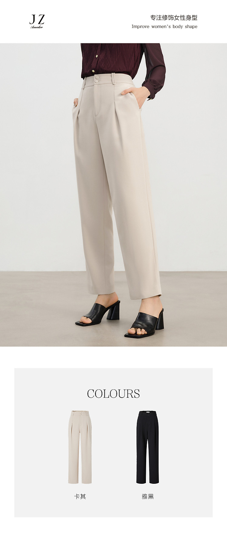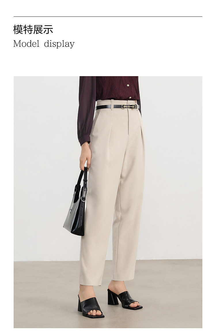 商品名称:玖姿旗下安娜蔻系列通勤压褶刺绣休闲裤女春季 433676
