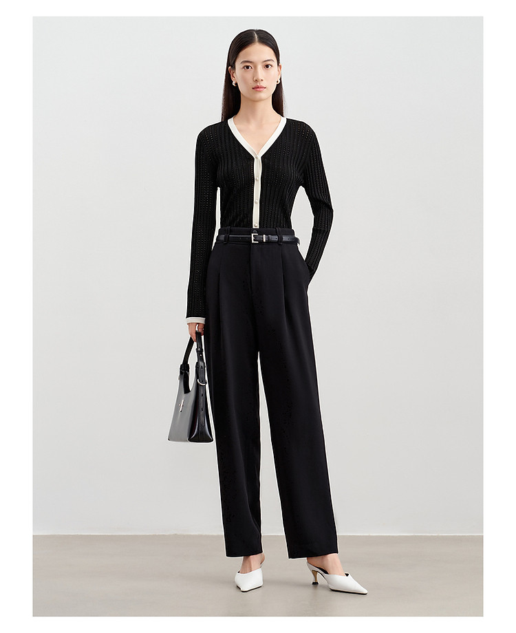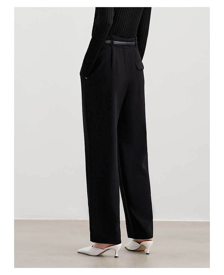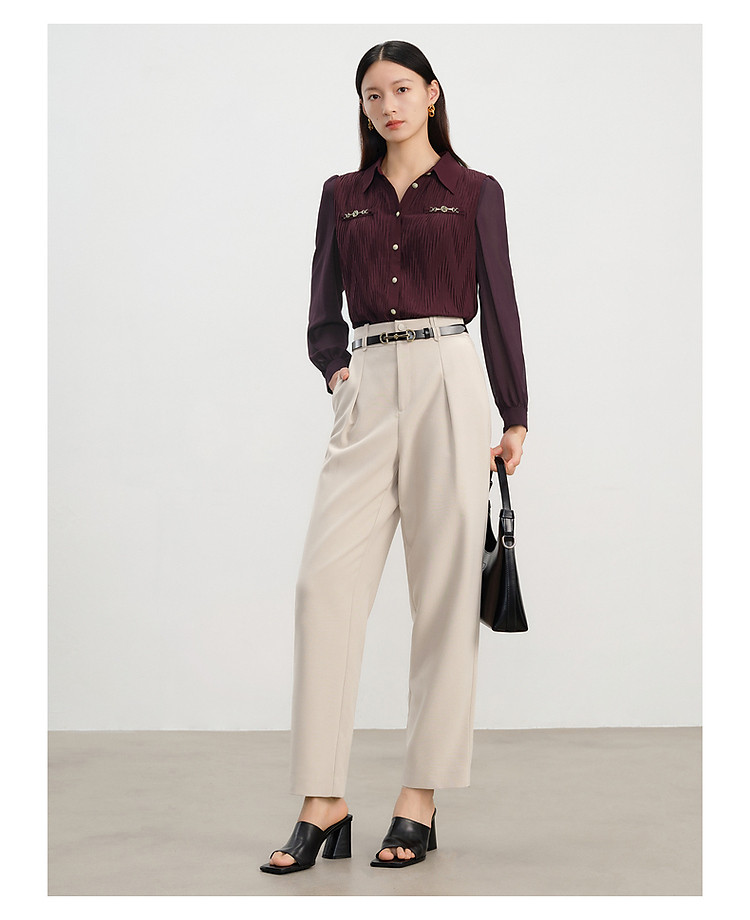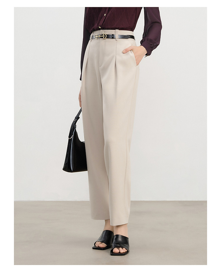 玖姿旗下安娜蔻系列通勤压褶刺绣休闲裤女春季 433676