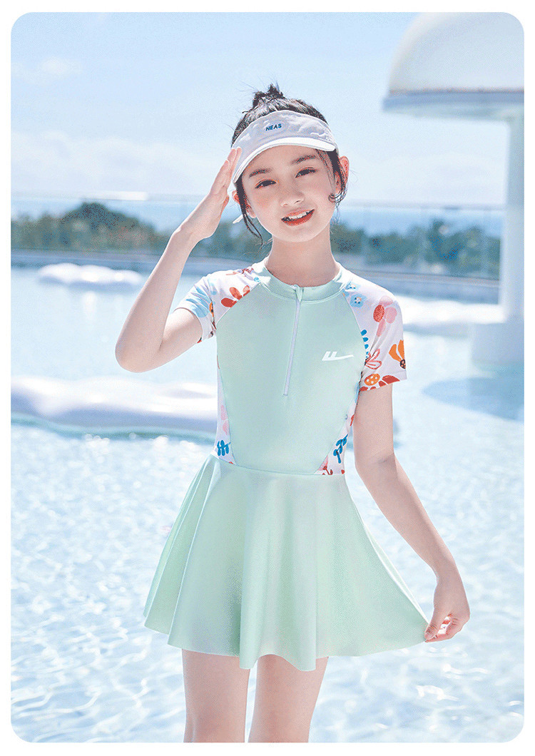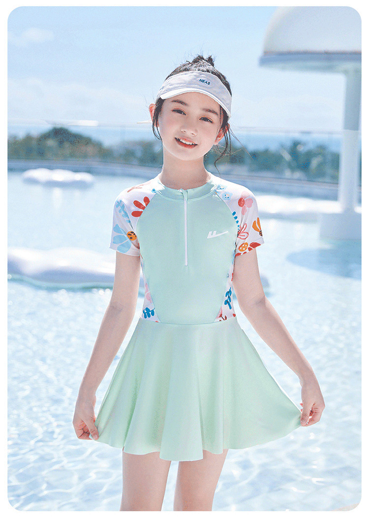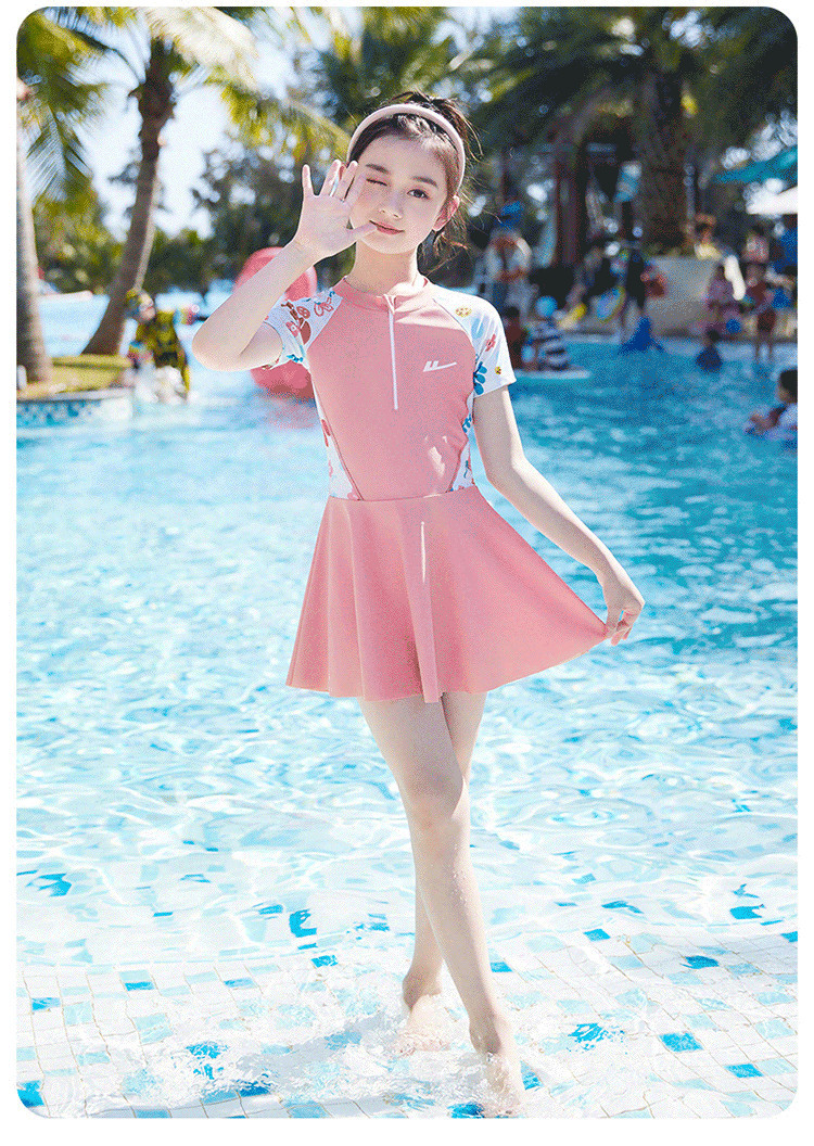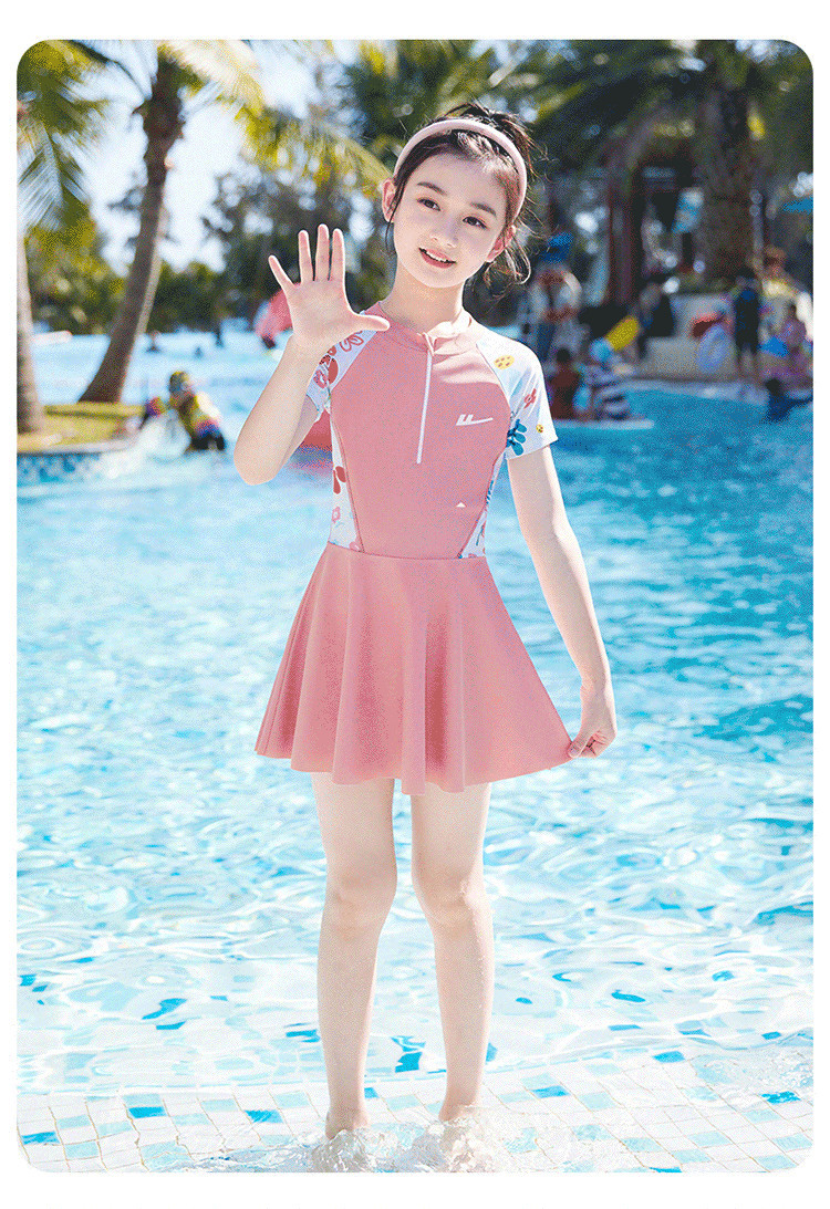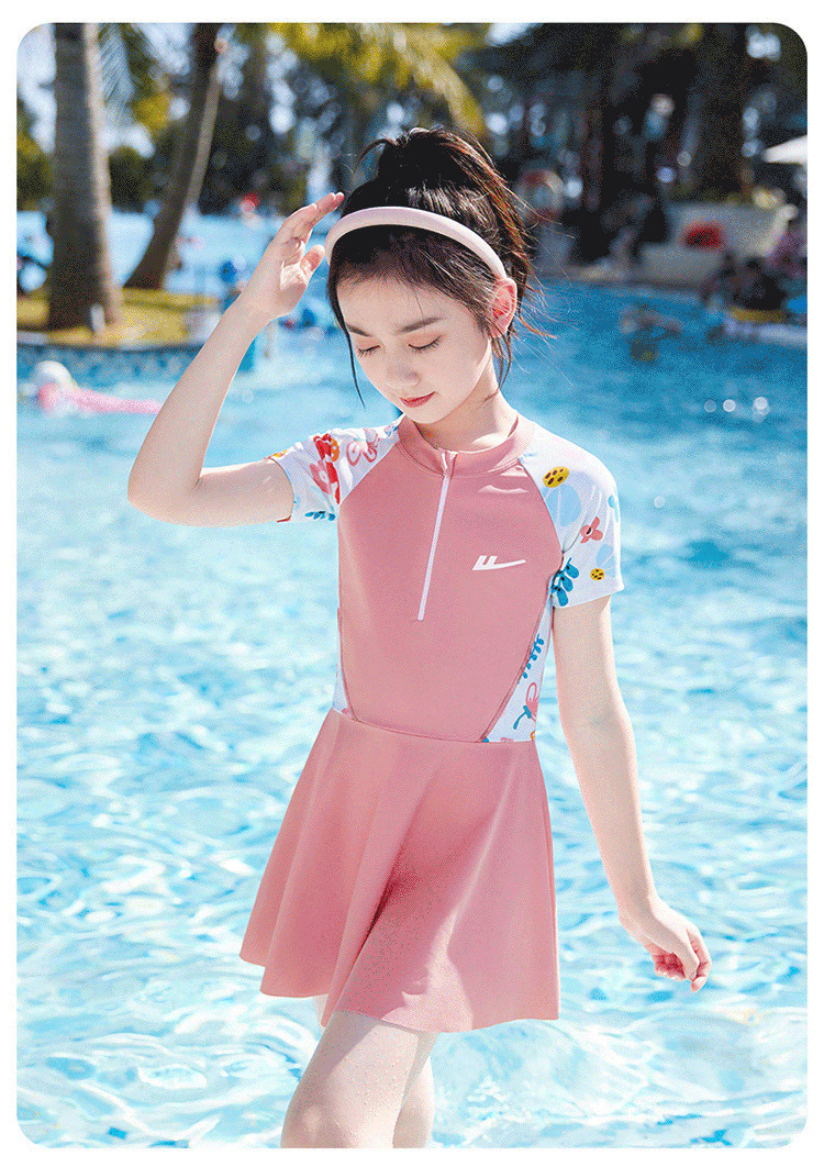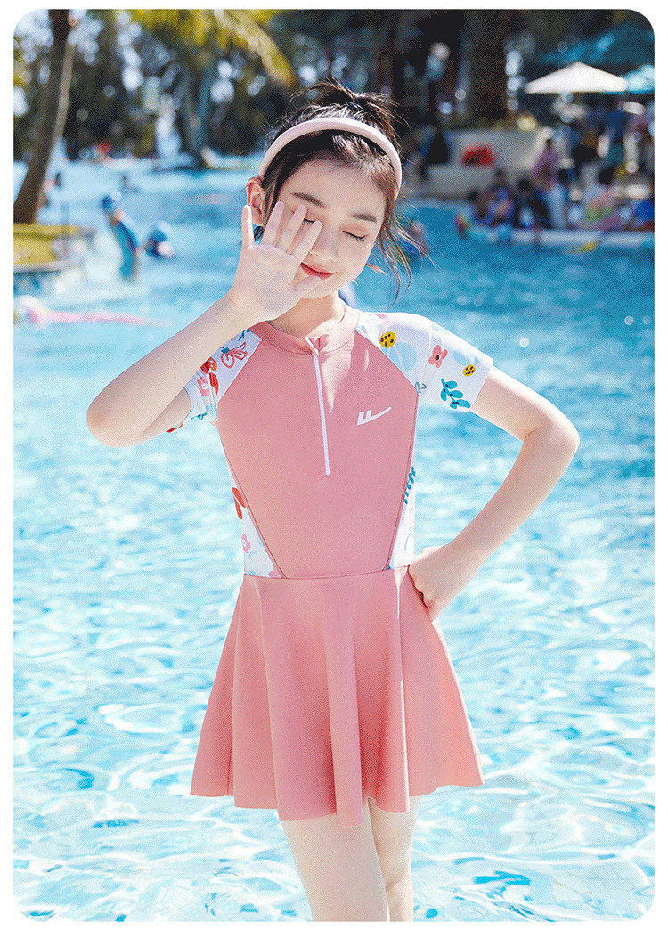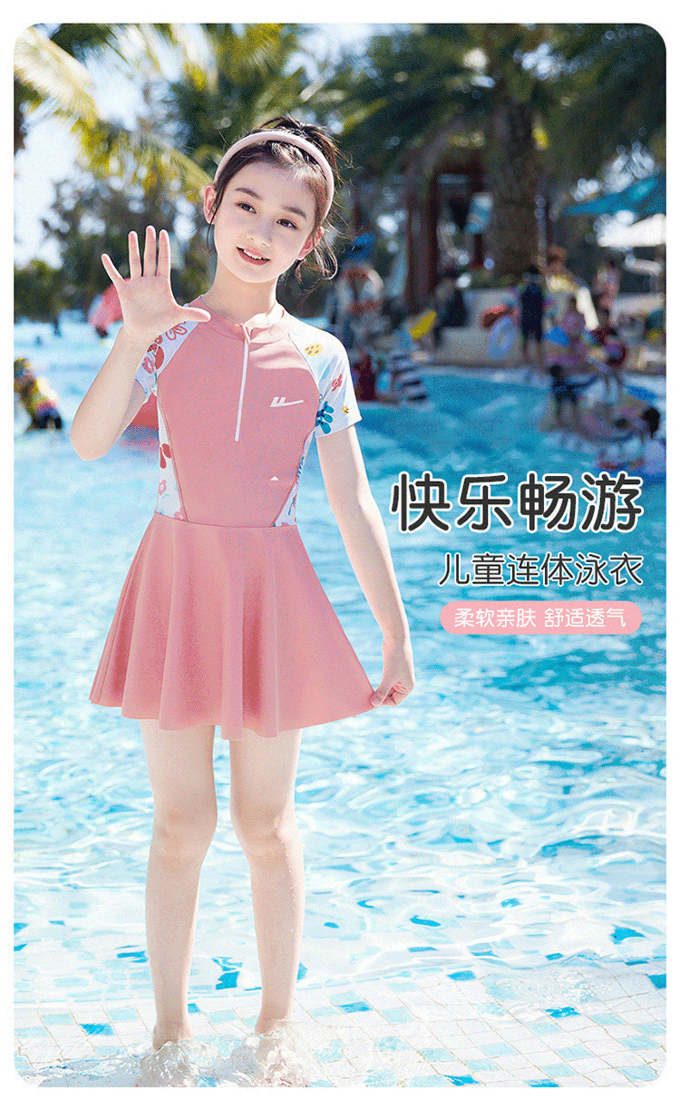 商品名称:儿童泳衣女孩甜美连体小公主游泳衣中大童泳裙泡温泉泳装 704403