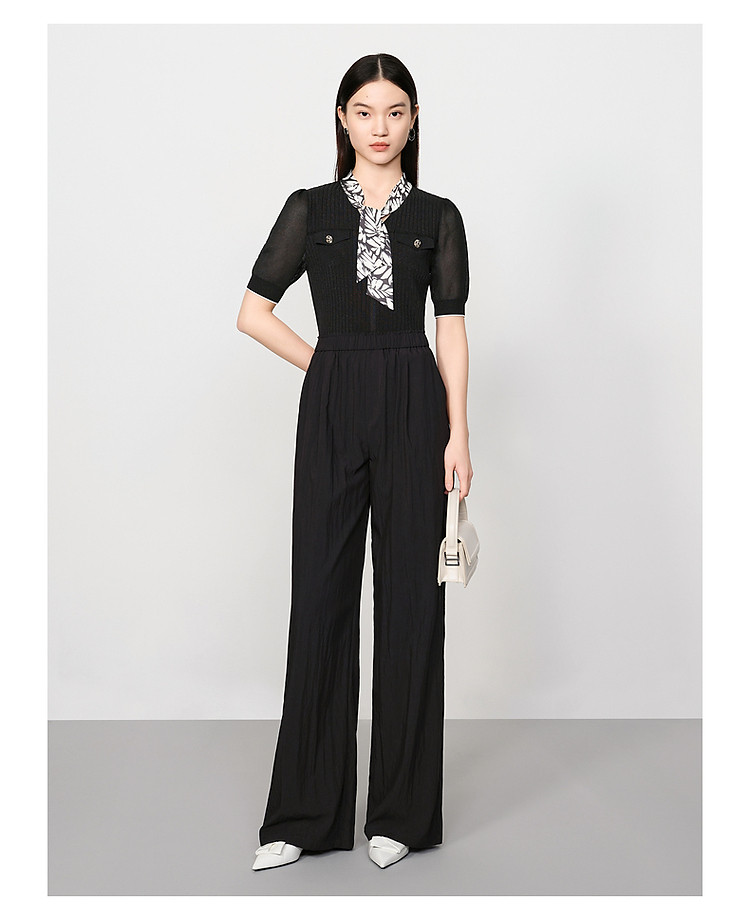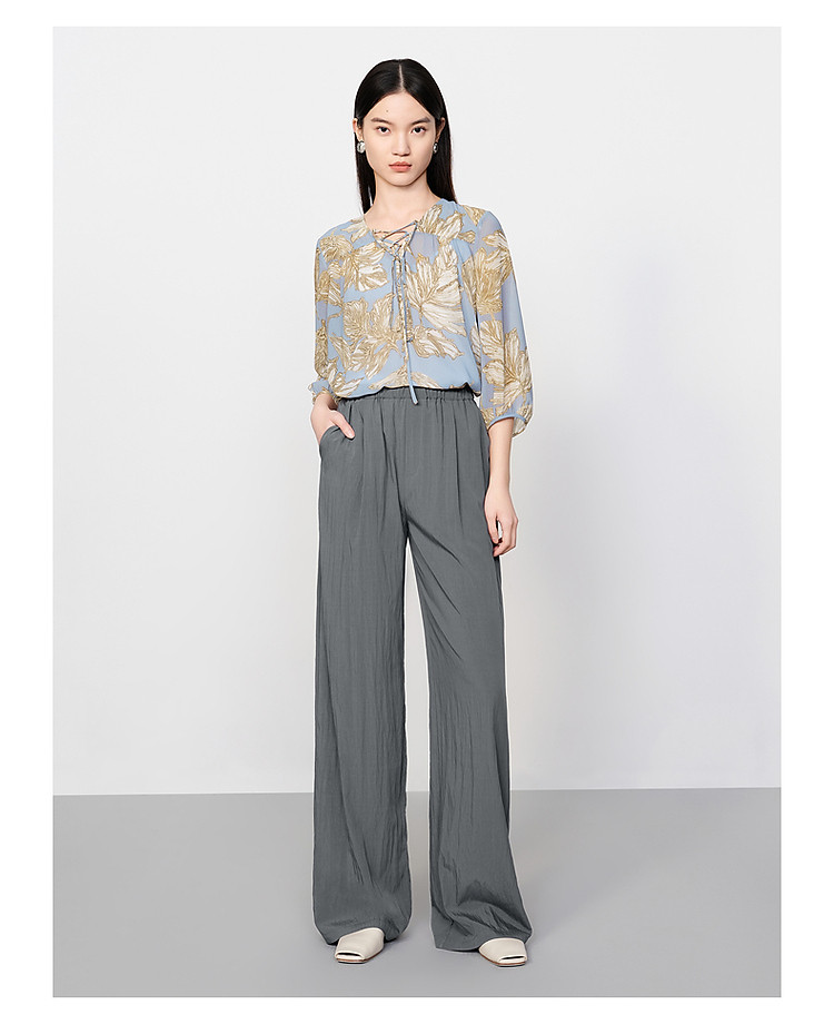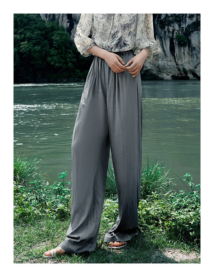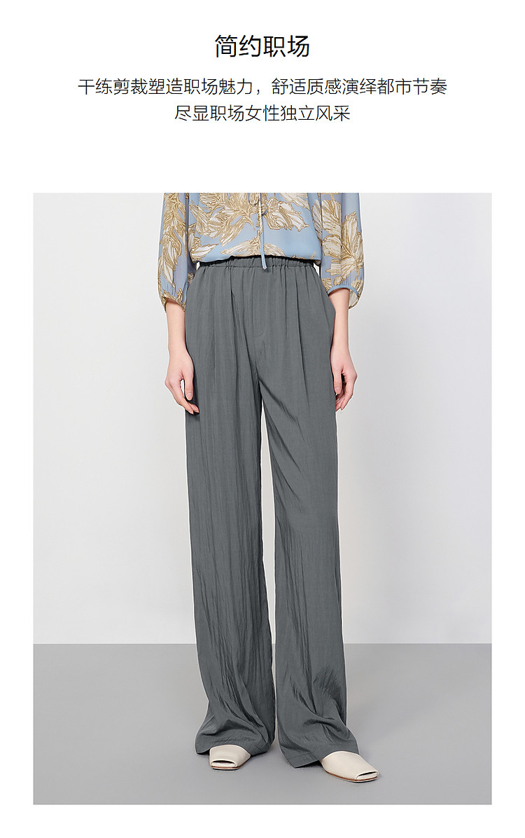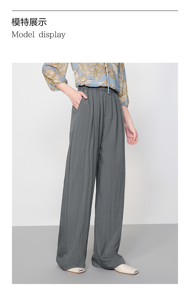 旗下安娜蔻系列休闲慵懒风肌理薄松紧腰阔腿裤休闲裤女夏季 461836