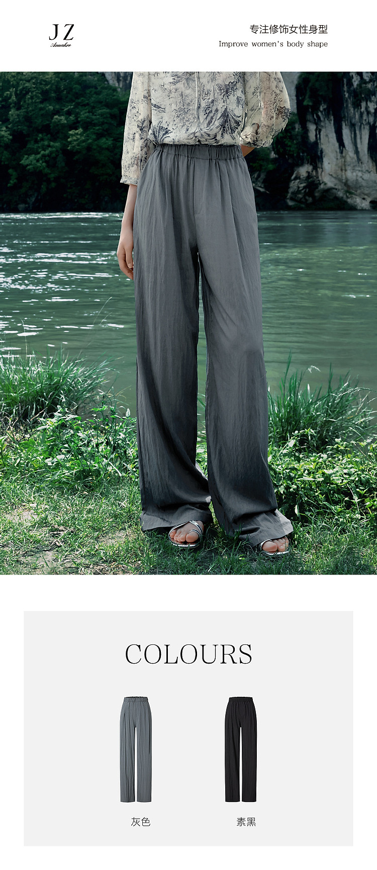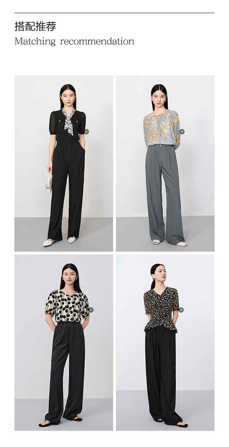 商品名称:旗下安娜蔻系列休闲慵懒风肌理薄松紧腰阔腿裤休闲裤女夏季 461836