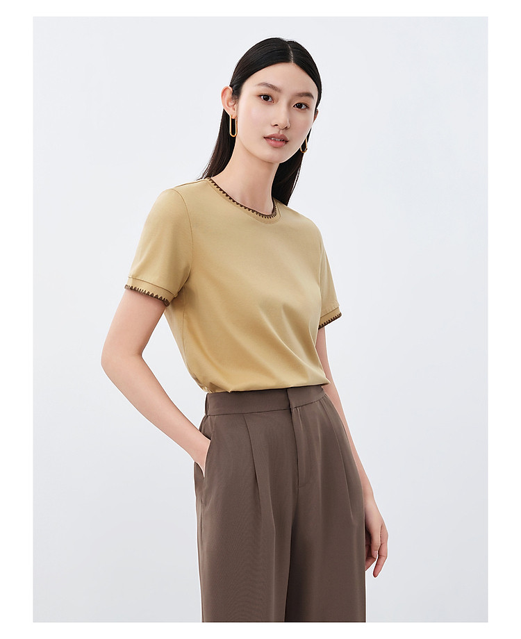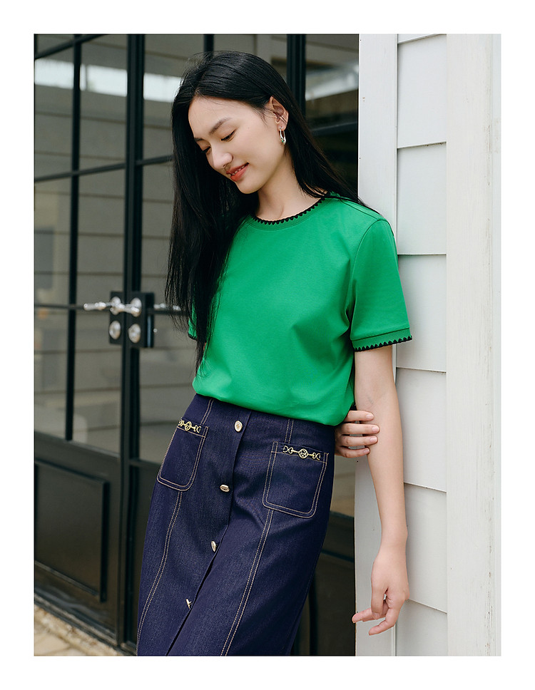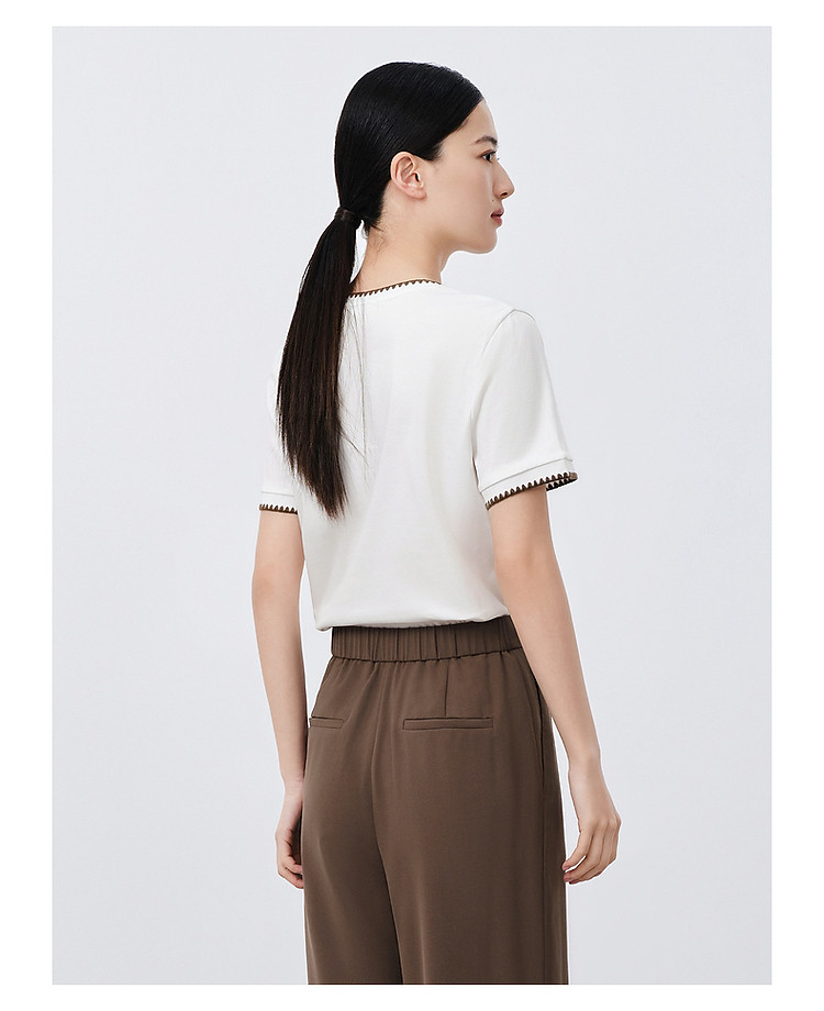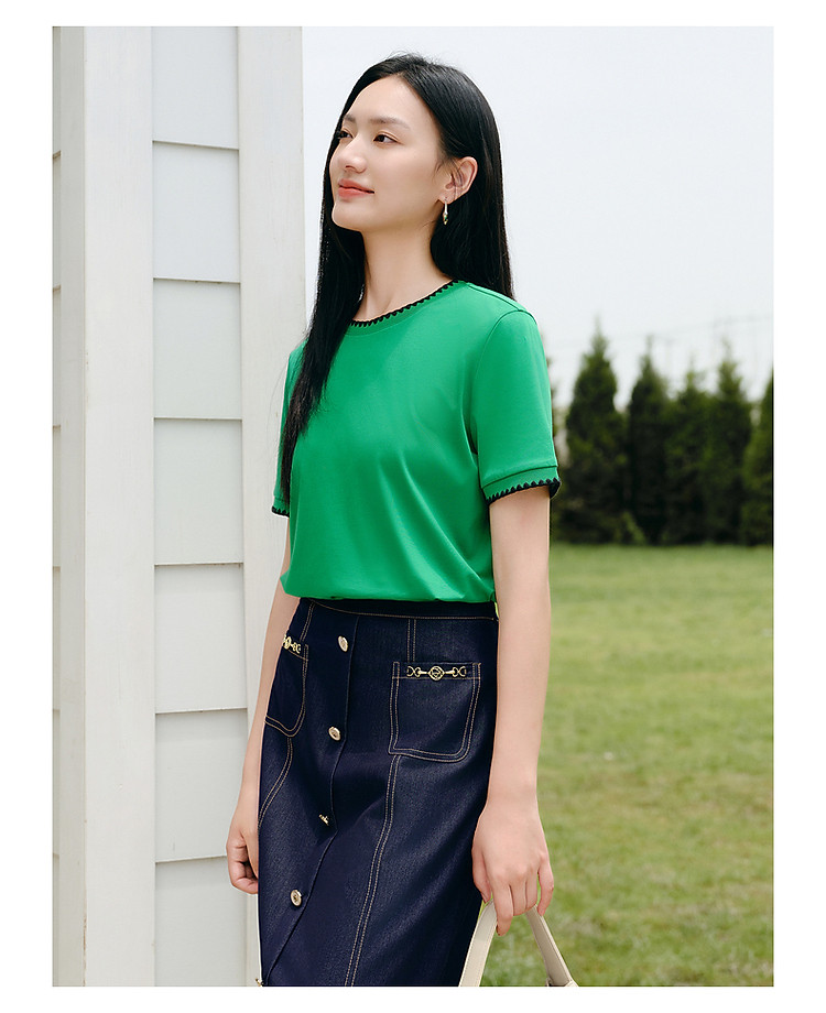 【薄荷曼波】旗下安娜蔻系列简约圆领撞色宽松短袖T恤女夏季 291340