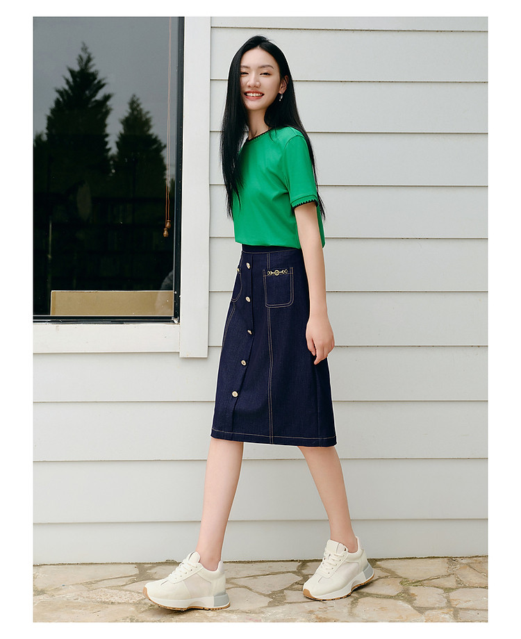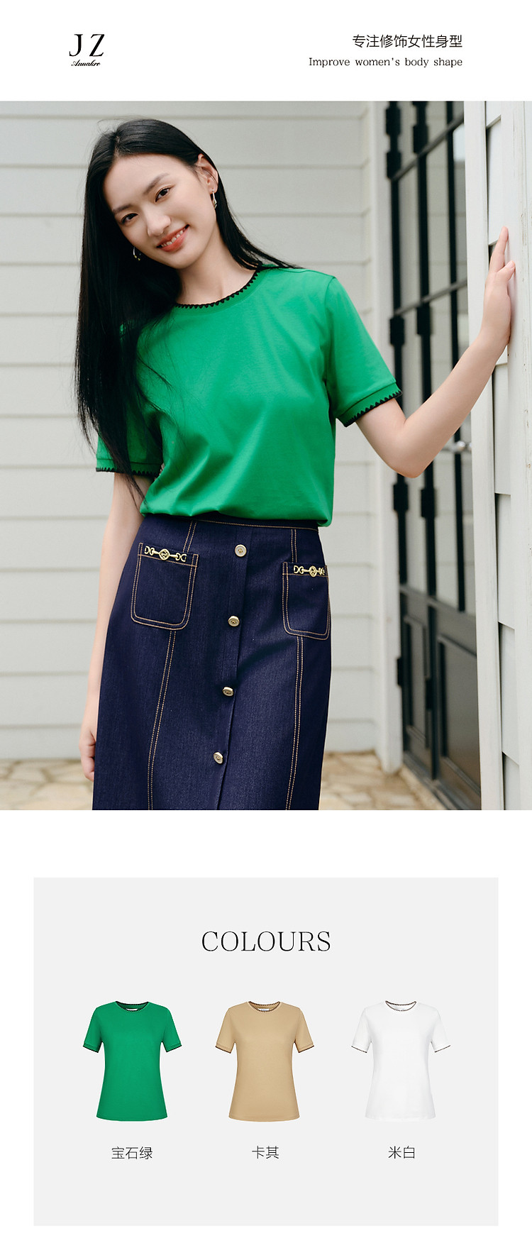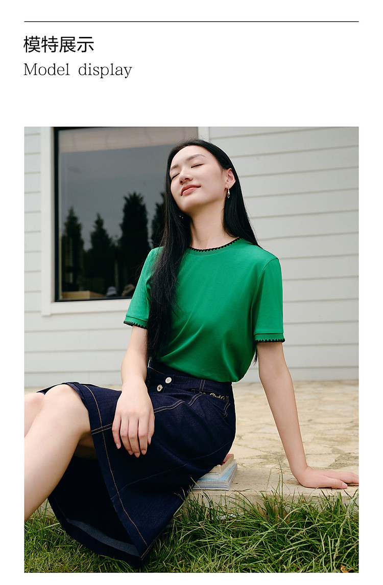 商品名称:【薄荷曼波】旗下安娜蔻系列简约圆领撞色宽松短袖T恤女夏季 291340