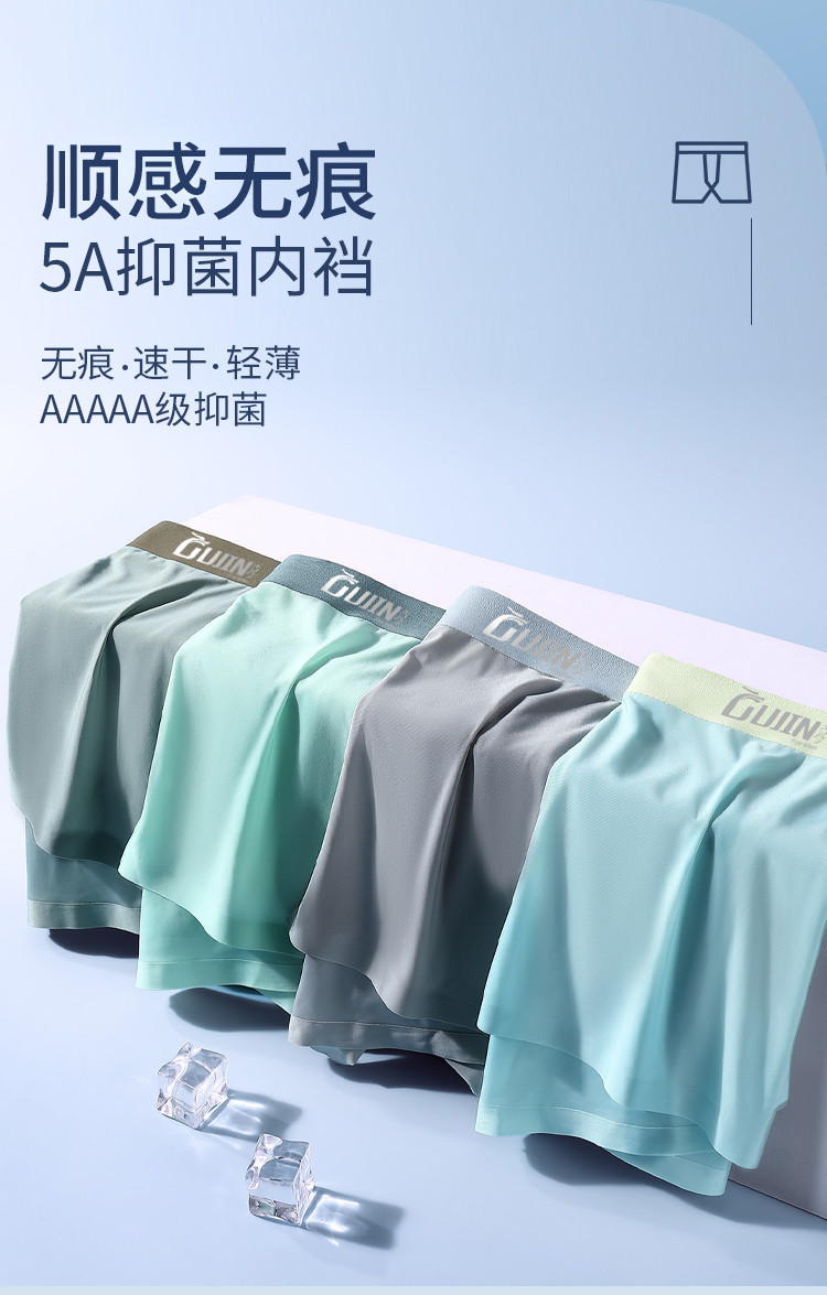 【5A抑菌 自由呼吸无痕】男士内裤男透气冰丝古今平角短裤 761035