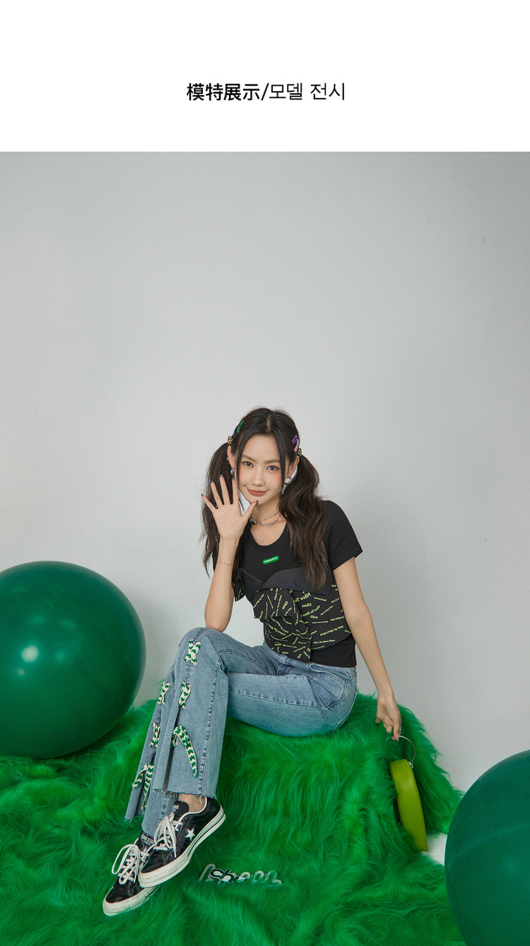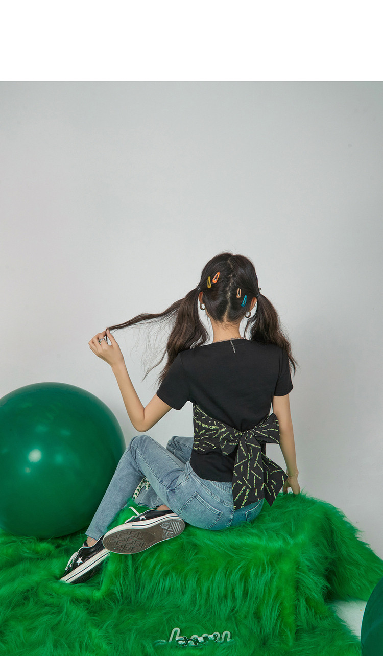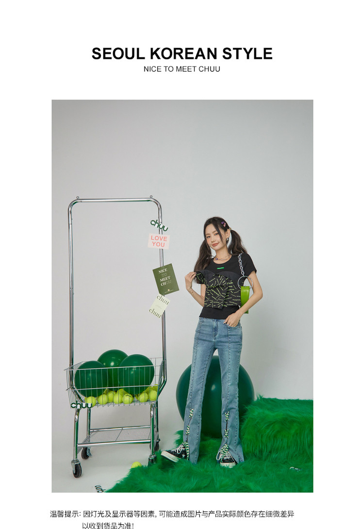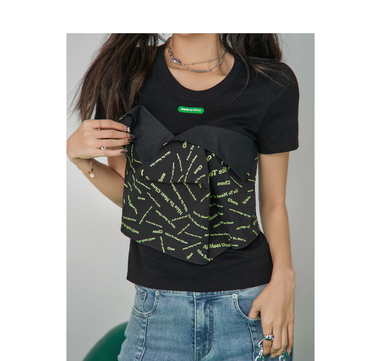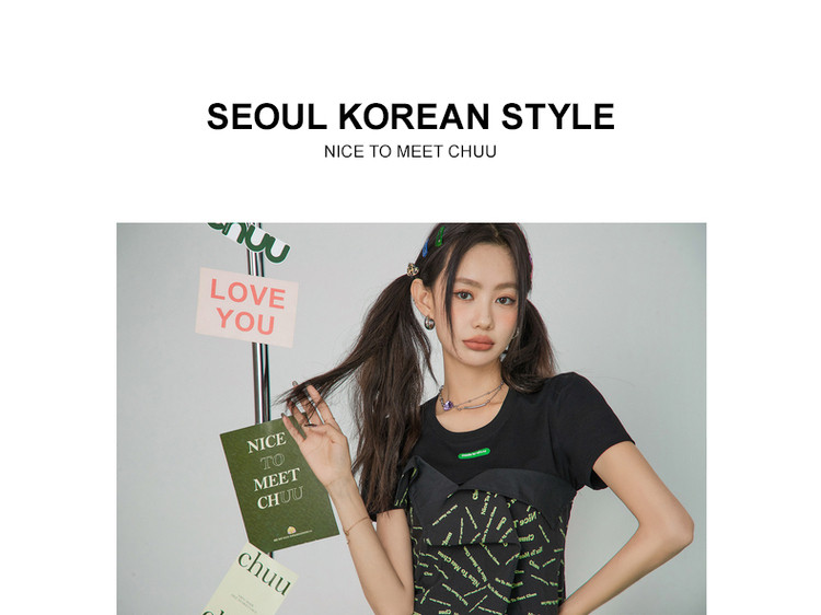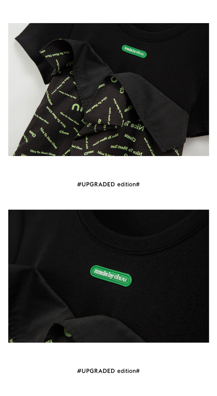 商品名称:CHUU假两件撞色拼接短袖T恤女士夏韩版甜辣上衣 222227