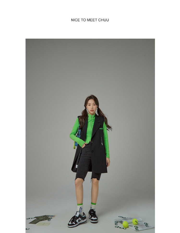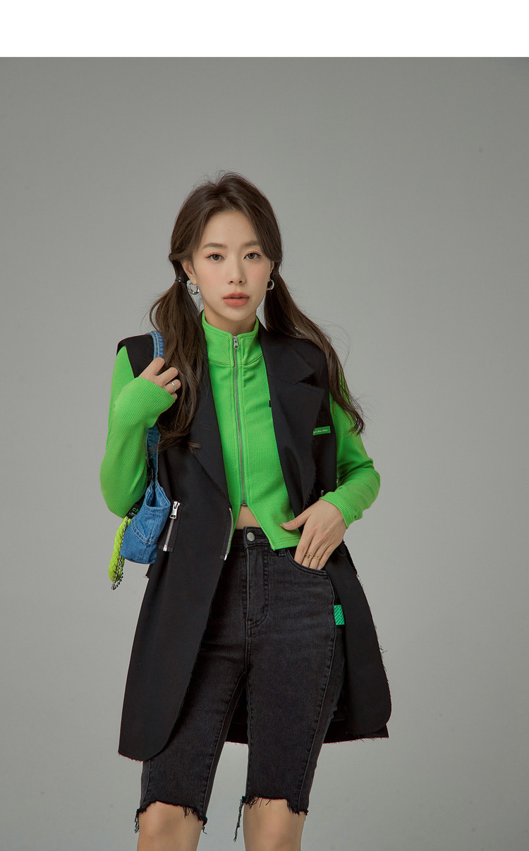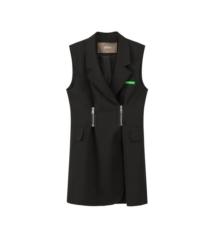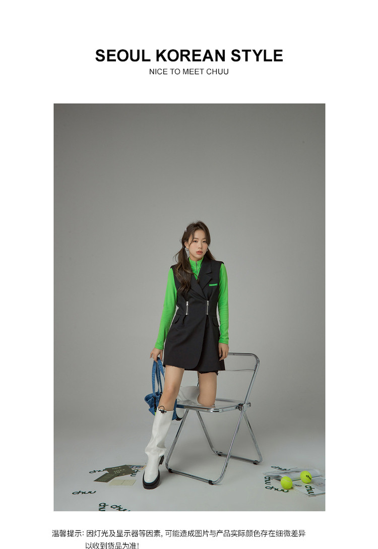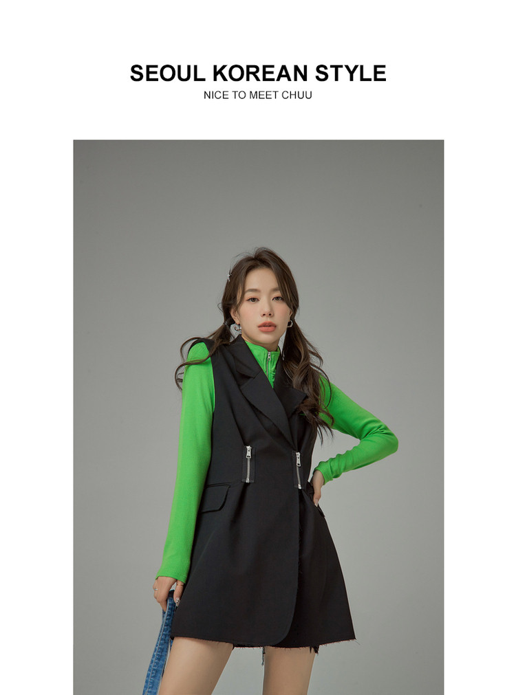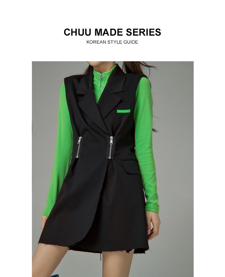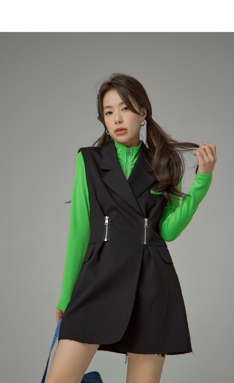 商品名称:多穿拉链无袖连衣裙女春秋西装领马夹短裙子 125971