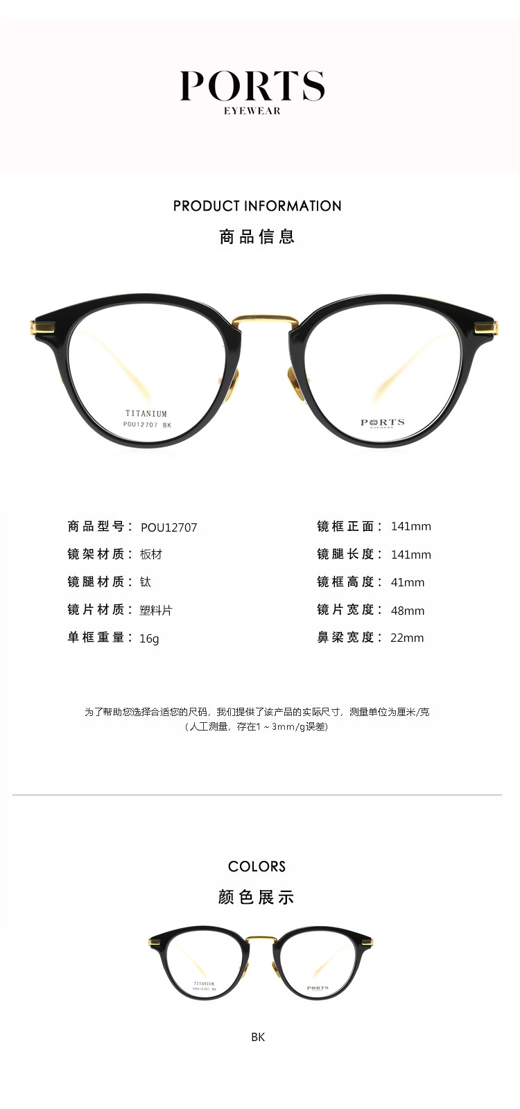 商品名称:PORTS女款休闲复古休闲板材钛眼镜架POU12707 371530