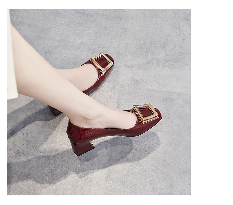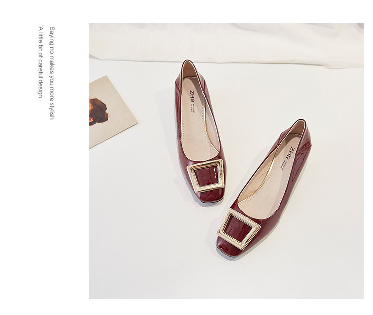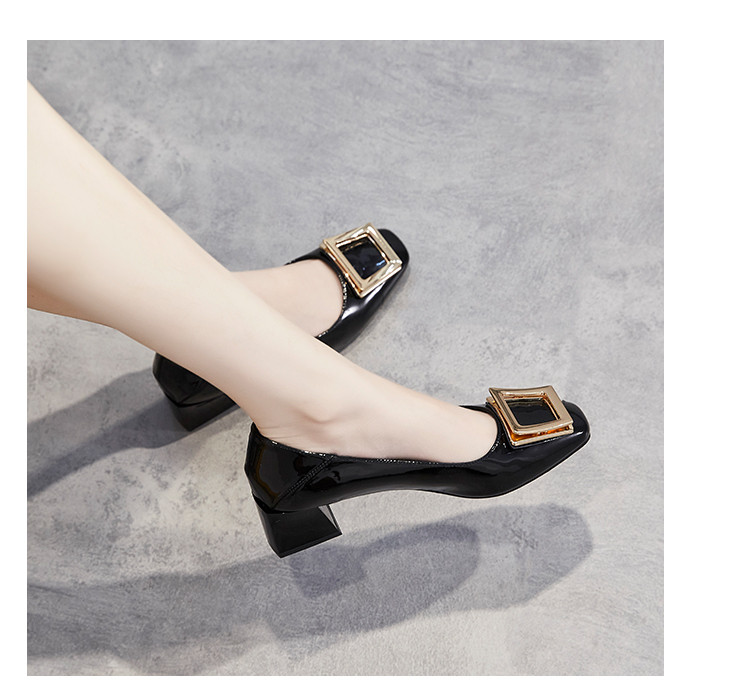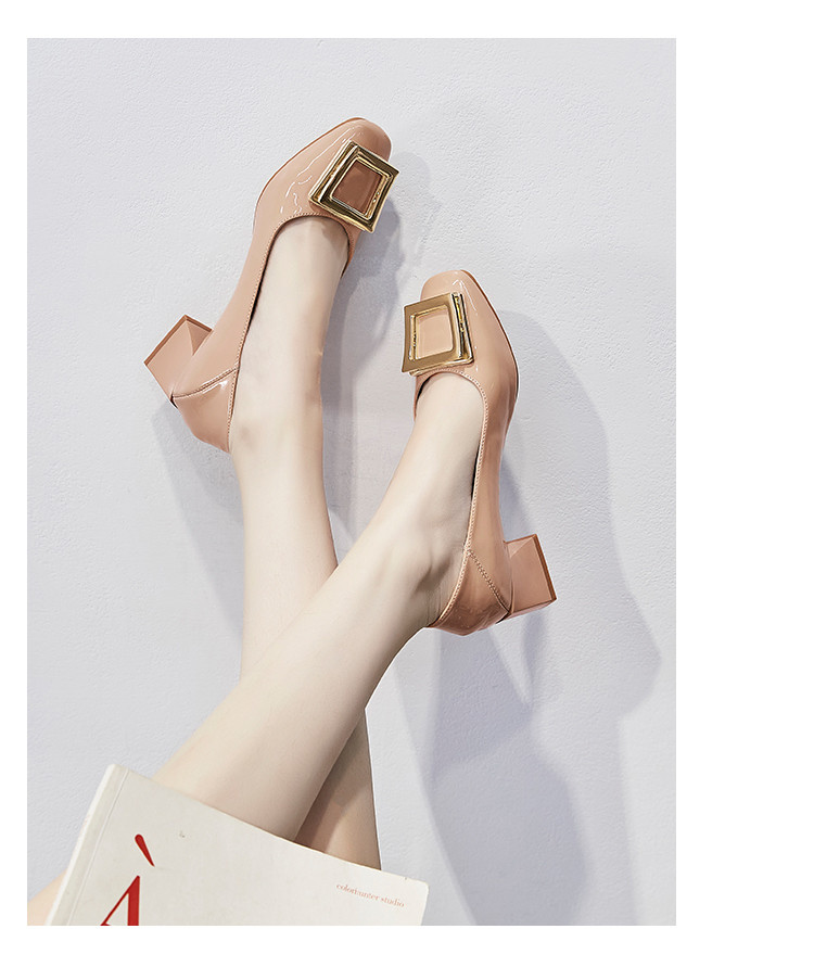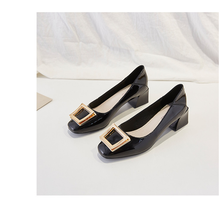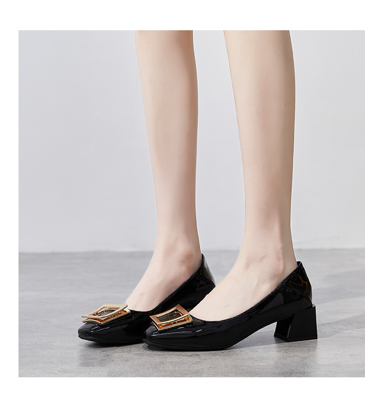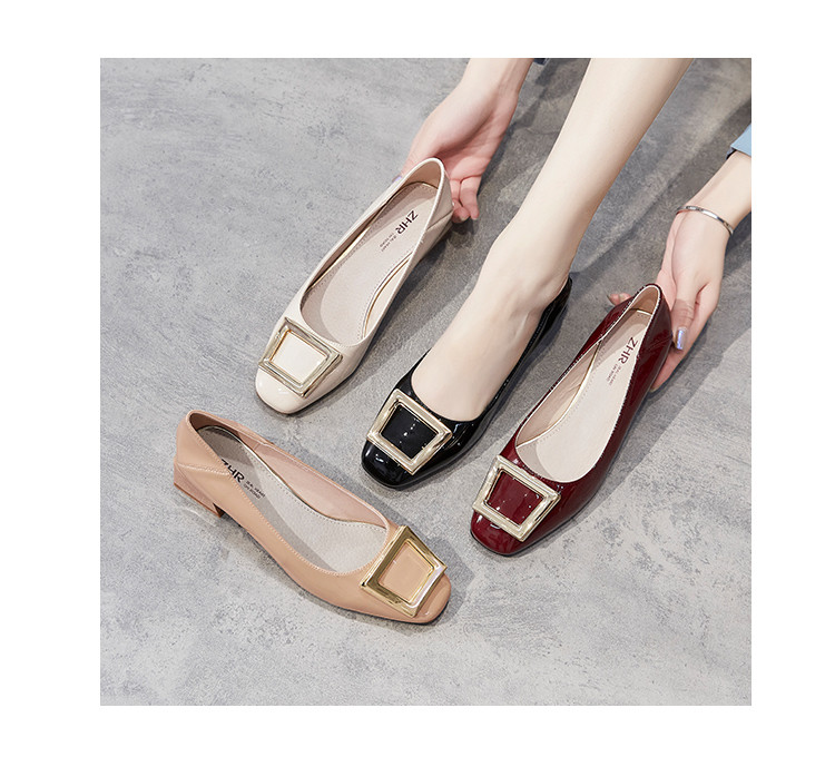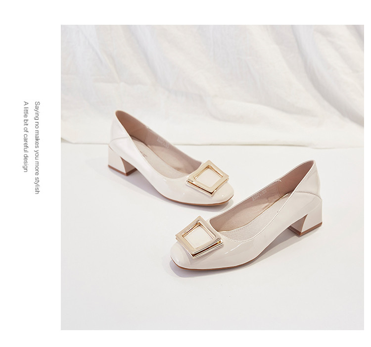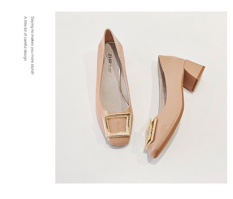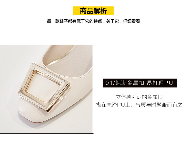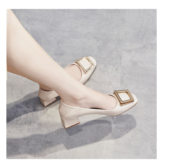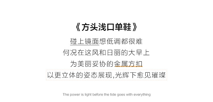 春夏简约日常舒适软面金属拼接方头低跟通勤女单鞋 593025