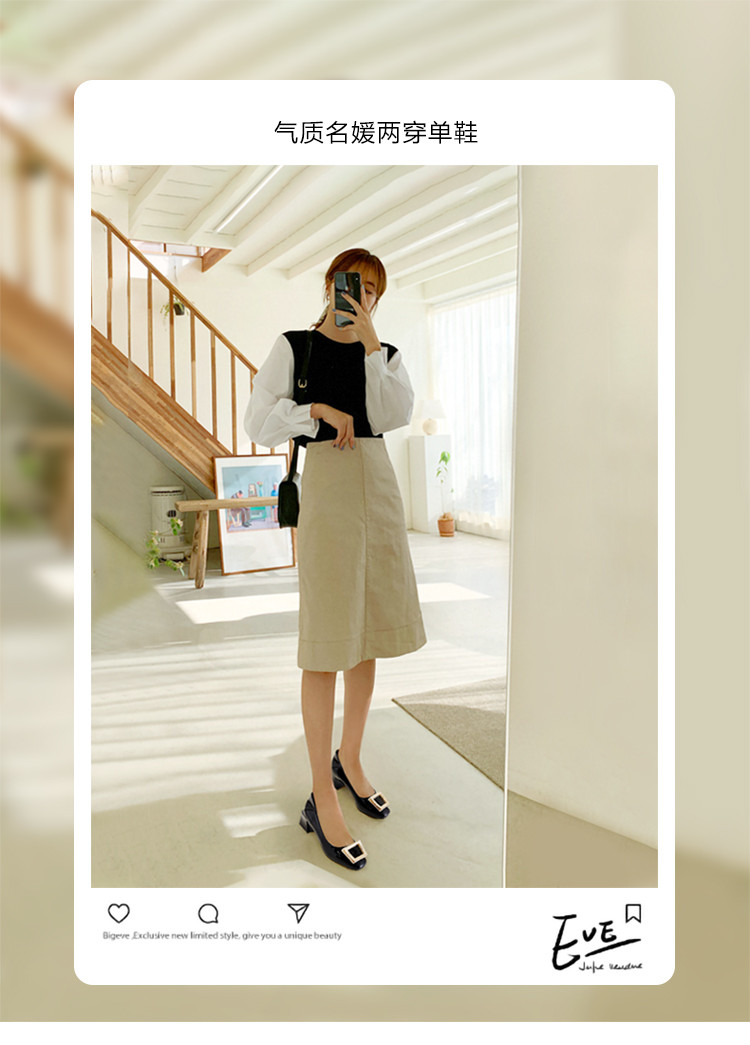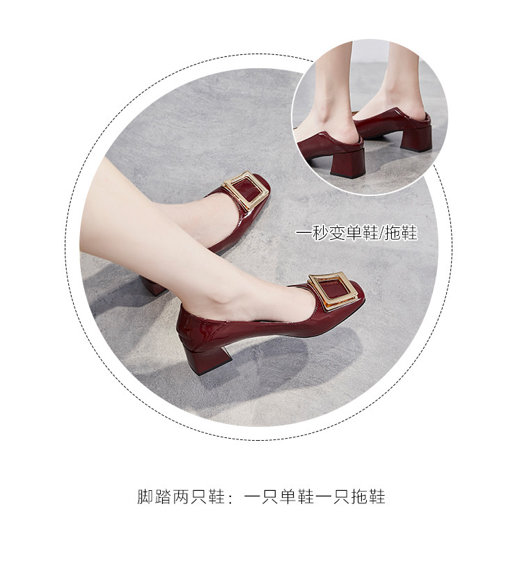 商品名称:【一鞋两穿】浅口粗跟职业通勤鞋一脚蹬小皮鞋子女夏季女单鞋女鞋 156096