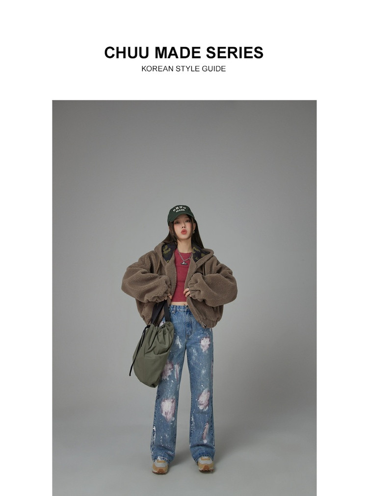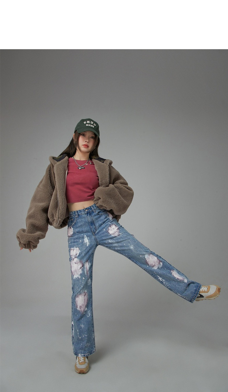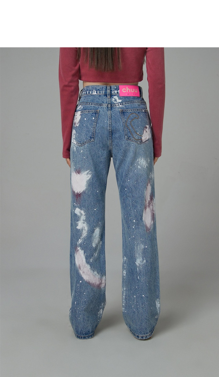 高腰撞色牛仔裤女春秋设计感小众别致直筒裤潮 497875
