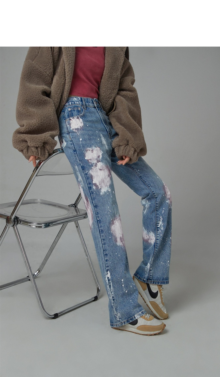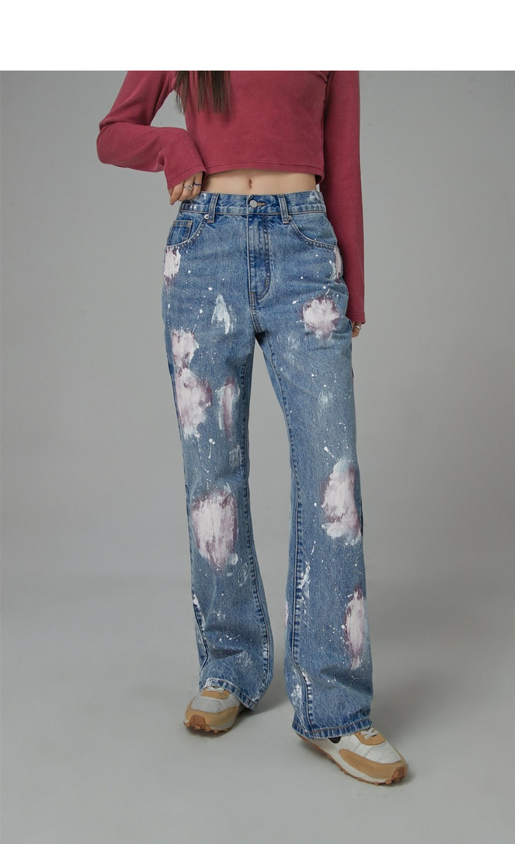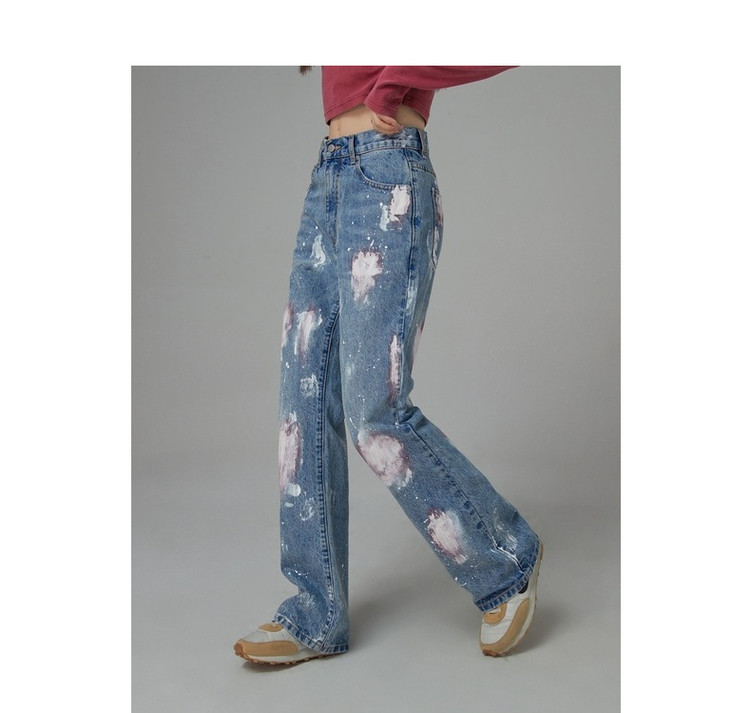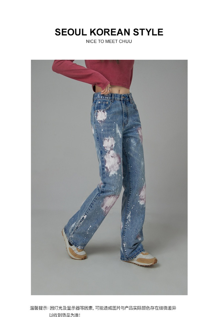 商品名称:高腰撞色牛仔裤女春秋设计感小众别致直筒裤潮 497875