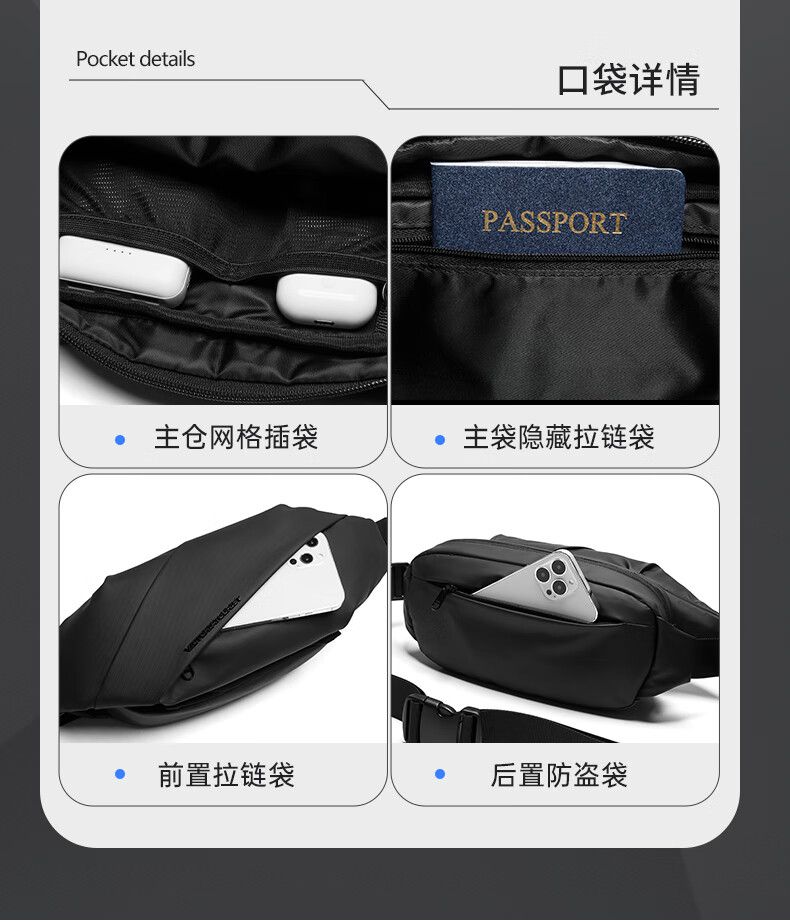 商品名称:维多利亚旅行者 潮流潮流机车运动腰包单肩包斜挎包邮差包5055