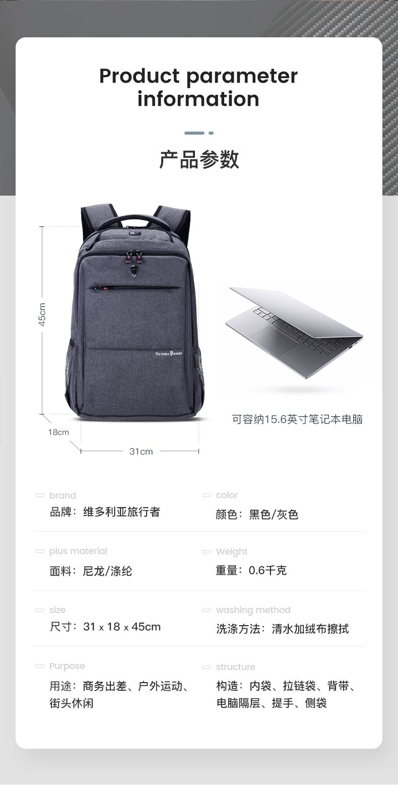 商品名称:维多利亚旅行者 大容量USB充电口双肩包笔记本电脑包背包906