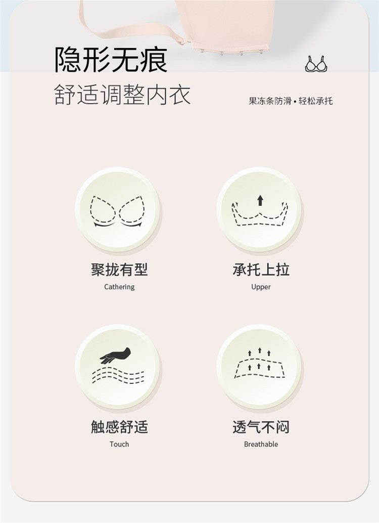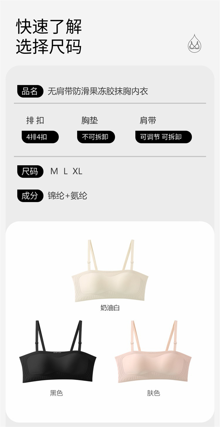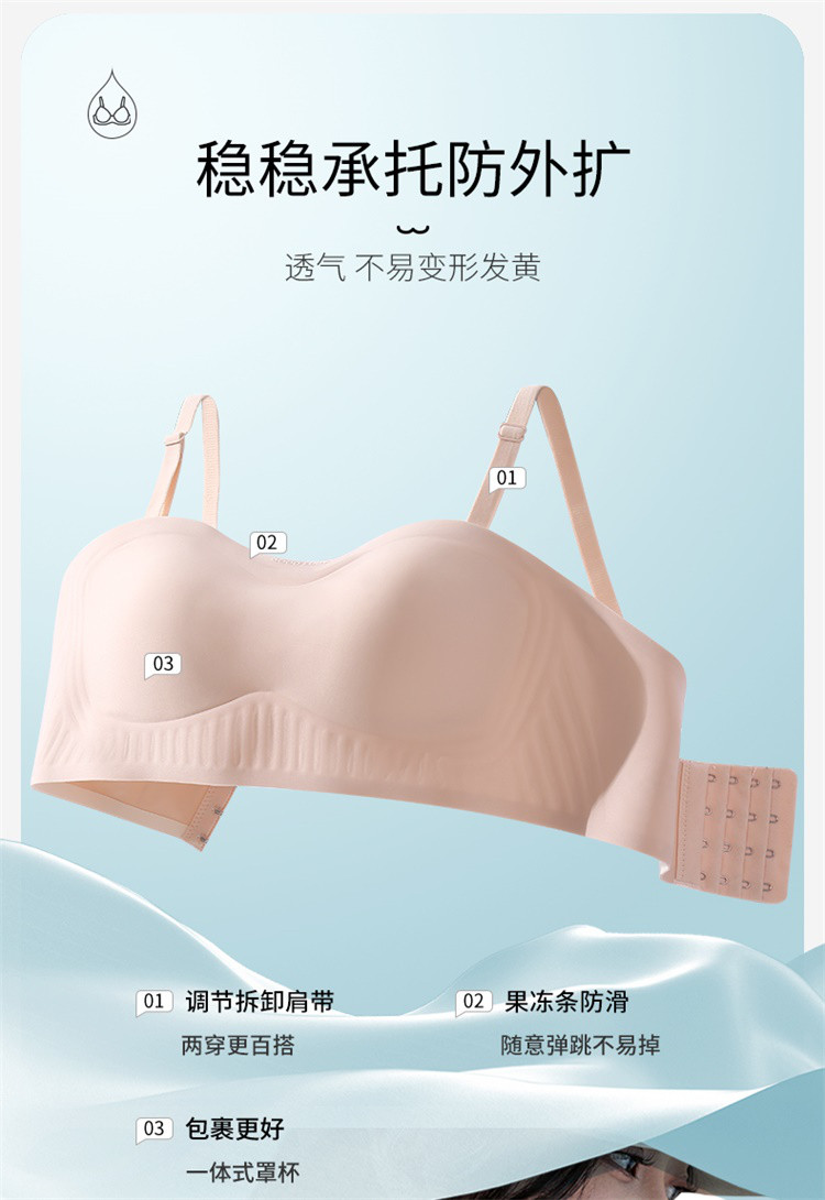 商品名称:【蜜桃胸】抹胸式聚拢防下垂无痕无肩带防滑内衣女无钢圈文胸罩 697246