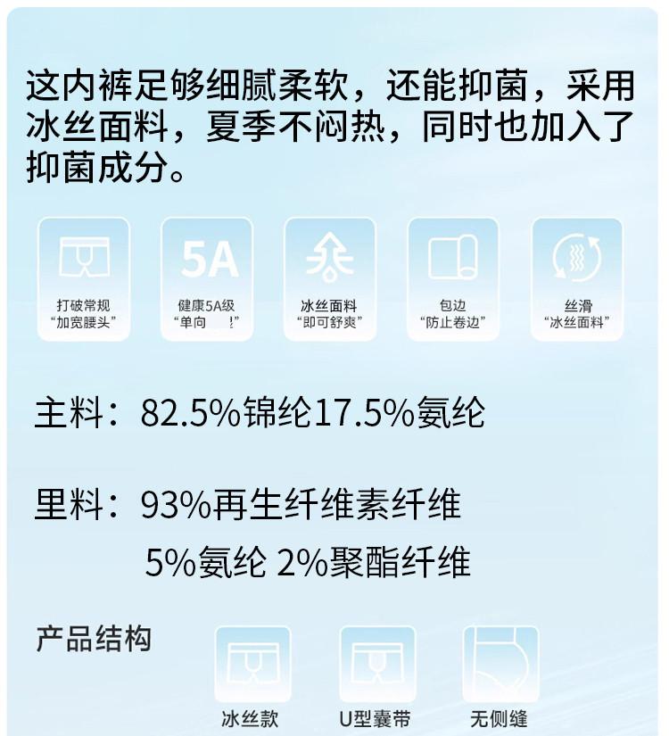 商品名称:【3D裁剪 5A抑菌裆】冰丝男士内裤夏季薄款透气男士平角短裤 224459