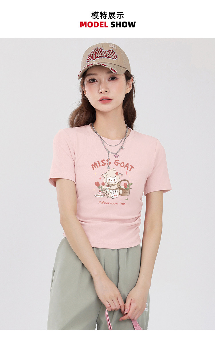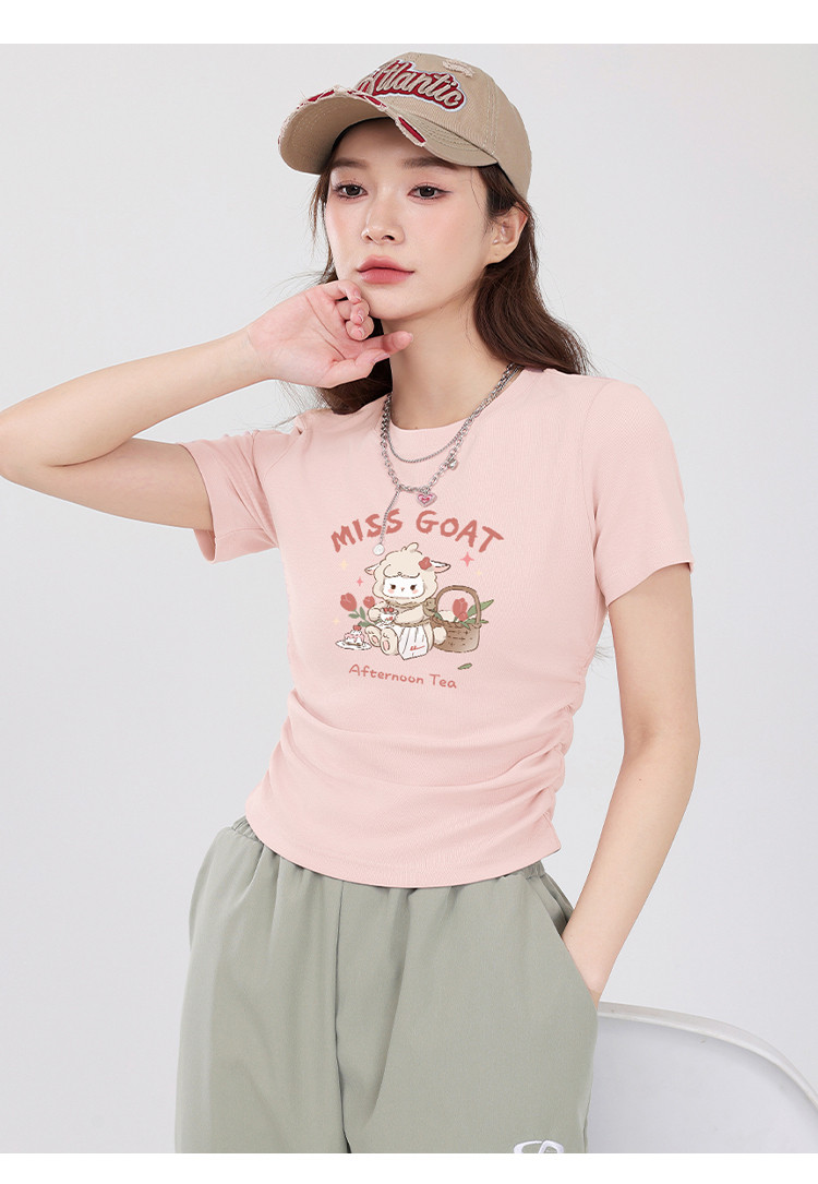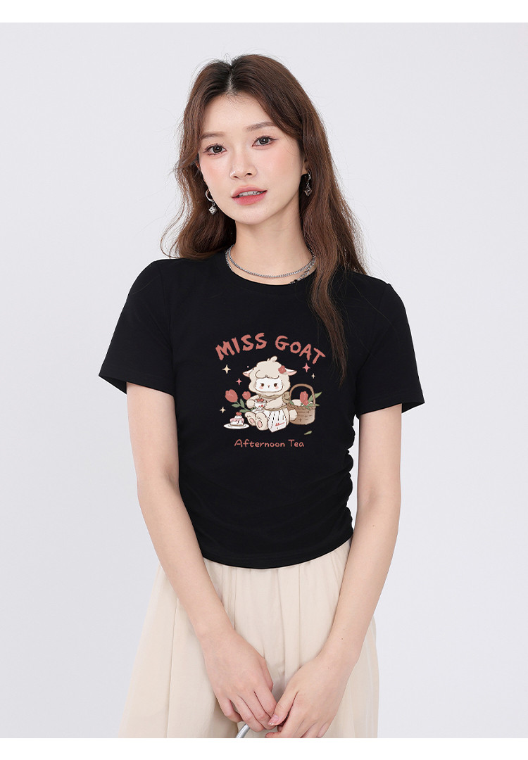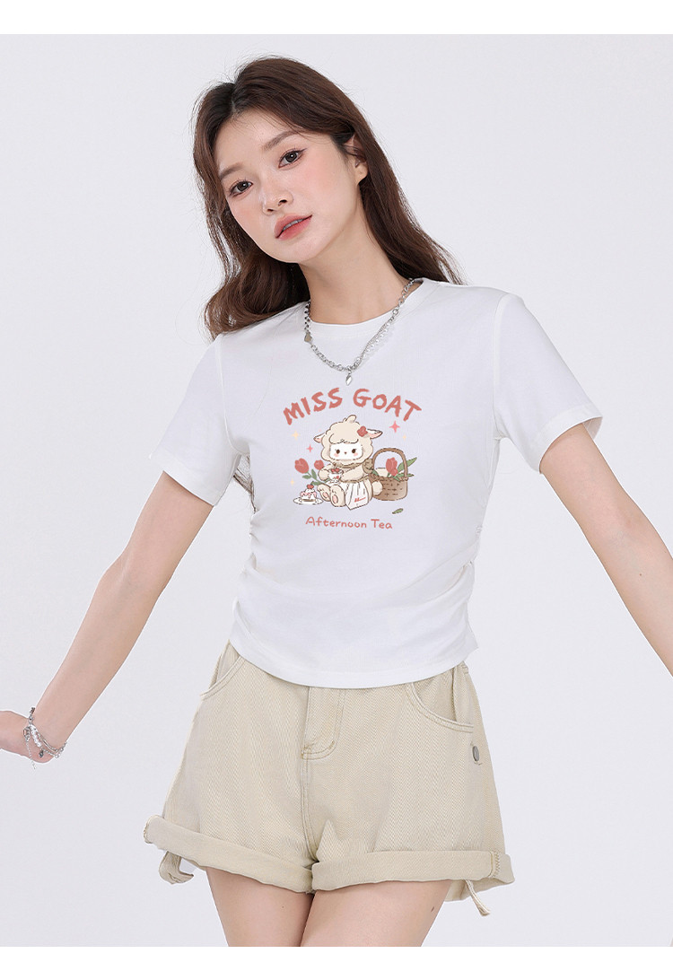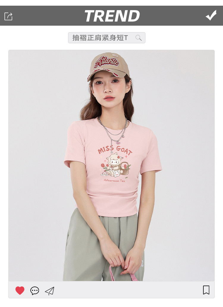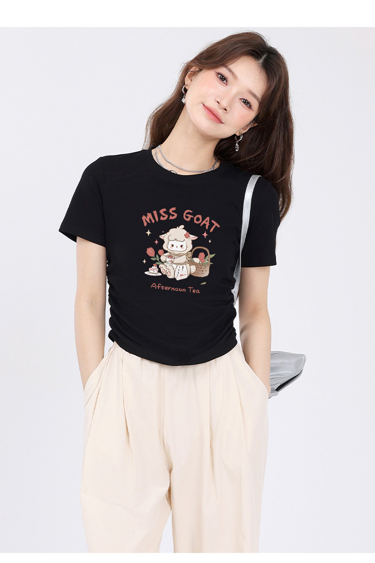 商品名称:【女装正肩】女式短款小个子T恤紧身显瘦夏季小众抽褶设计感短袖 409427