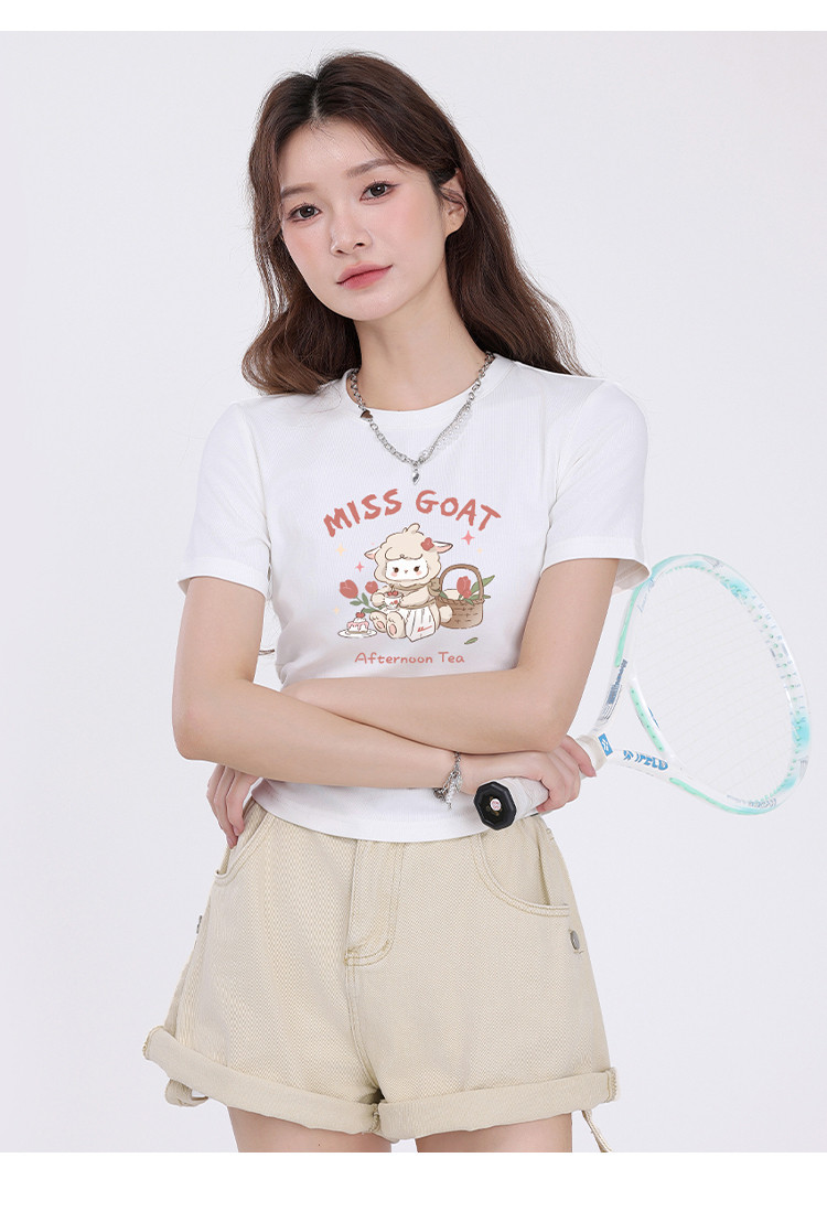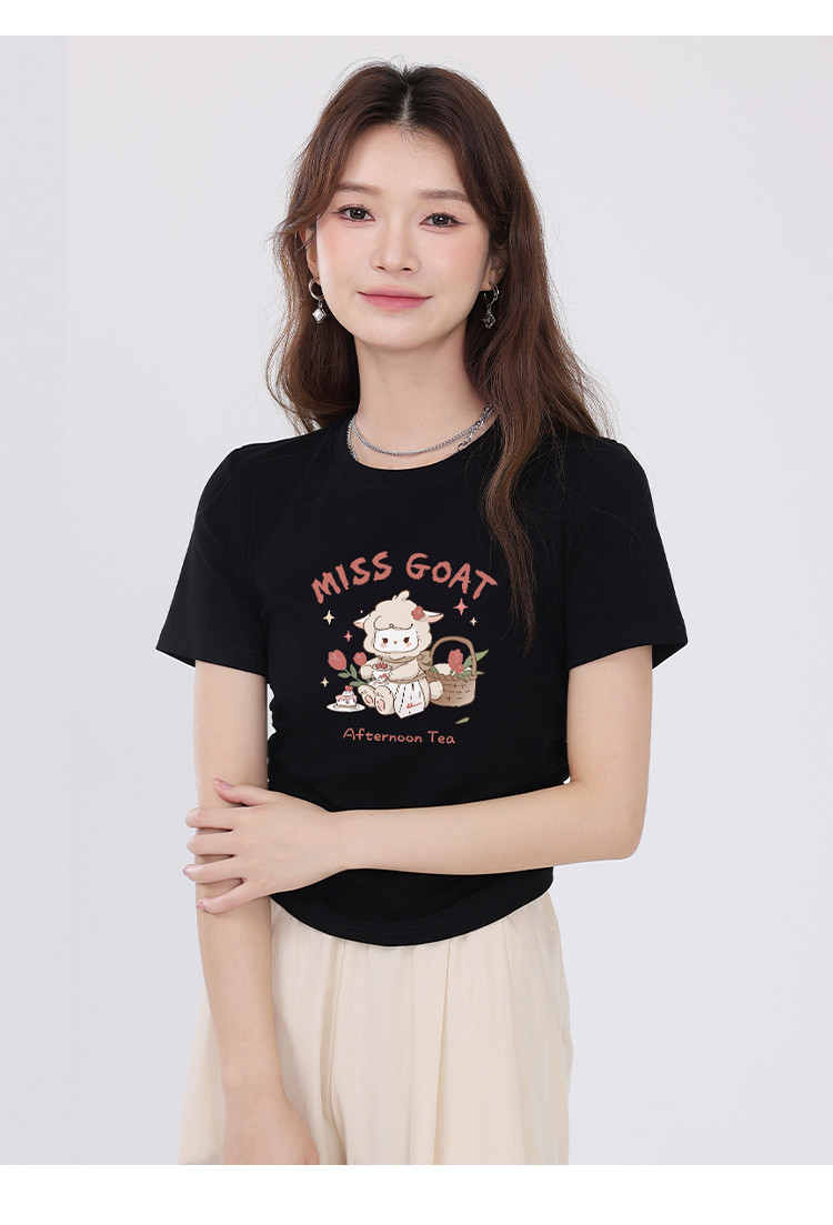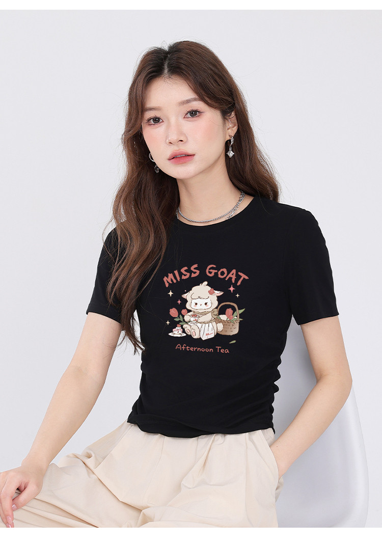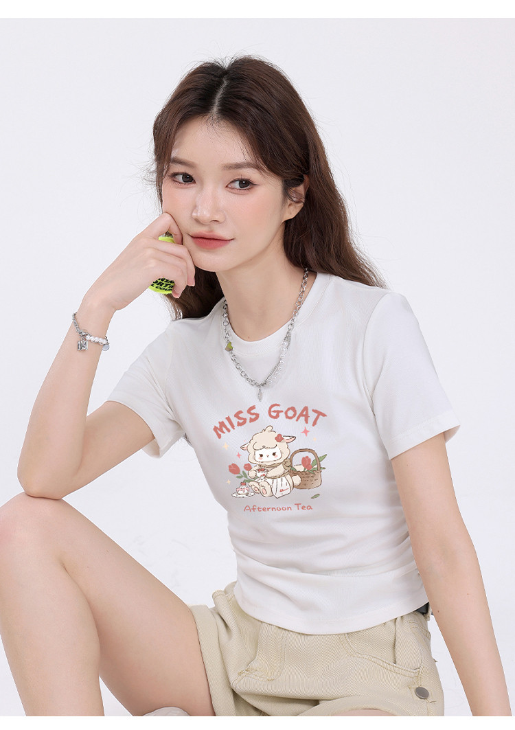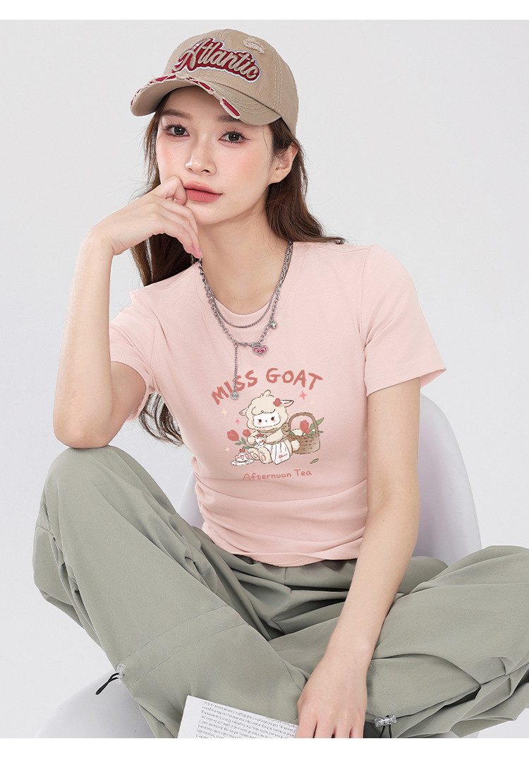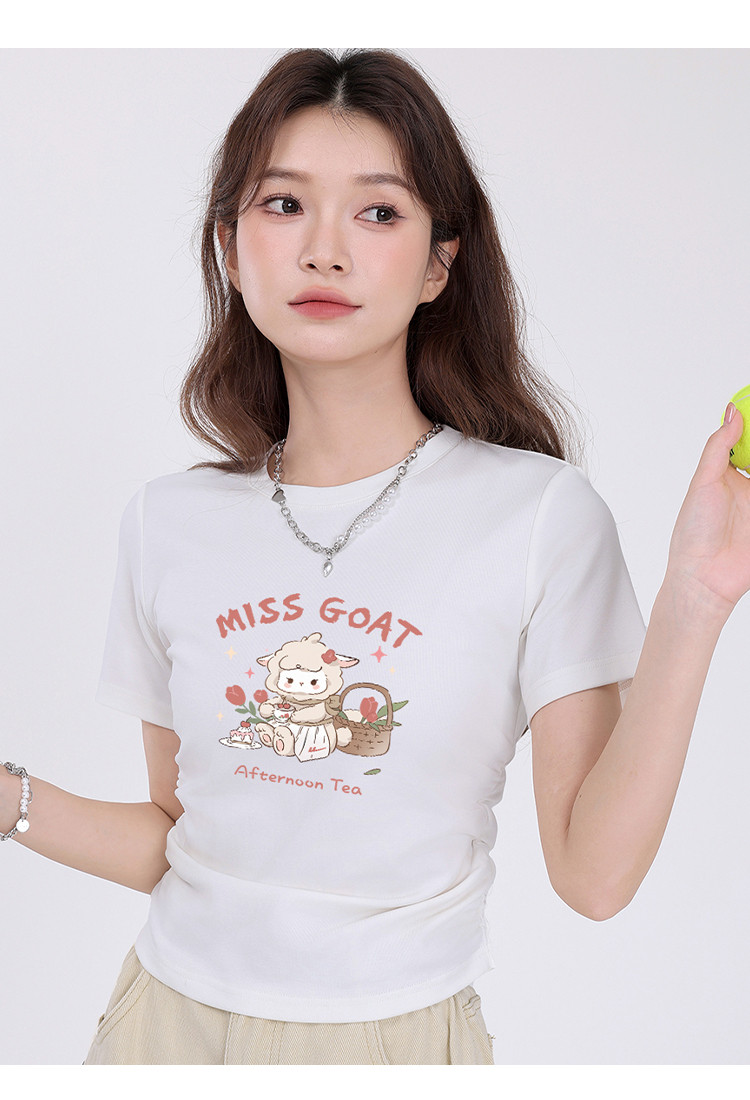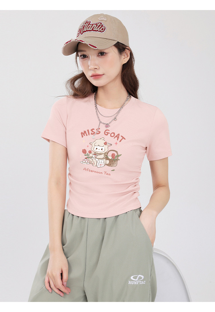 商品名称:【女装正肩】女式短款小个子T恤紧身显瘦夏季小众抽褶设计感短袖 409427