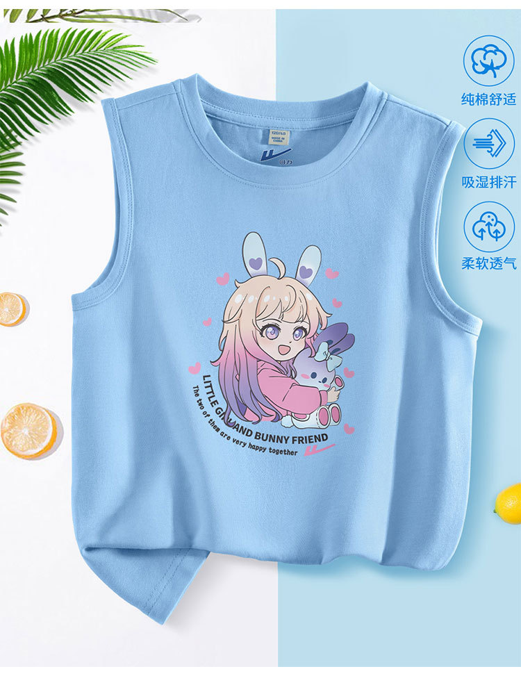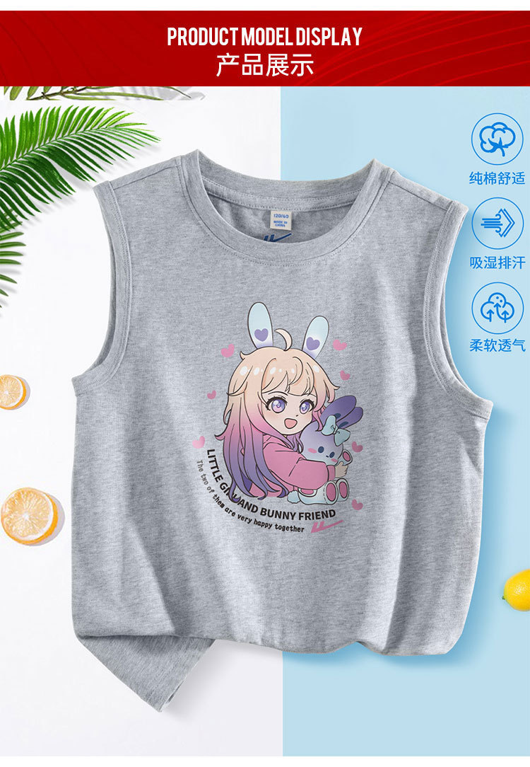 商品名称:女童夏季背心内穿薄款透气儿童无袖T恤衫纯棉女孩夏装运动上衣服 332179