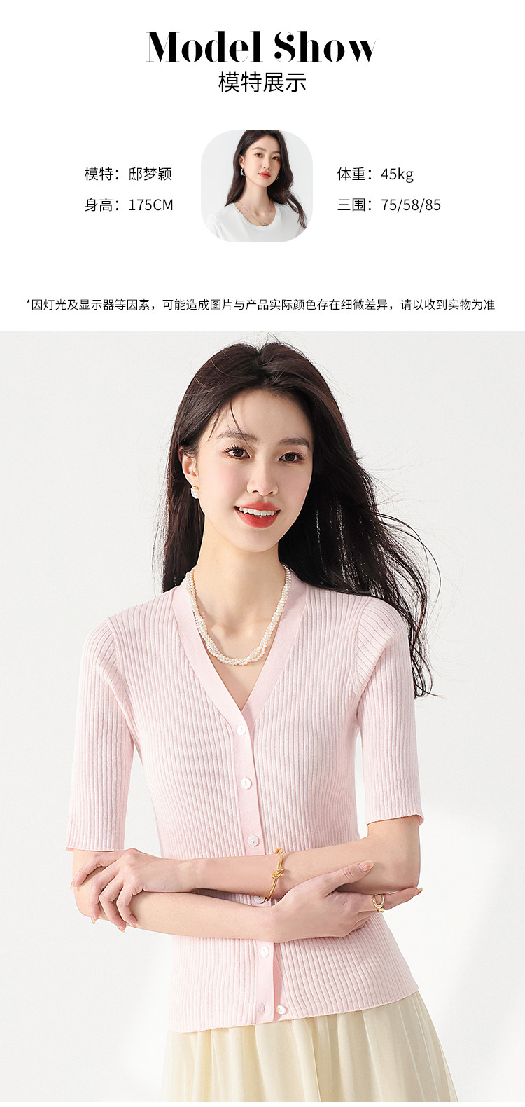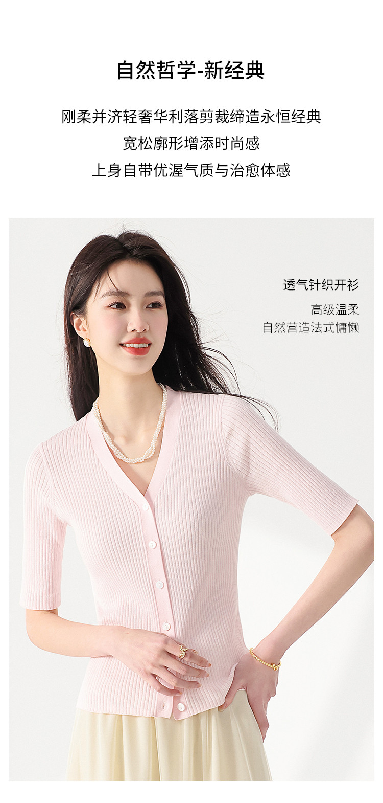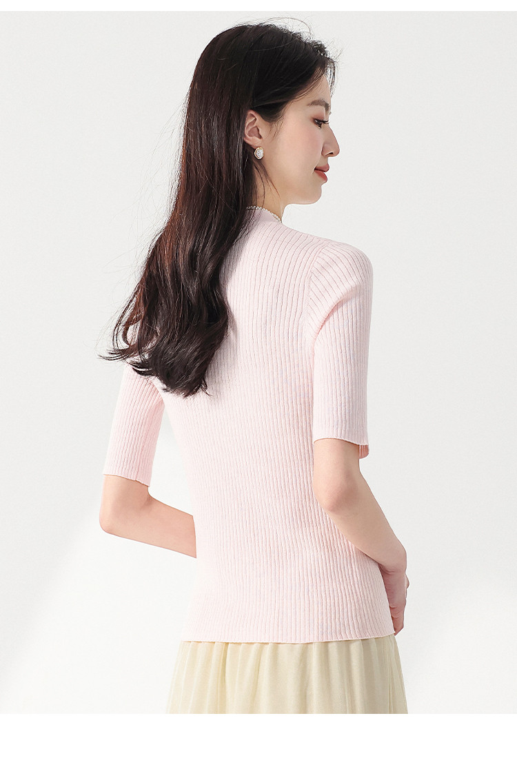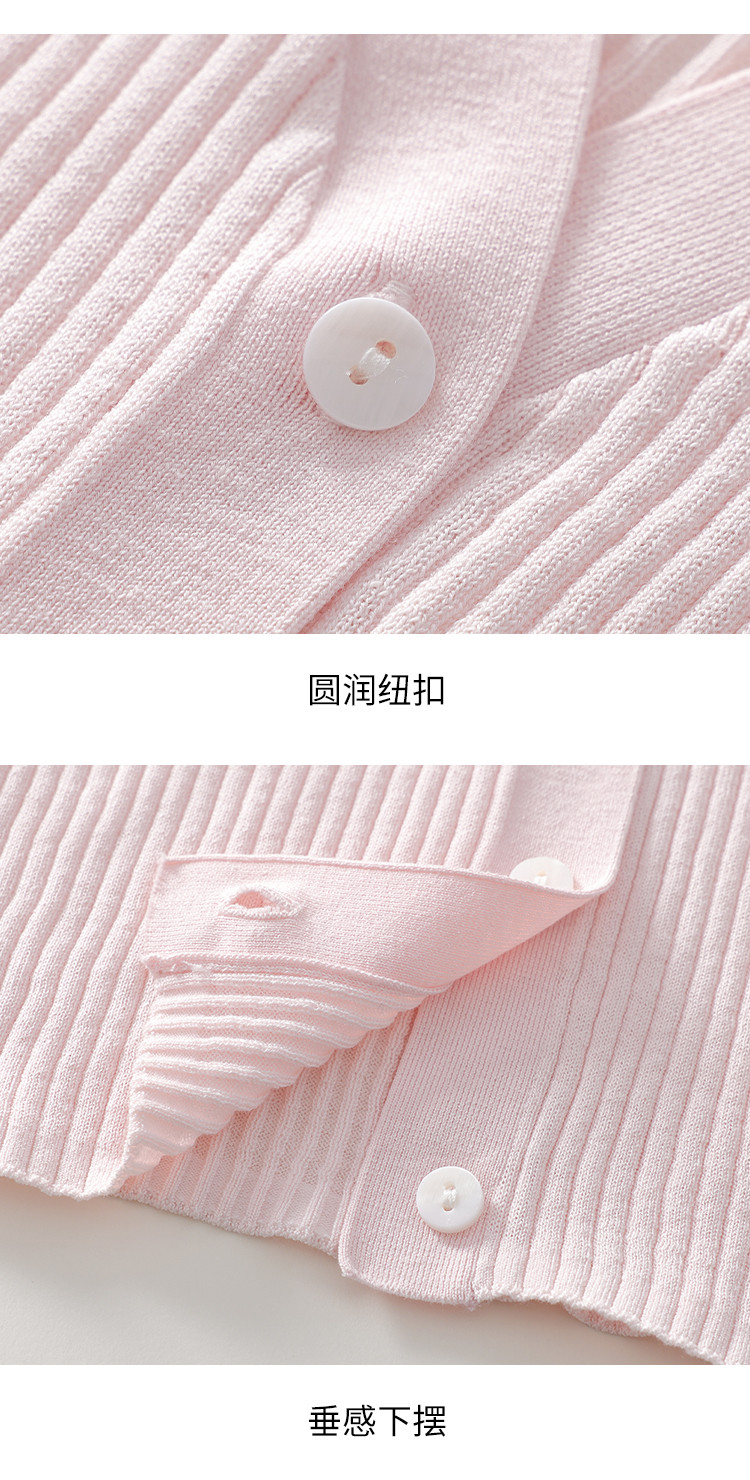 商品名称:夏款透气纯色坑条V领短袖桑蚕丝针织杉女开衫修身T恤外套空调衫 206739