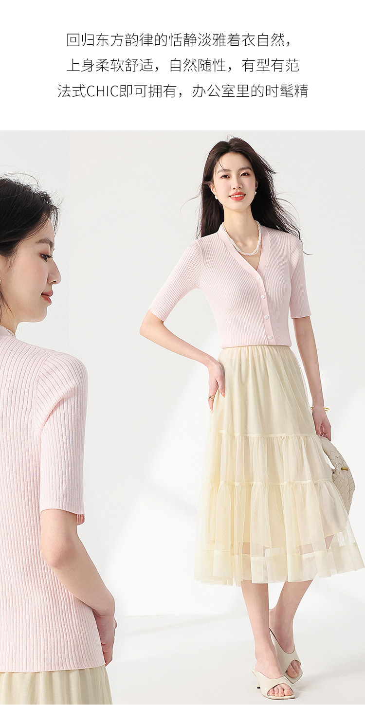 【设计感】夏季修身短款开衫七分袖针织衫女 348442