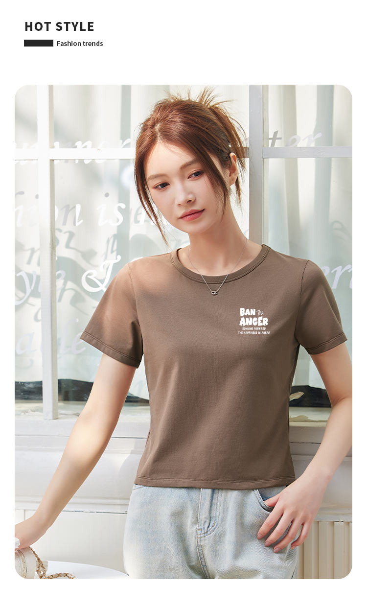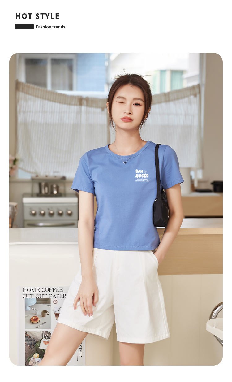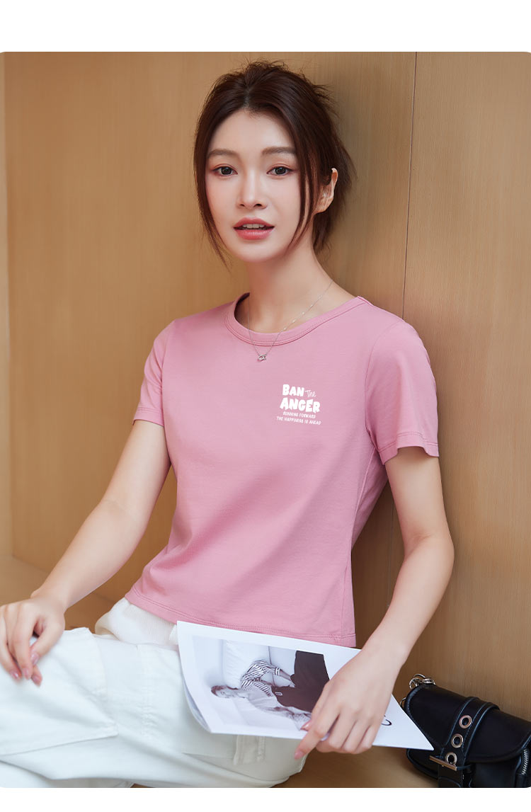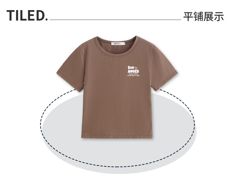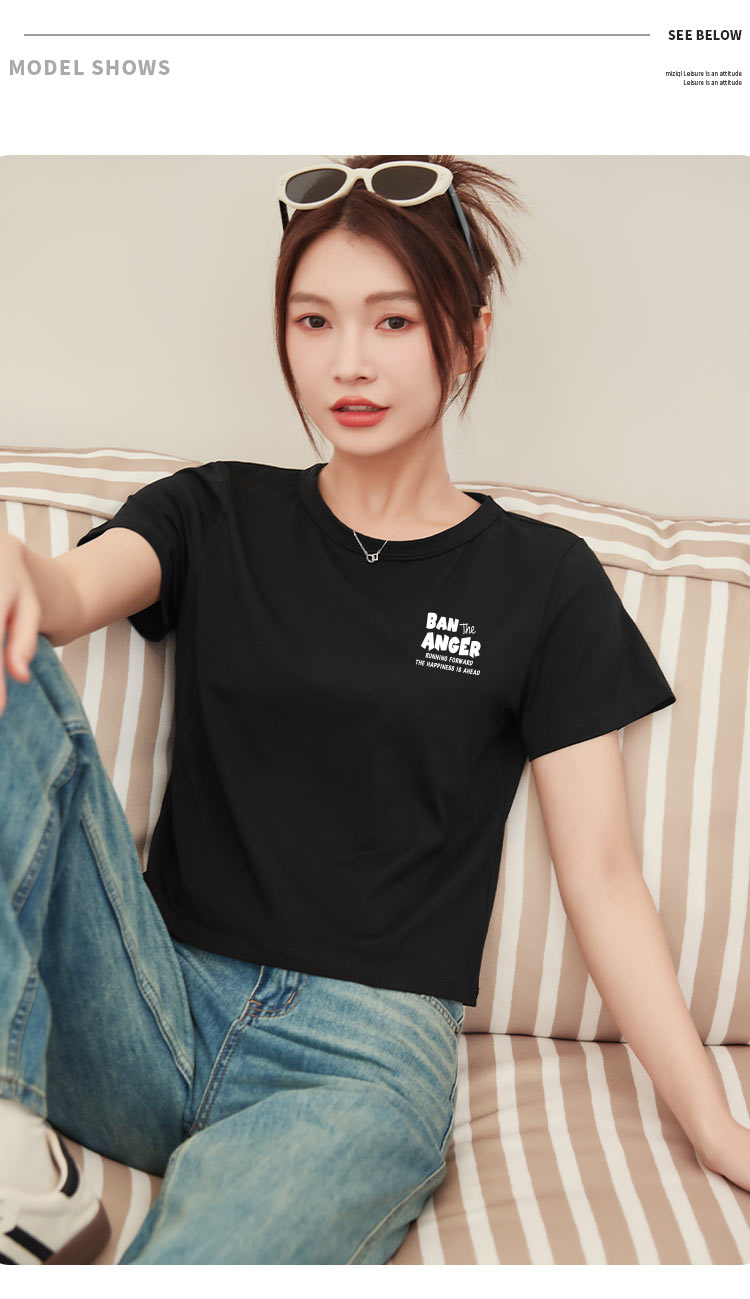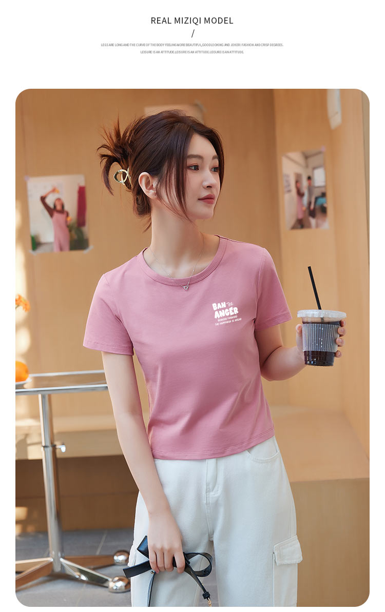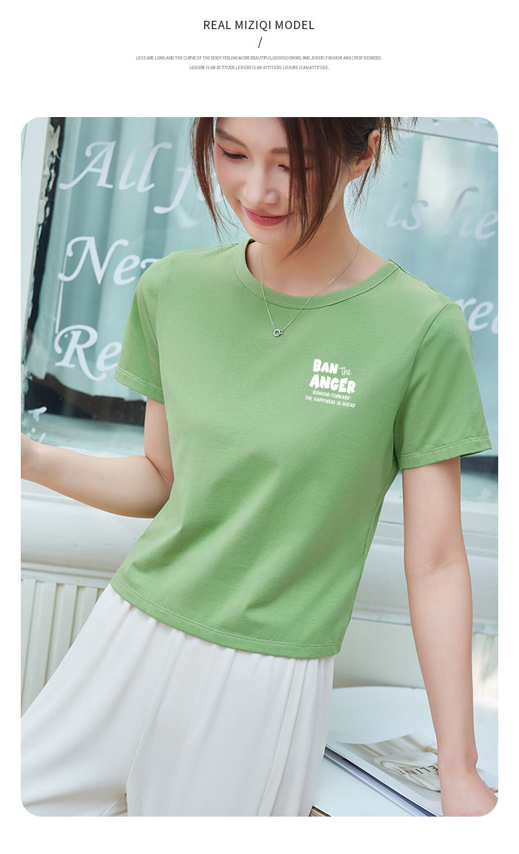 商品名称:米子旗夏季圆领字母印花T恤正肩设计短款修身简约短袖上衣 696346