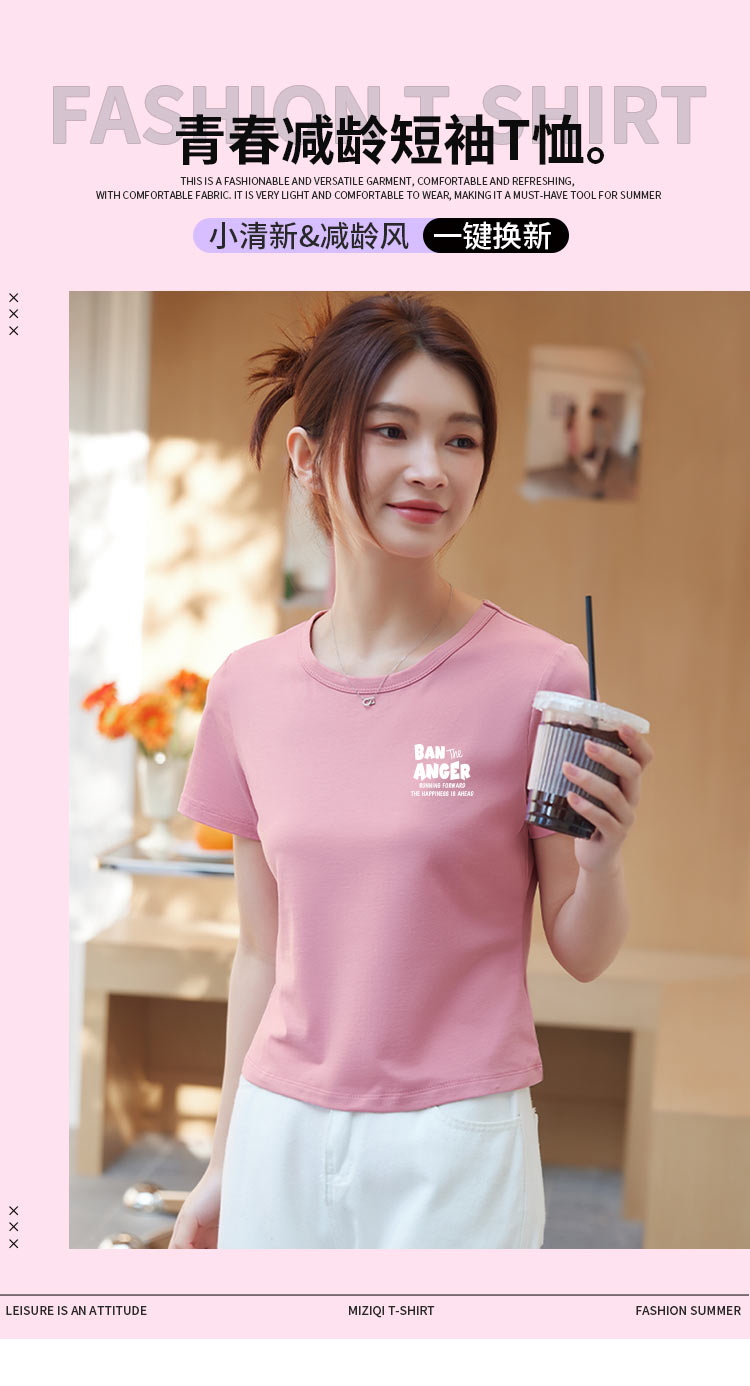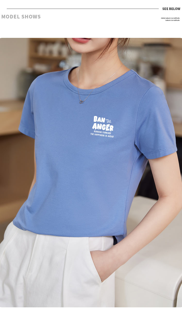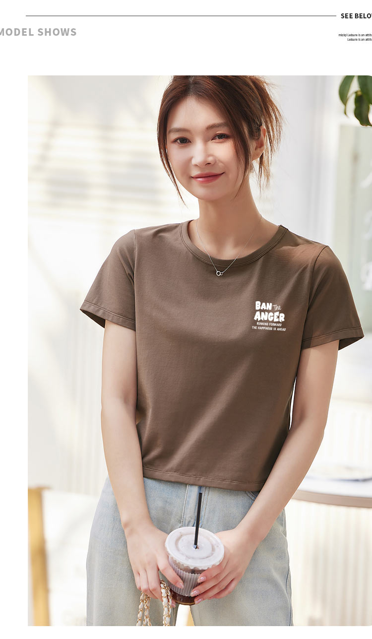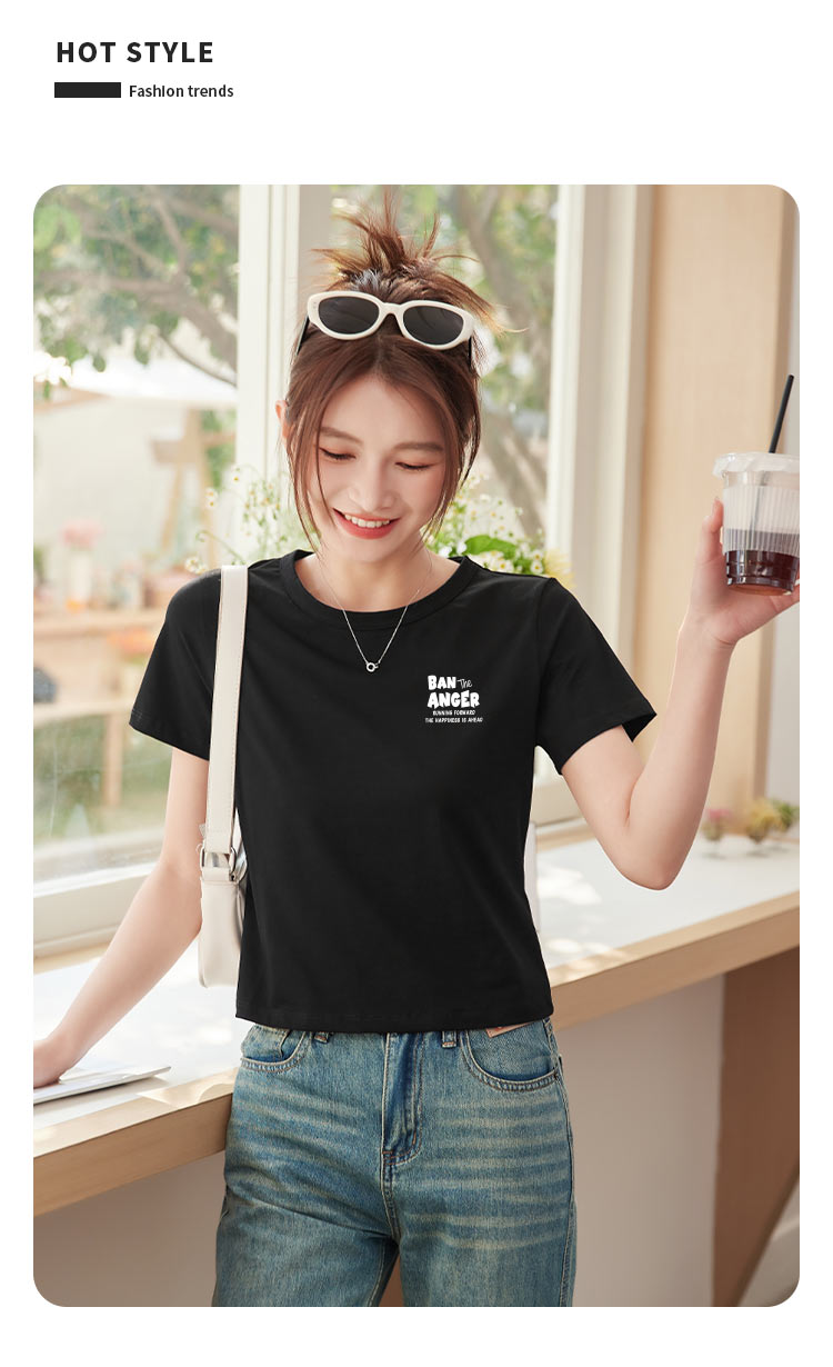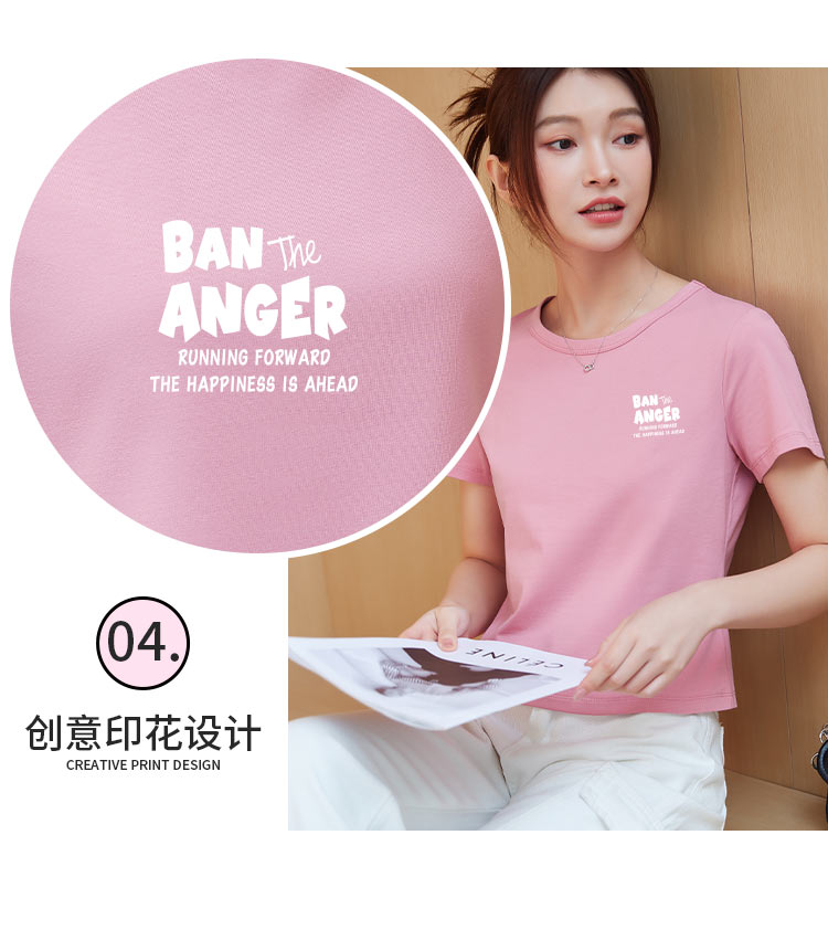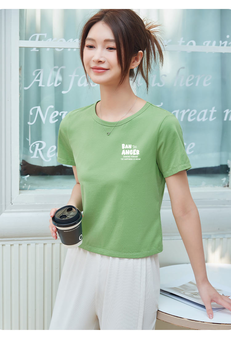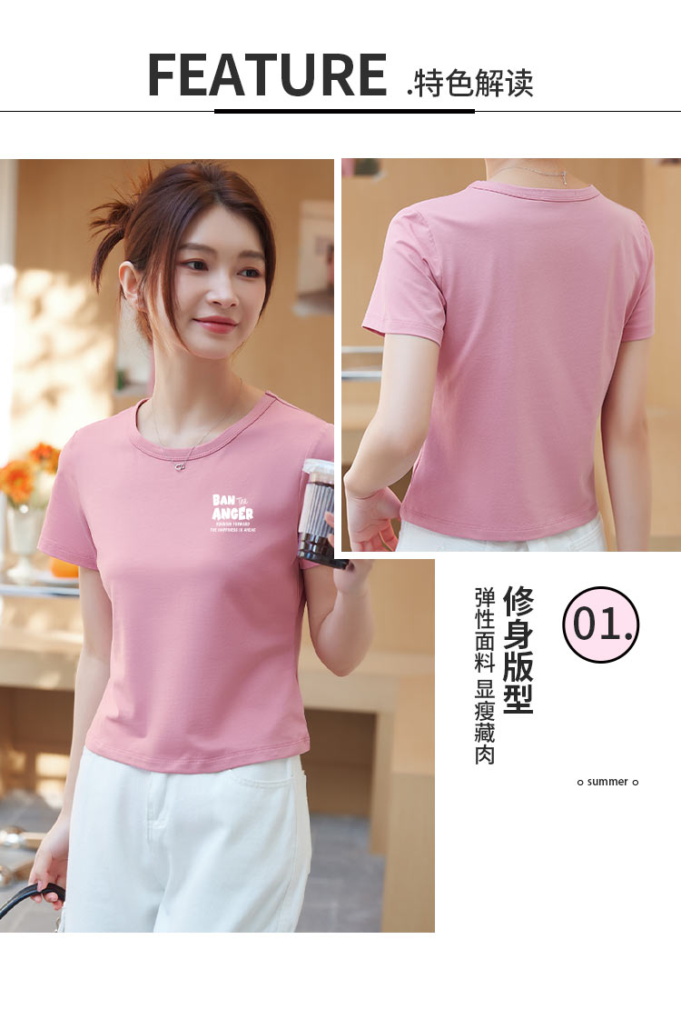 商品名称:米子旗夏季圆领字母印花T恤正肩设计短款修身简约短袖上衣 696346