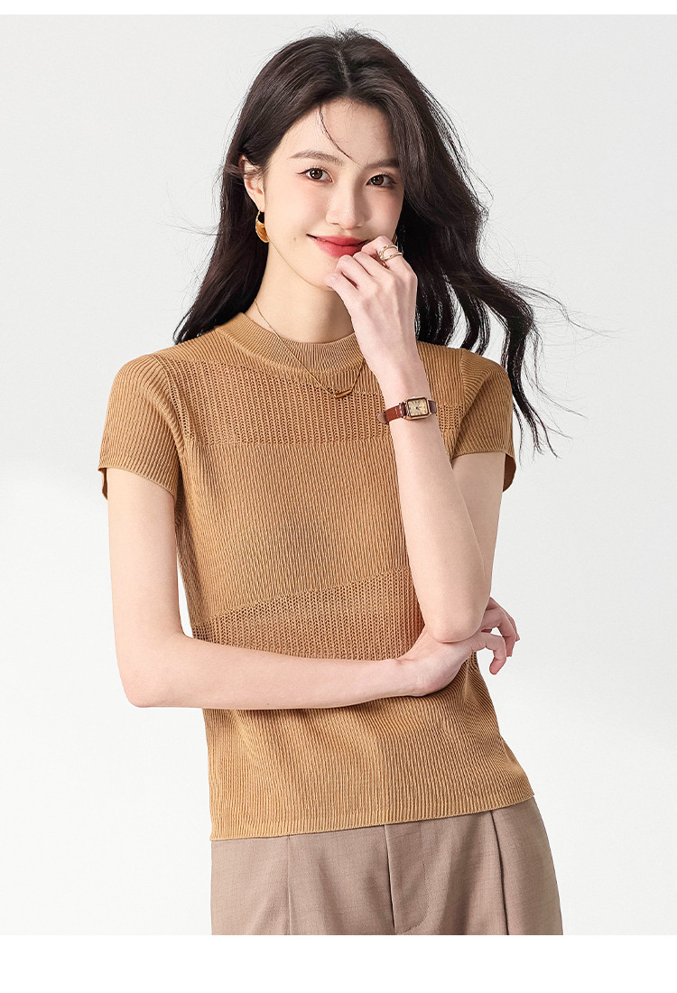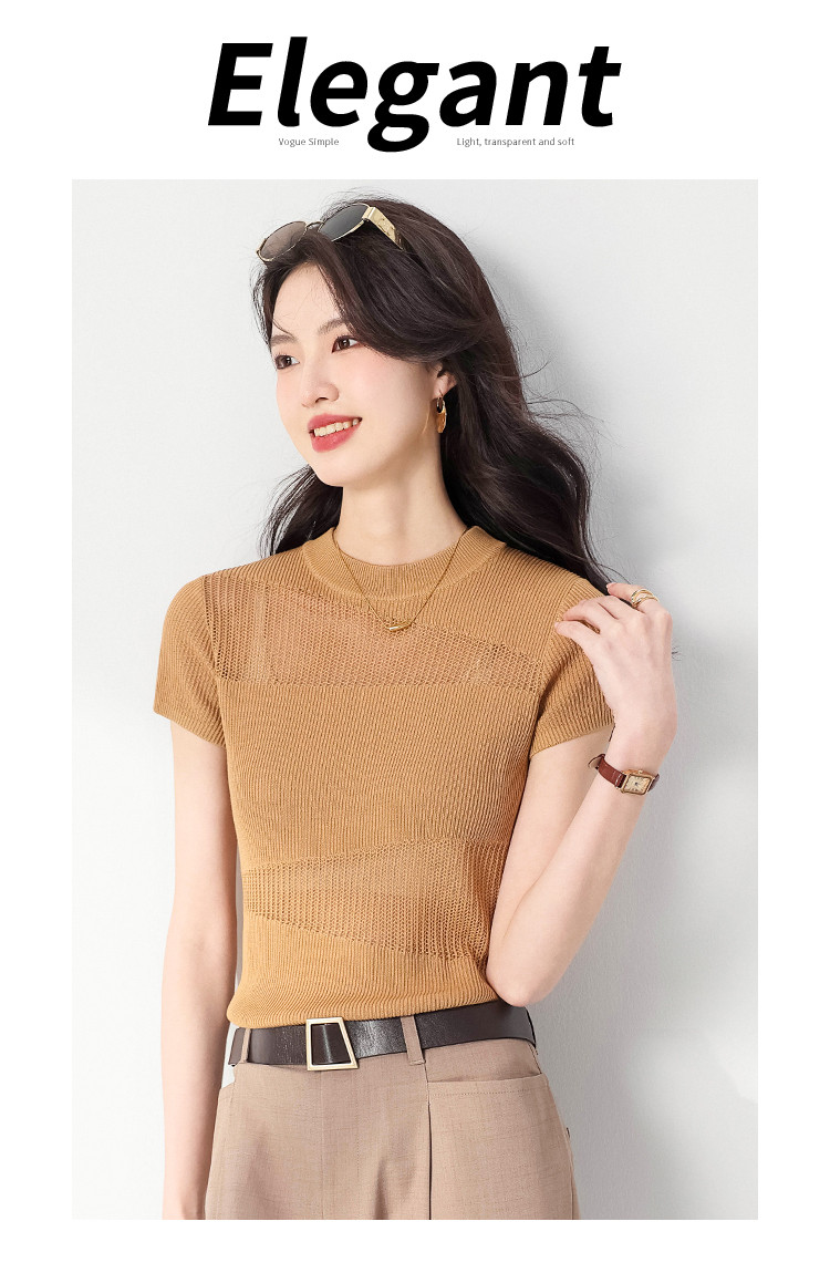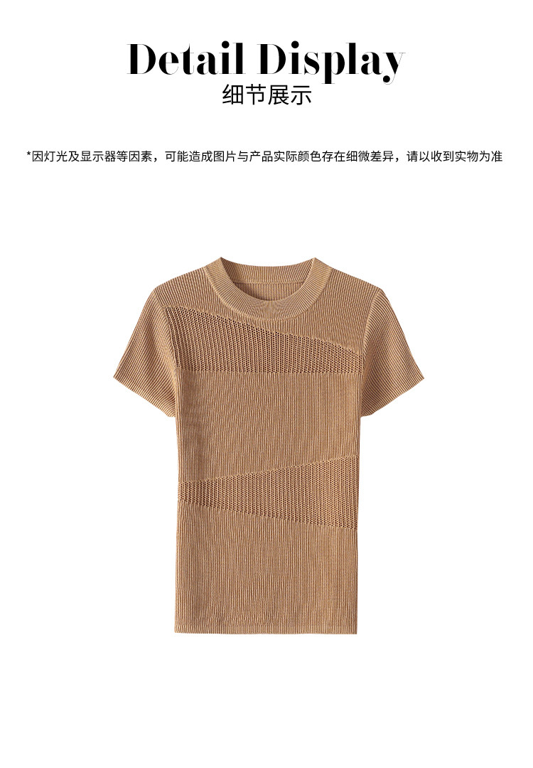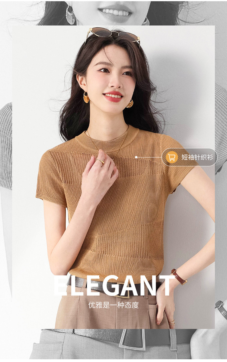商品名称:【含桑蚕丝】夏款轻薄透气圆领提花纯色针织打底衫短袖T恤 579347