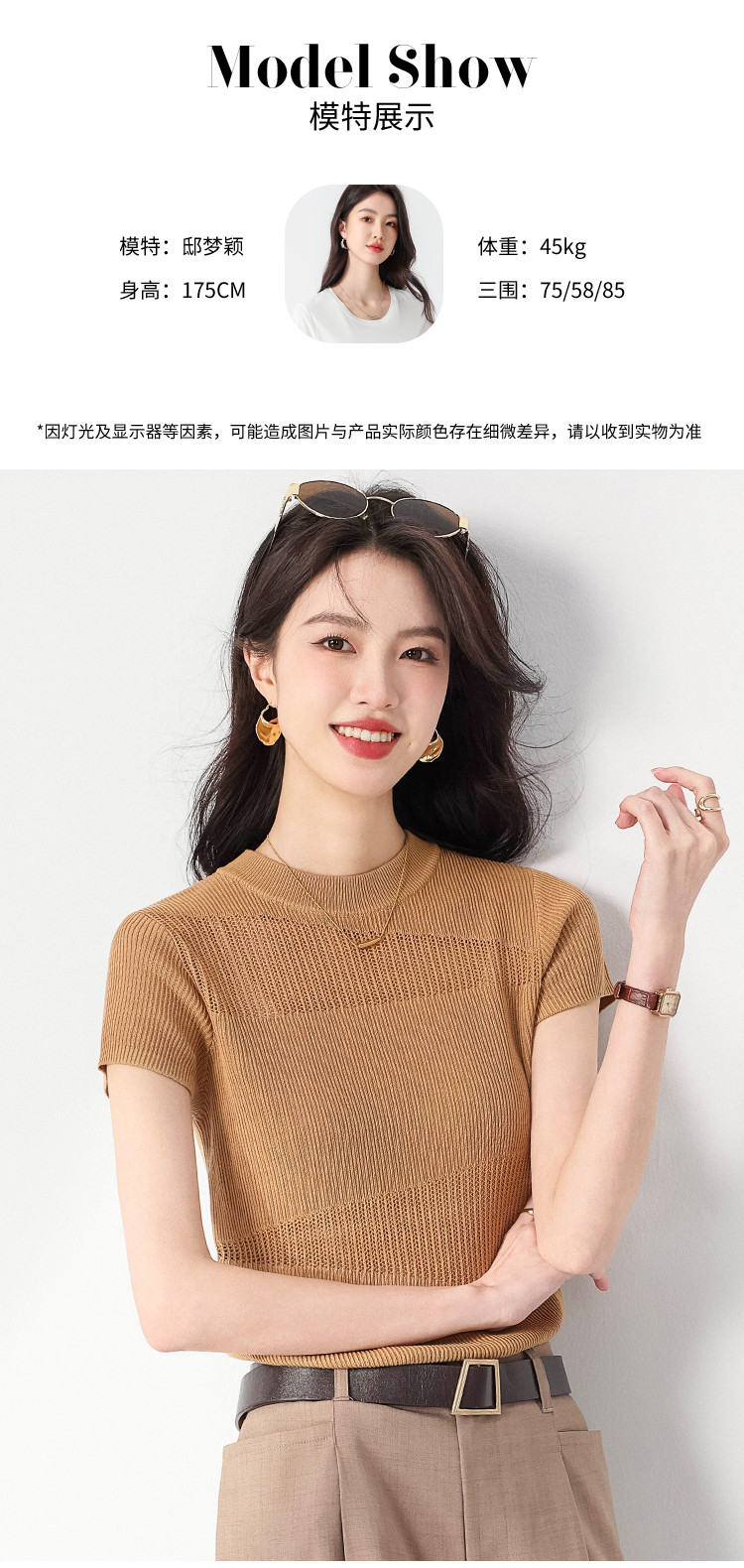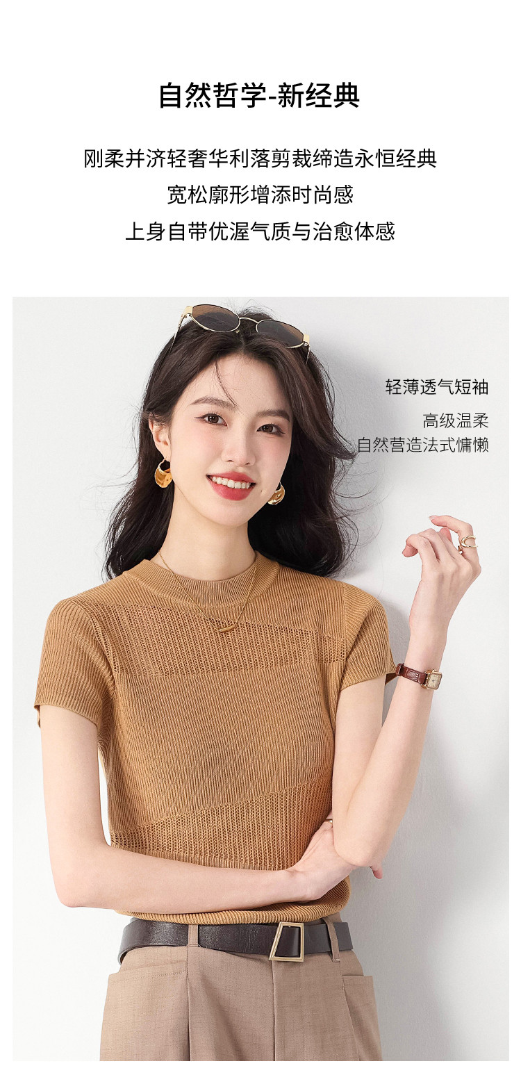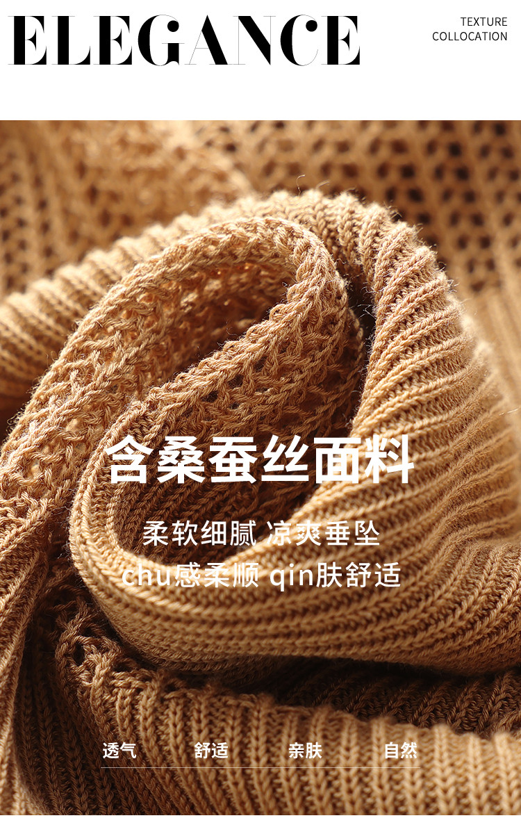商品名称:【含桑蚕丝】夏款轻薄透气圆领提花纯色针织打底衫短袖T恤 579347