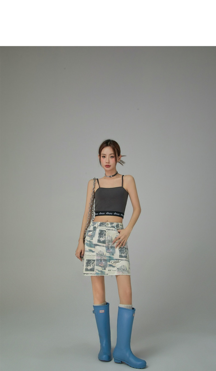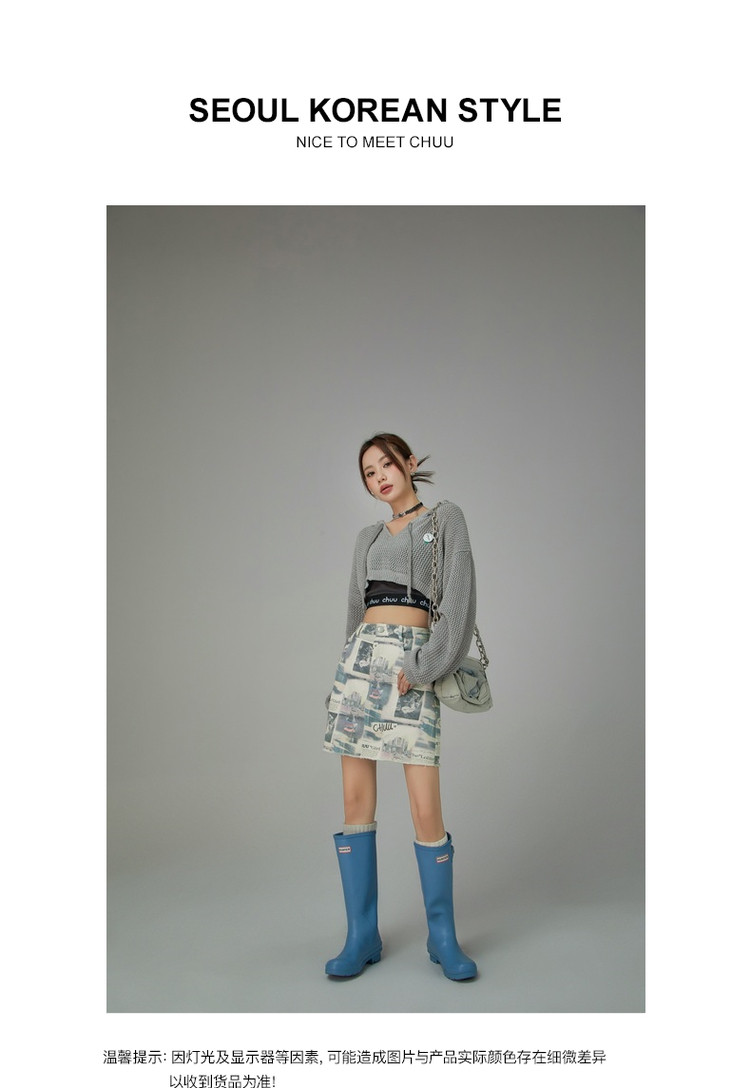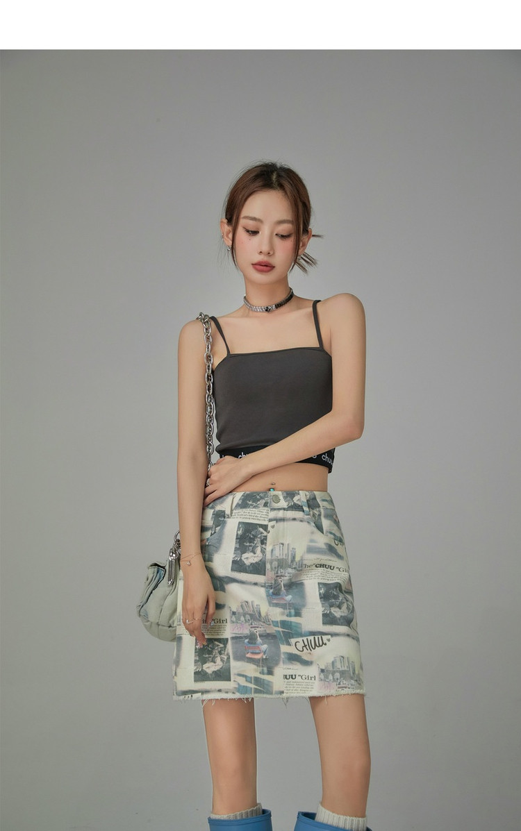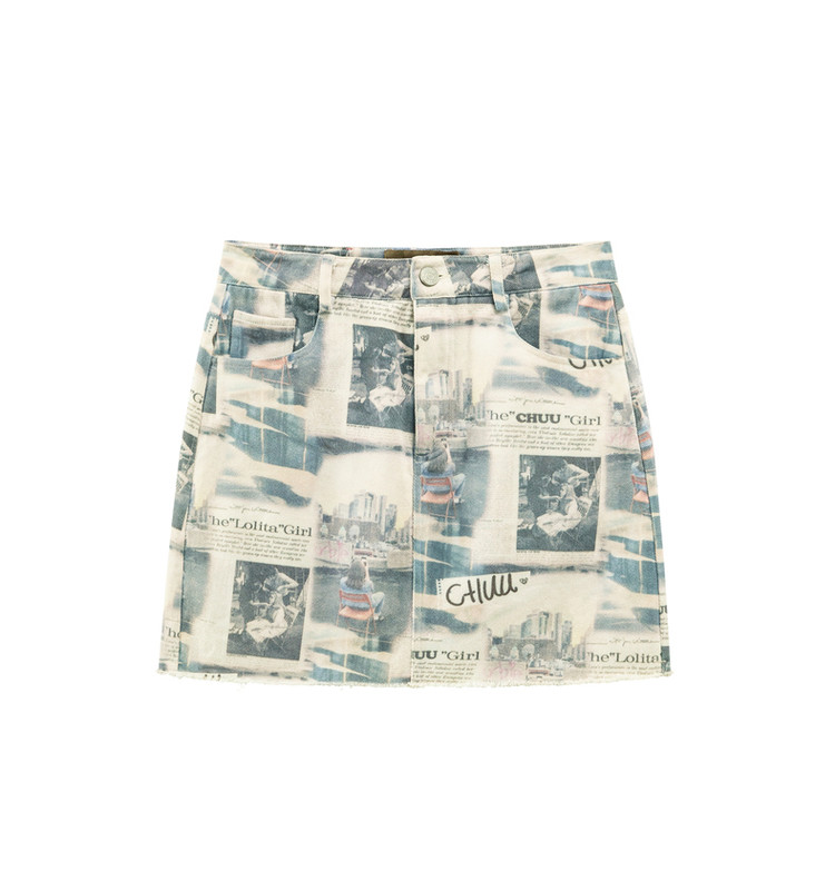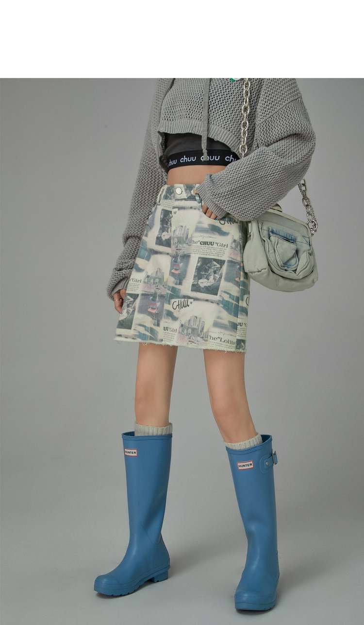 商品名称:CHUU字母满印半身裙女春秋高腰毛边a字短裙子 809491