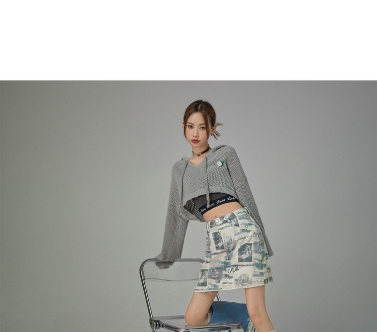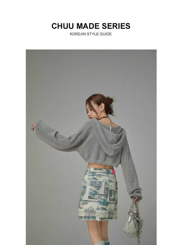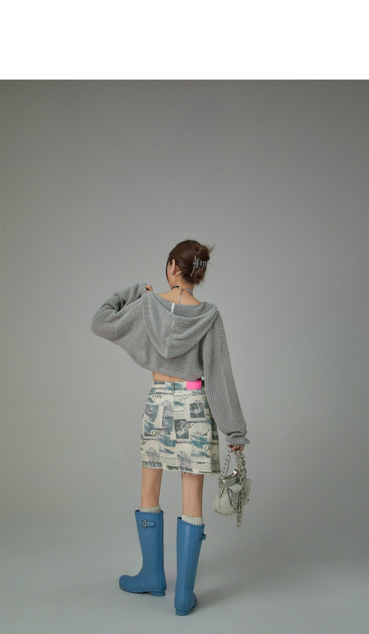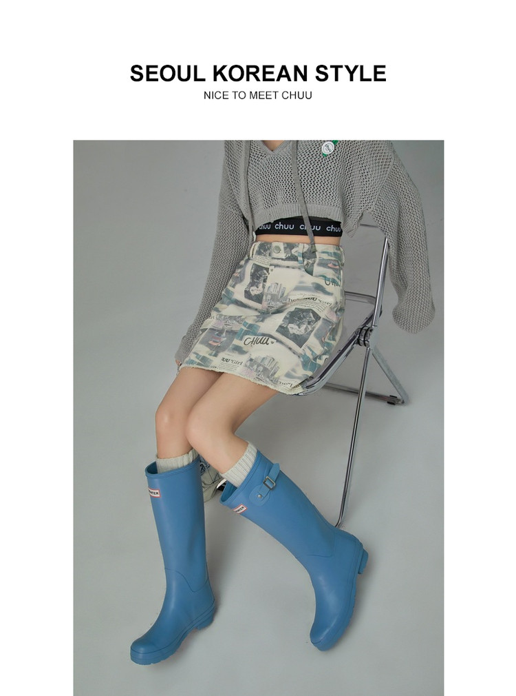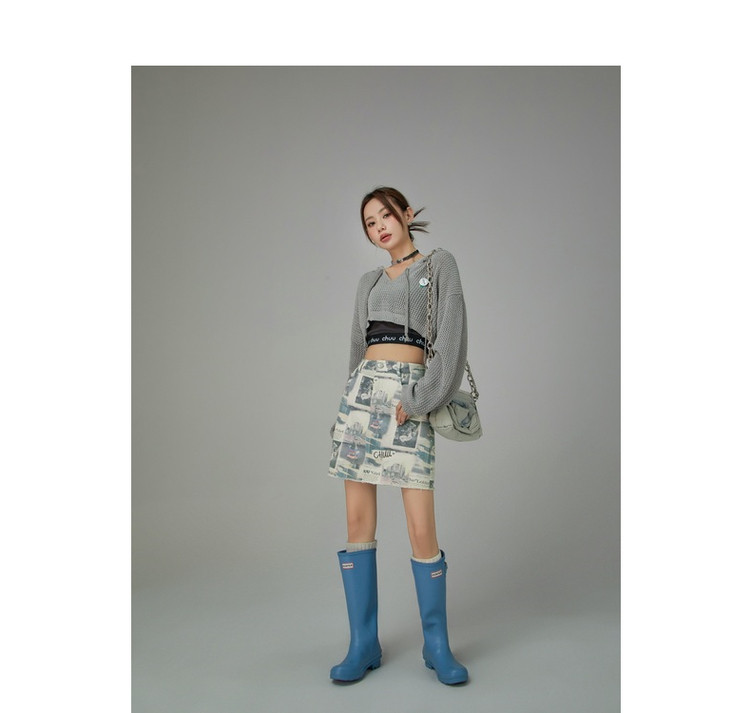 商品名称:CHUU字母满印半身裙女春秋高腰毛边a字短裙子 809491