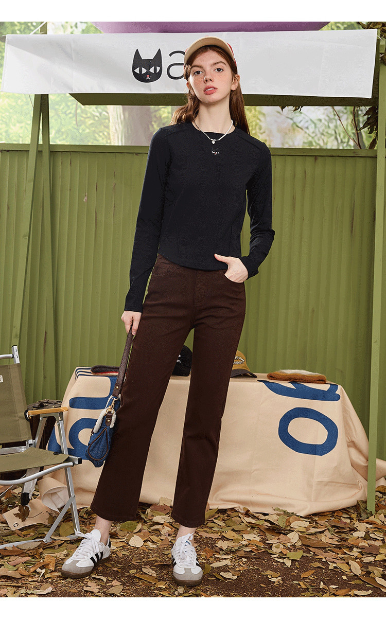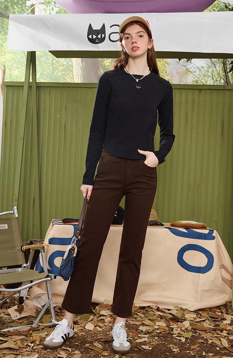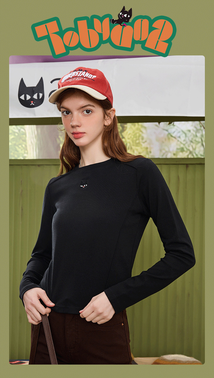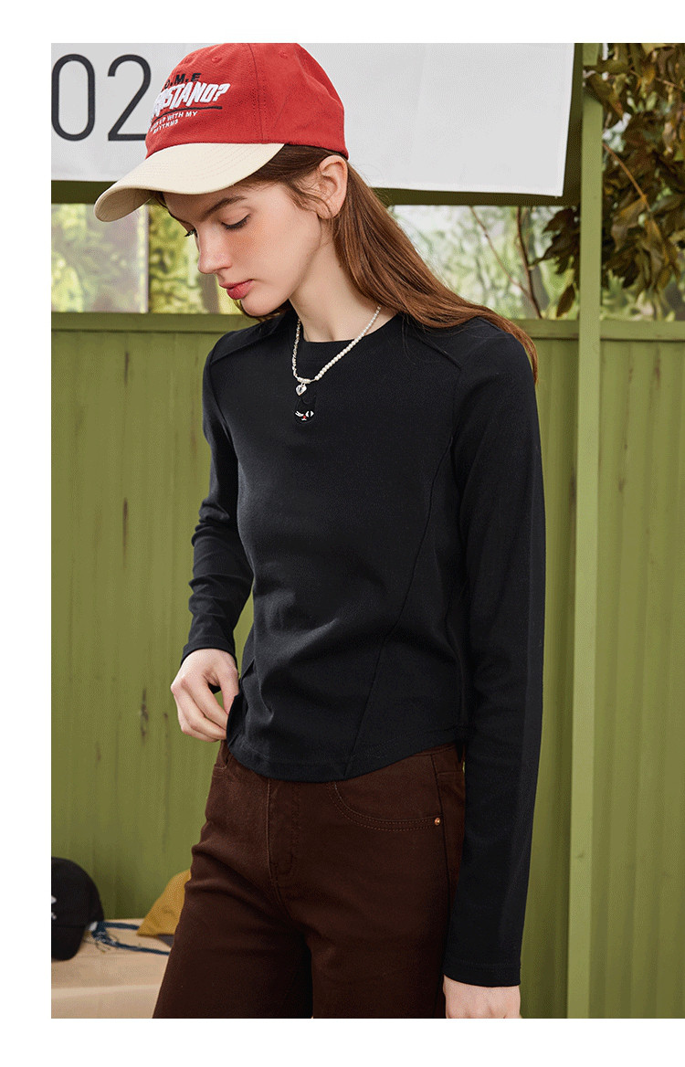 【百搭基础款】简约绣花设计纯色长袖上衣春秋休闲百搭女式T恤 954973