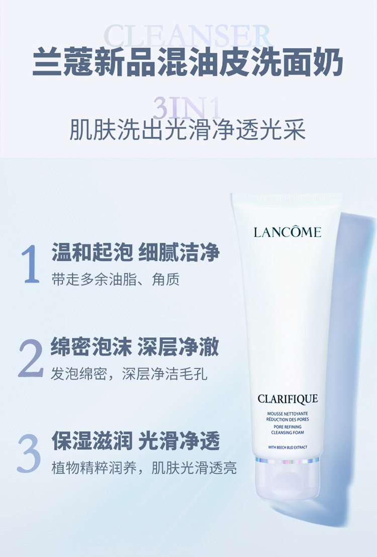 商品名称:Lancome/兰蔻 净澈焕肤洁面乳 30ml/50ml 极光洁面乳