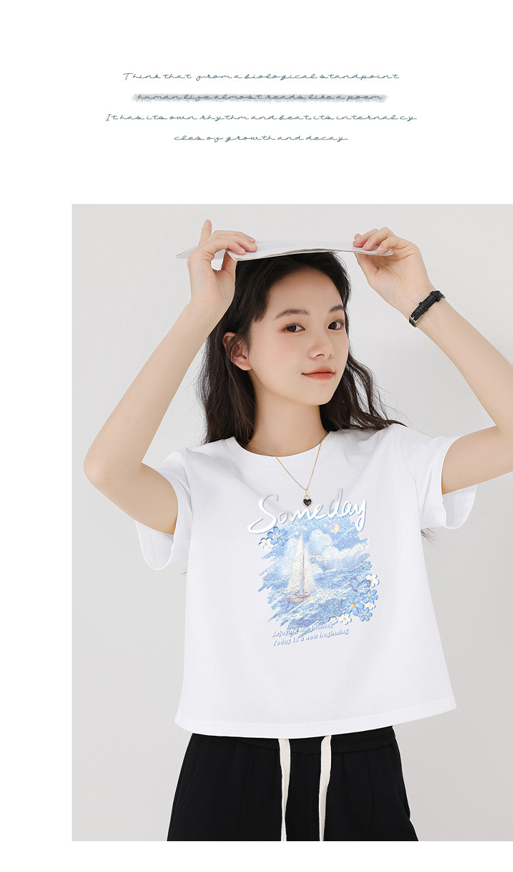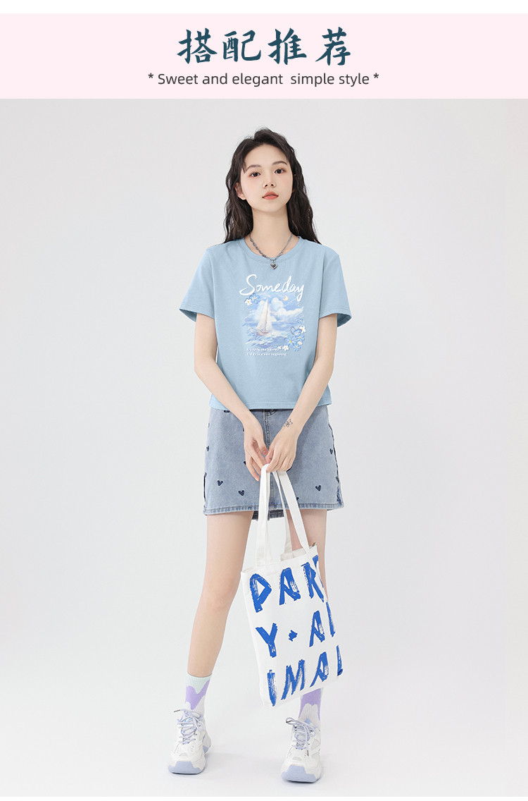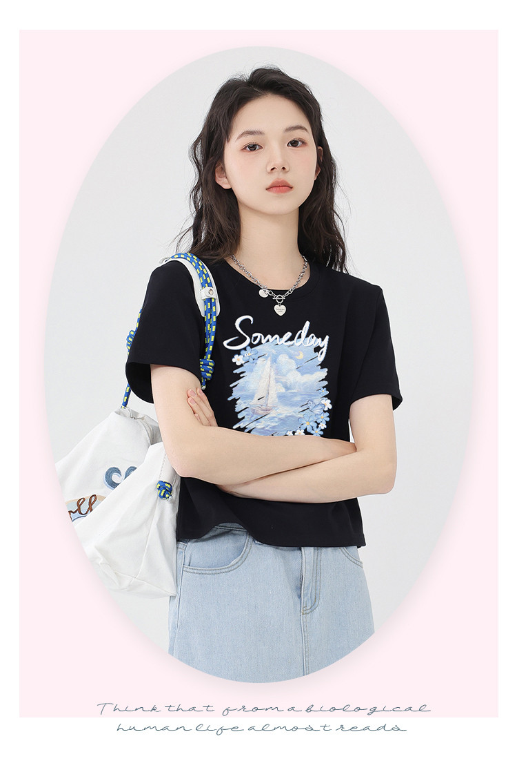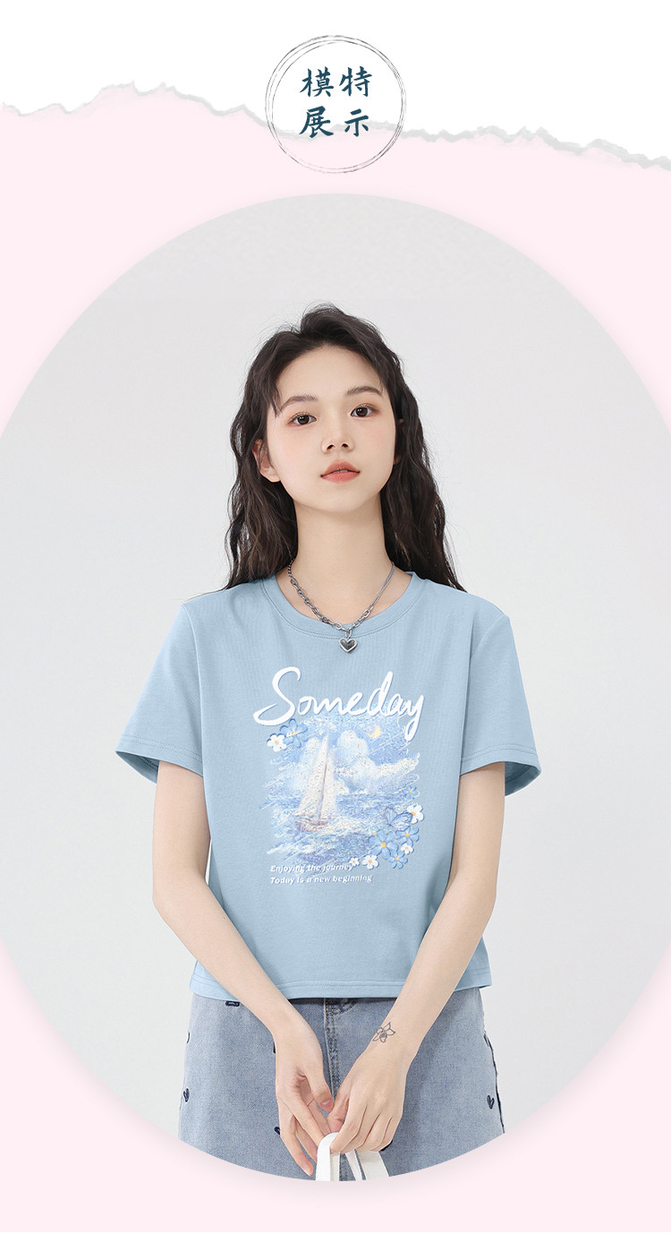 商品名称:【女装100%棉】正肩短袖T恤女夏设计感显高辣妹露脐短款上衣 517779