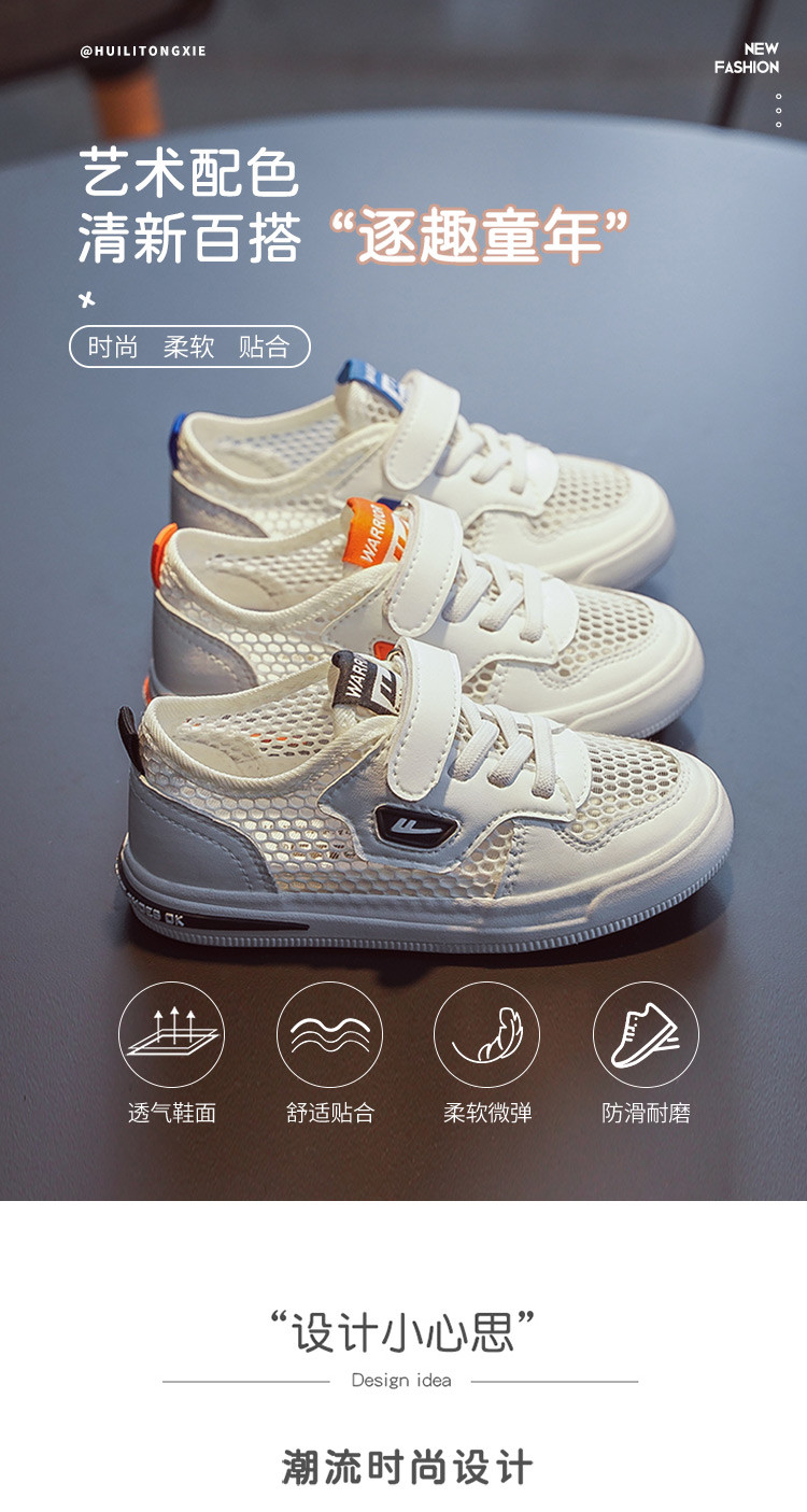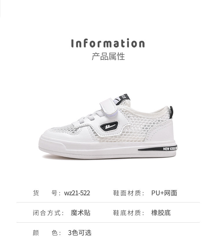 商品名称:【春季爆款】镂空网面小白鞋儿童透气舒适低帮板鞋时尚运动休闲鞋 453251