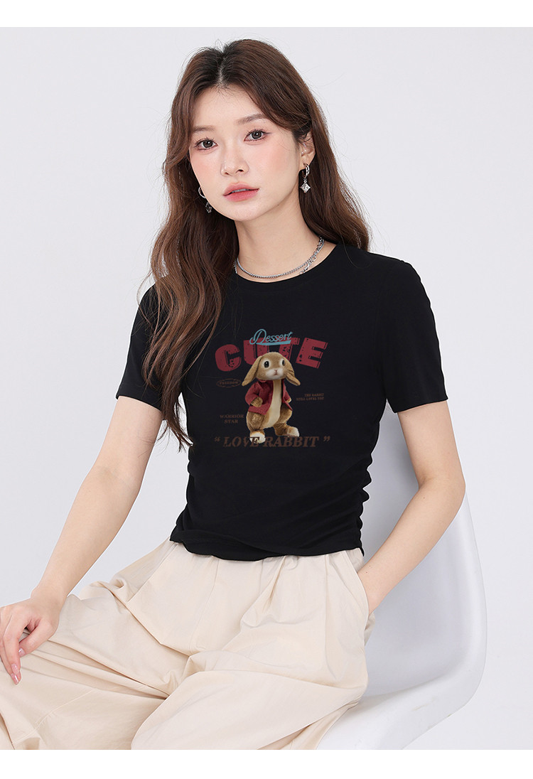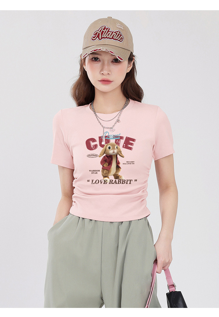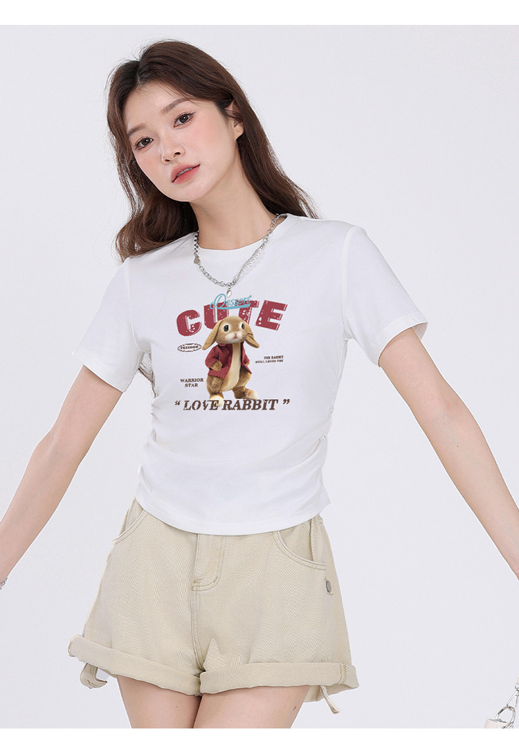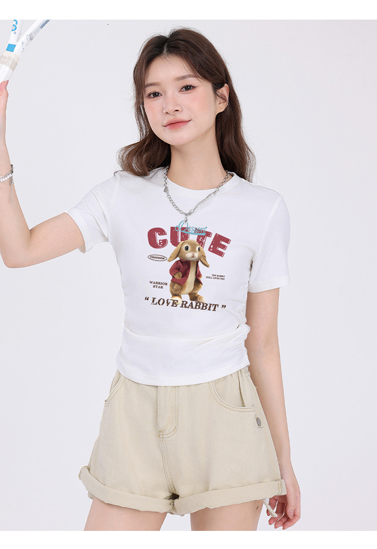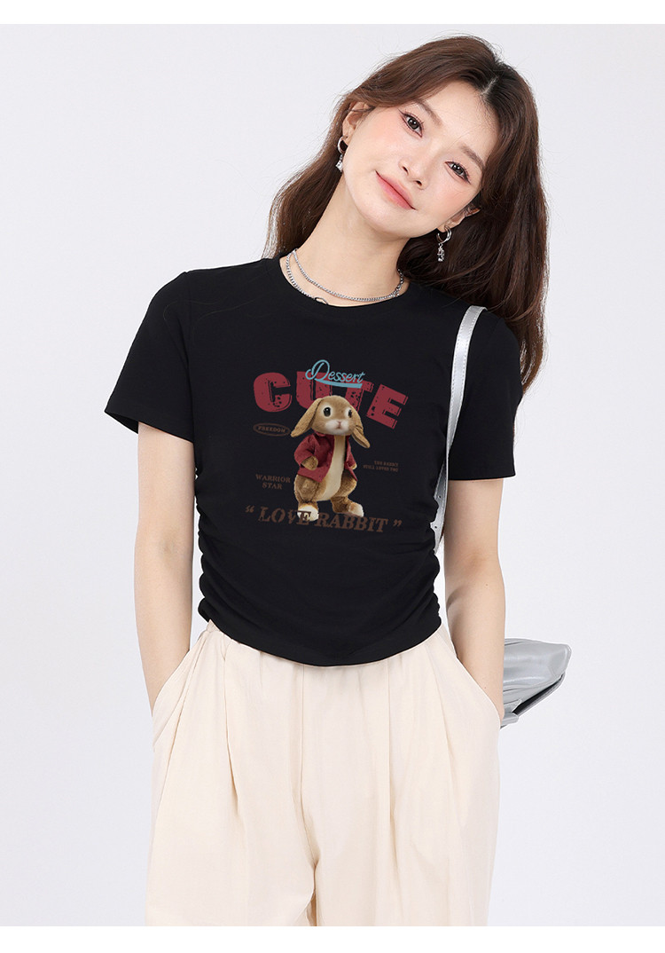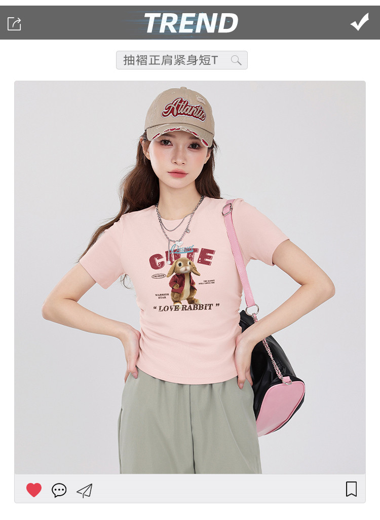 商品名称:【女装正肩】女式短款小个子T恤紧身显瘦夏季小众抽褶设计感短袖 061267