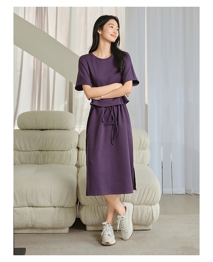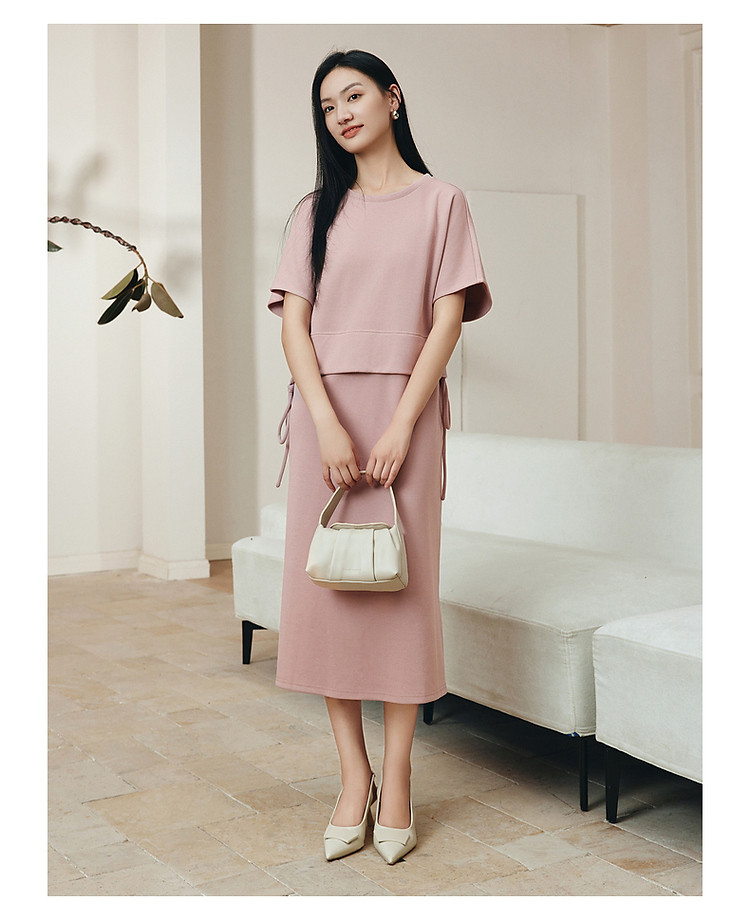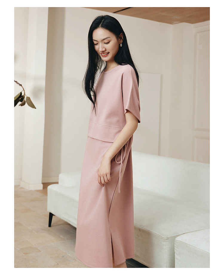 玖姿旗下安娜蔻系列休闲简约抽绳轻运动收腰连衣裙女夏季 928972