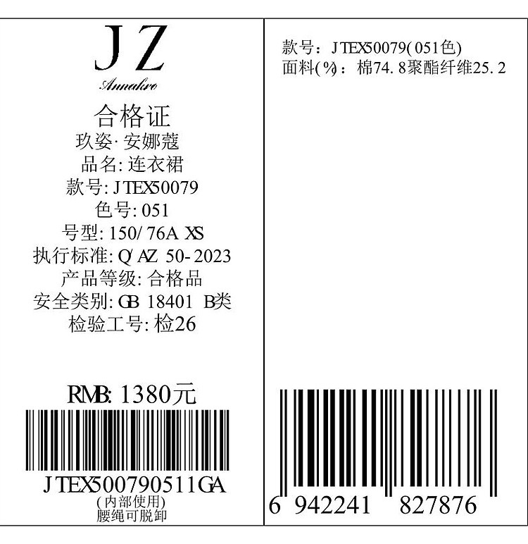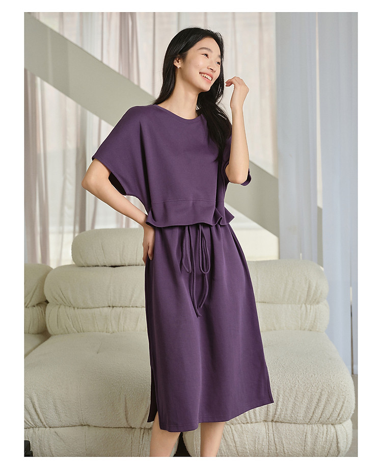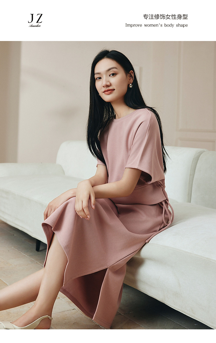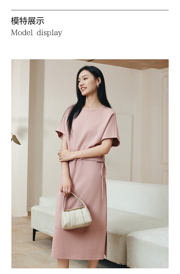 商品名称:玖姿旗下安娜蔻系列休闲简约抽绳轻运动收腰连衣裙女夏季 928972