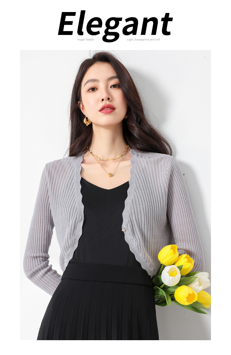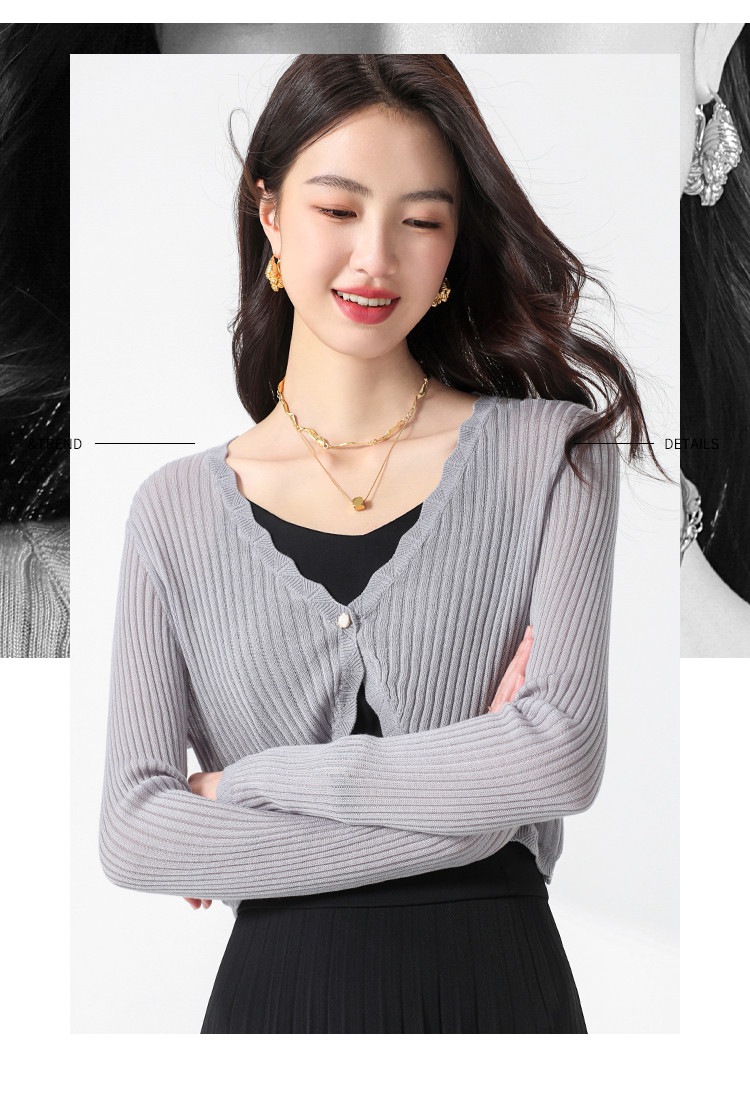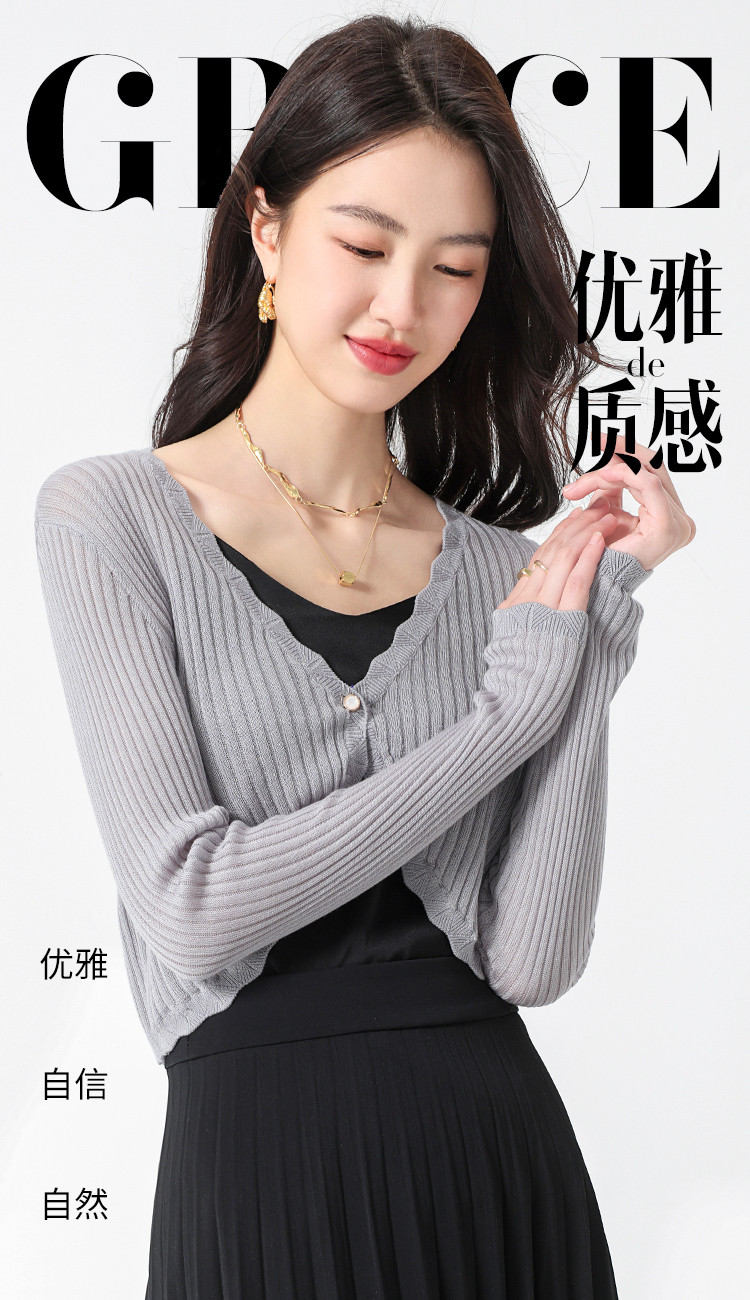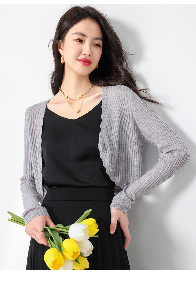 【含桑蚕丝】轻薄透气纯色百搭单粒扣针织开衫毛衣外套空调衫 509267