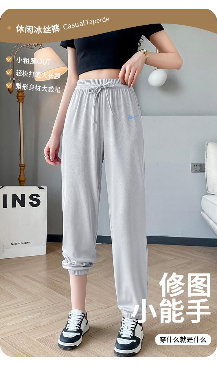 商品名称:【女装】夏季女式宽松设计感运动休闲长裤薄款垂感显瘦橡筋束脚裤 722963