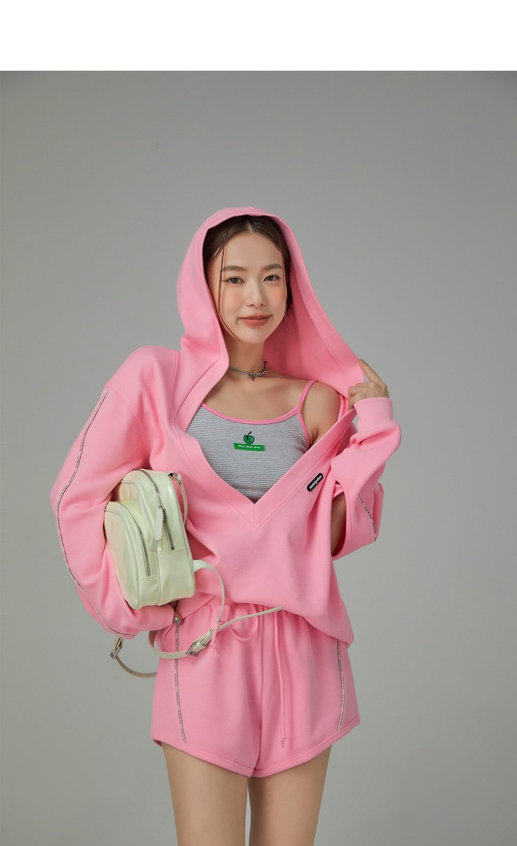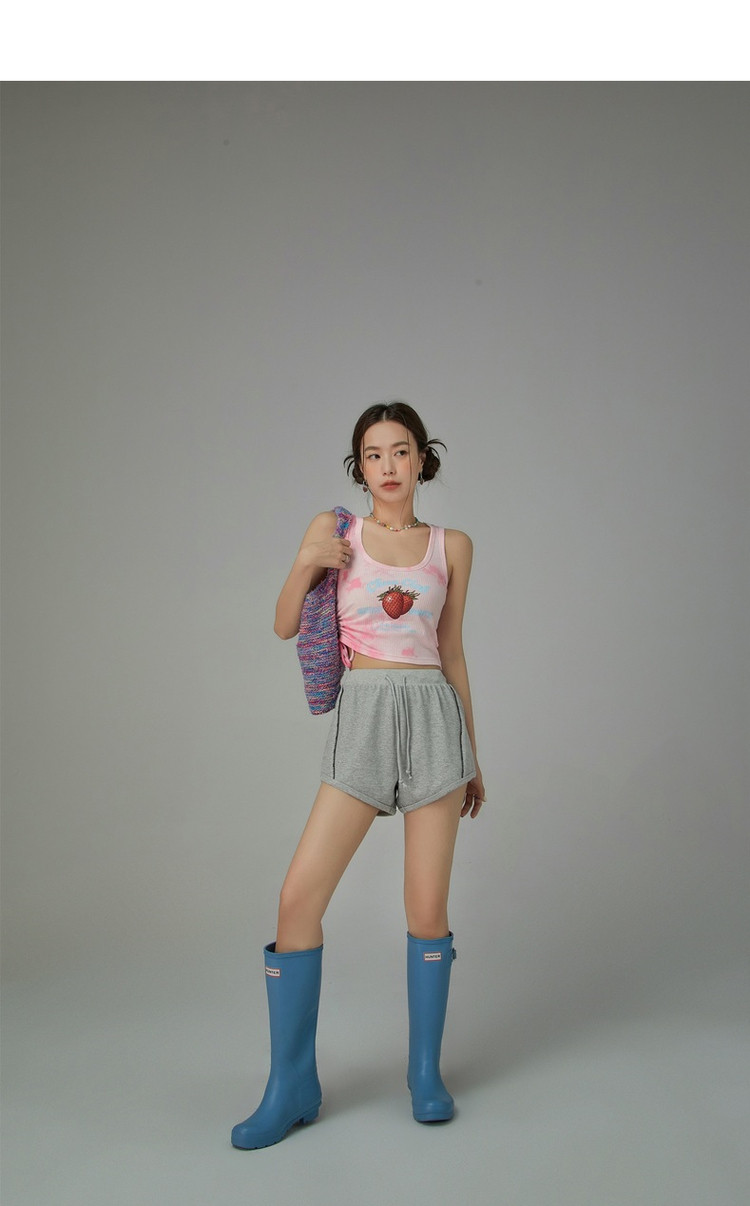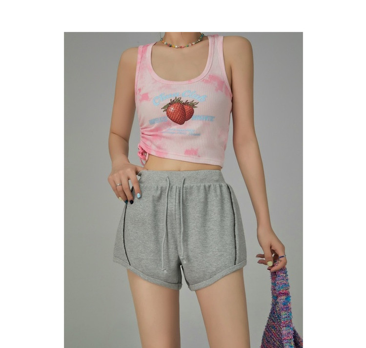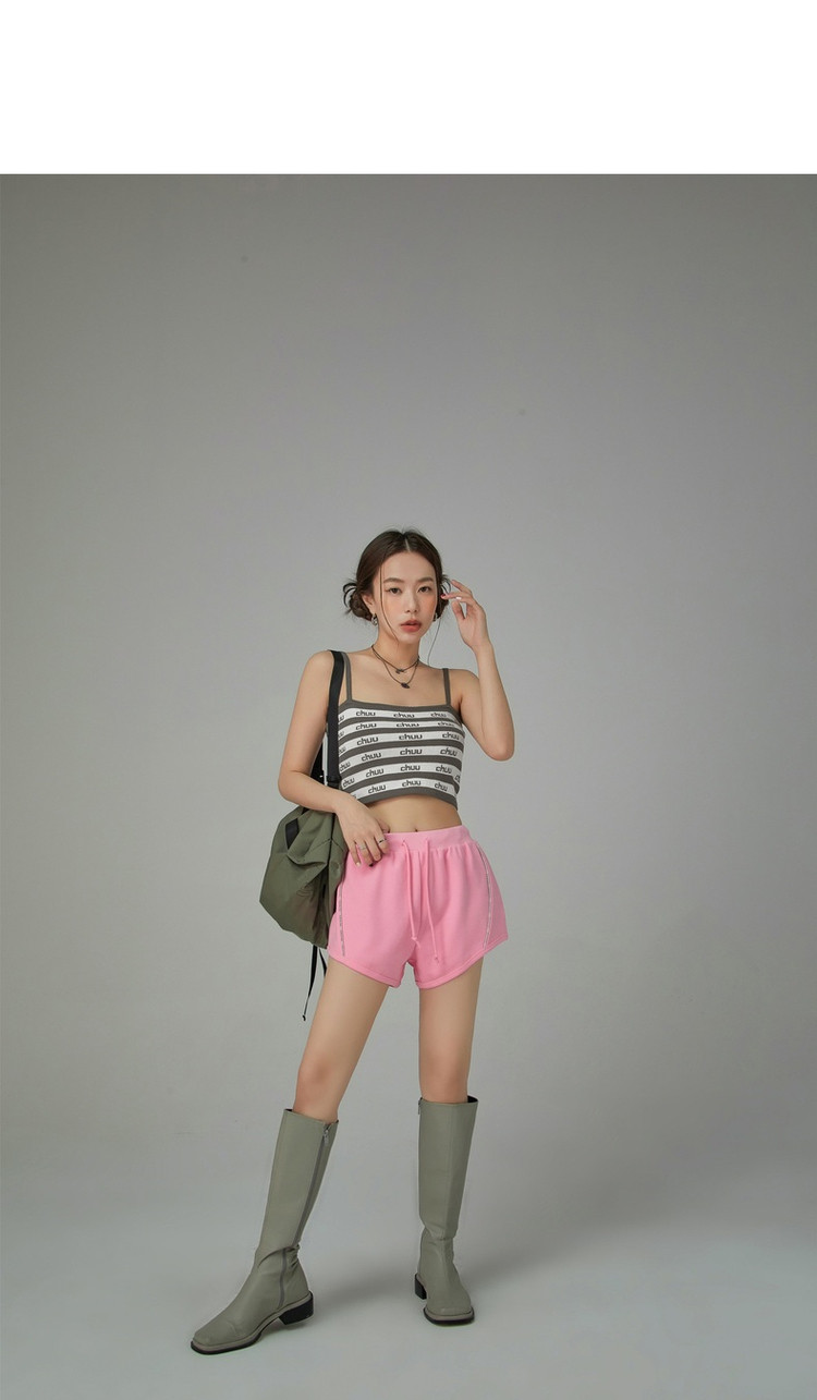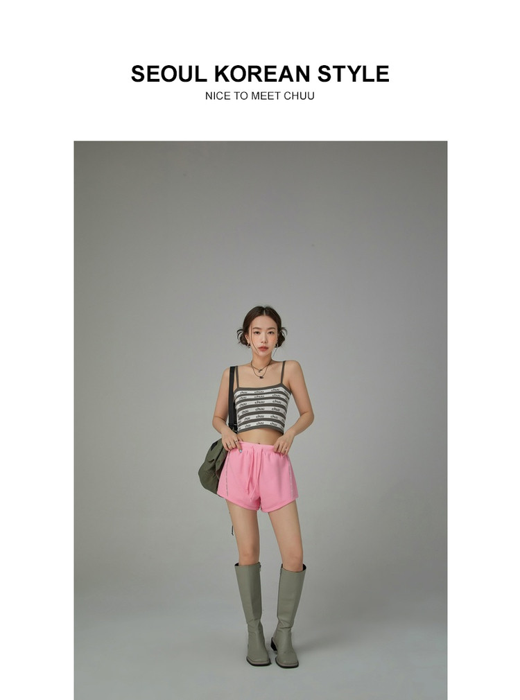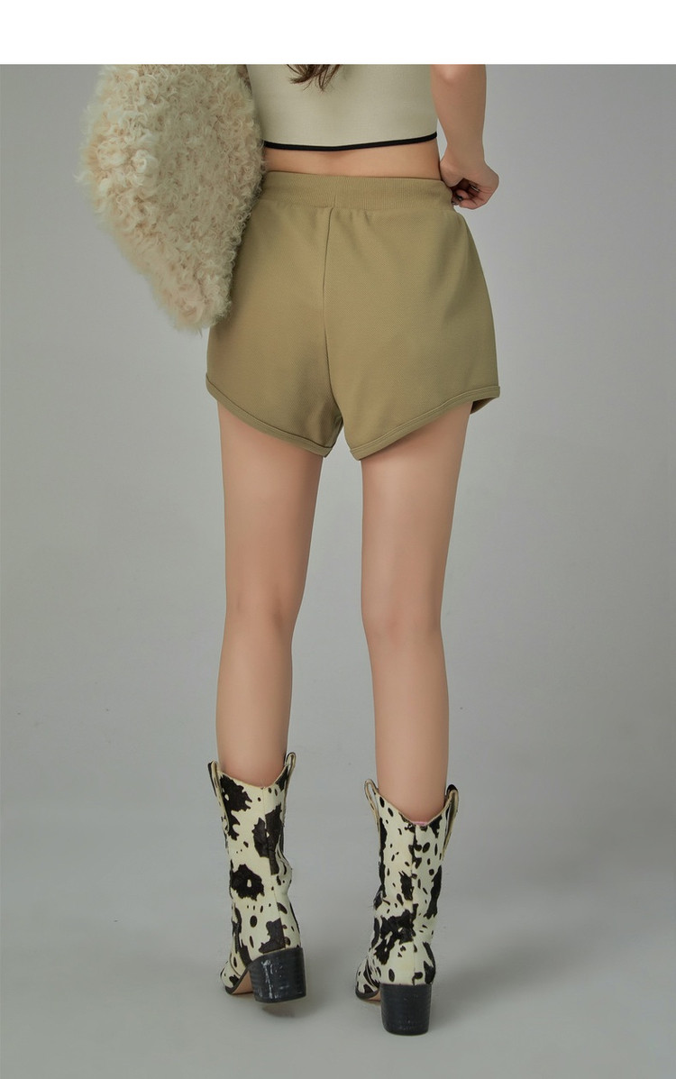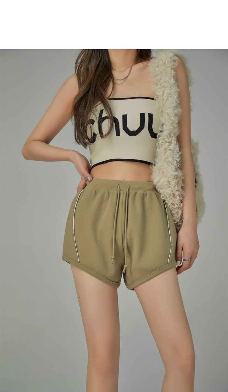CHUU纯色抽绳休闲裤女秋季高腰宽松显瘦时尚百搭短裤子 444819