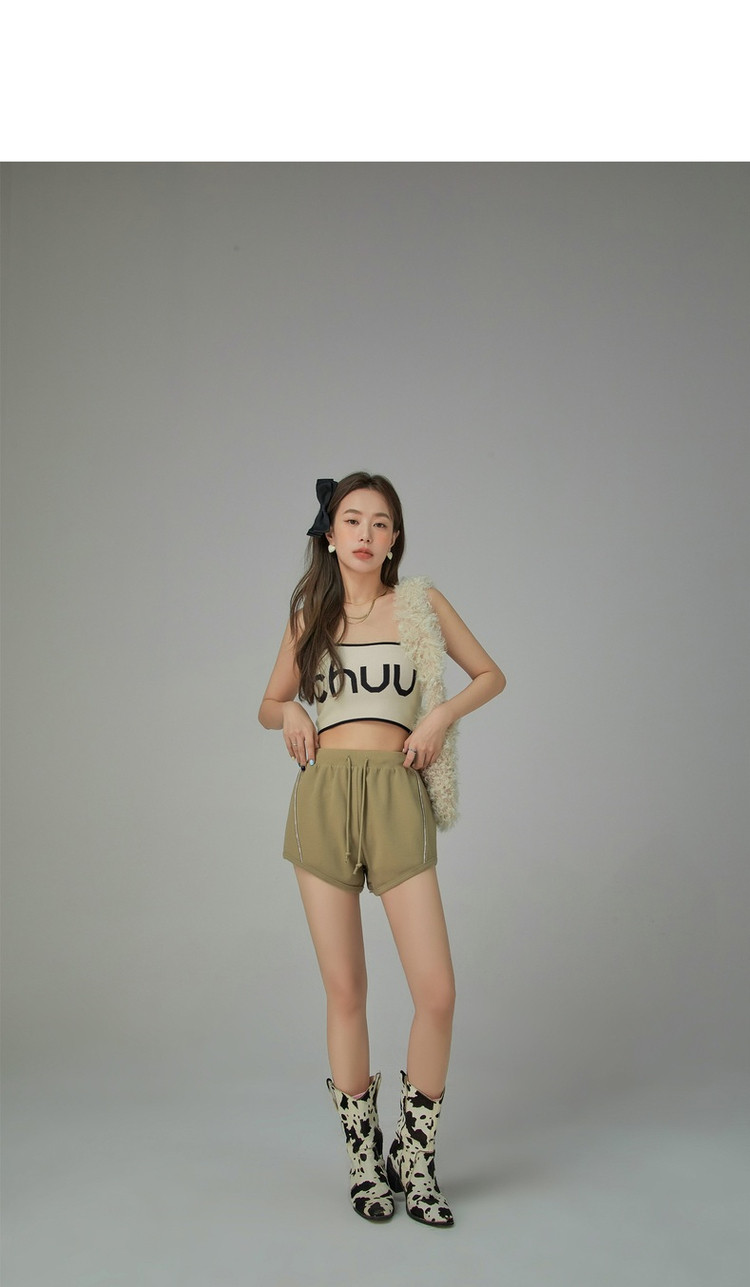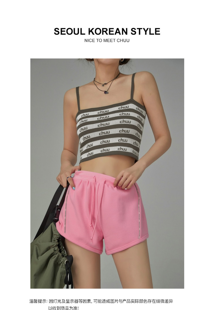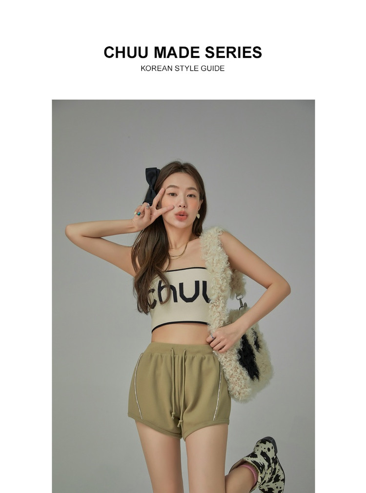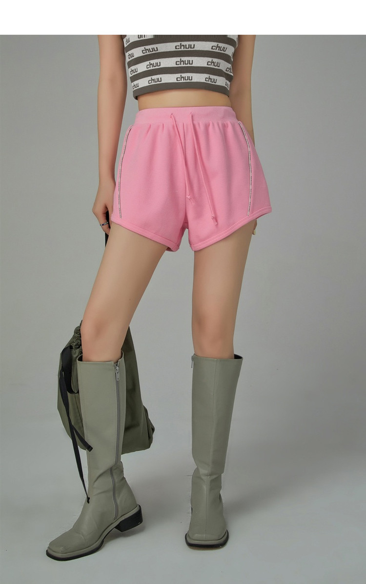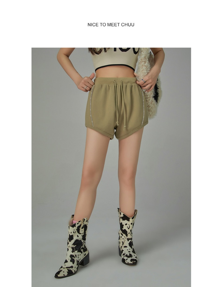 商品名称:CHUU纯色抽绳休闲裤女秋季高腰宽松显瘦时尚百搭短裤子 444819