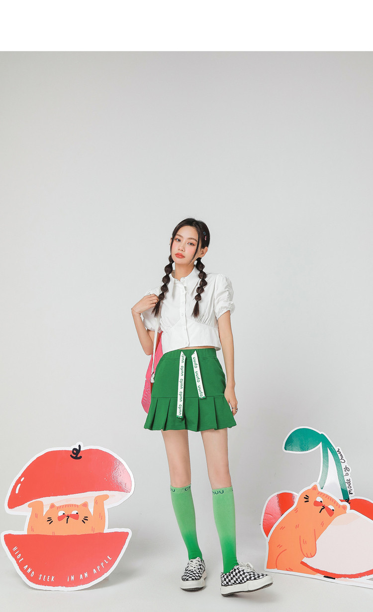 商品名称:CHUU时尚高腰系带半身裙女夏季设计感褶皱小众显瘦短裙子 315091