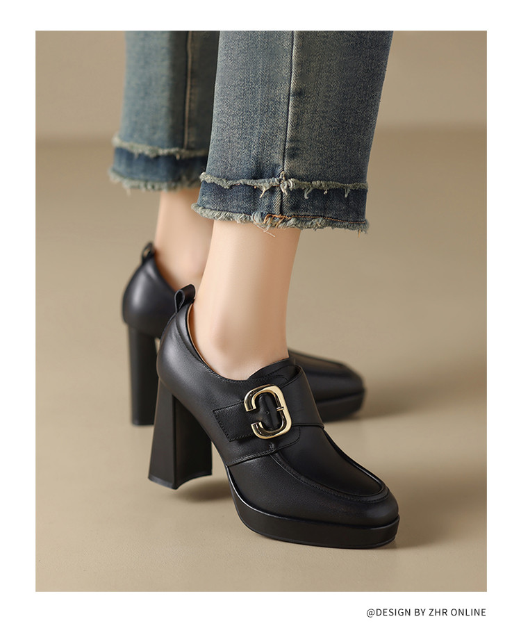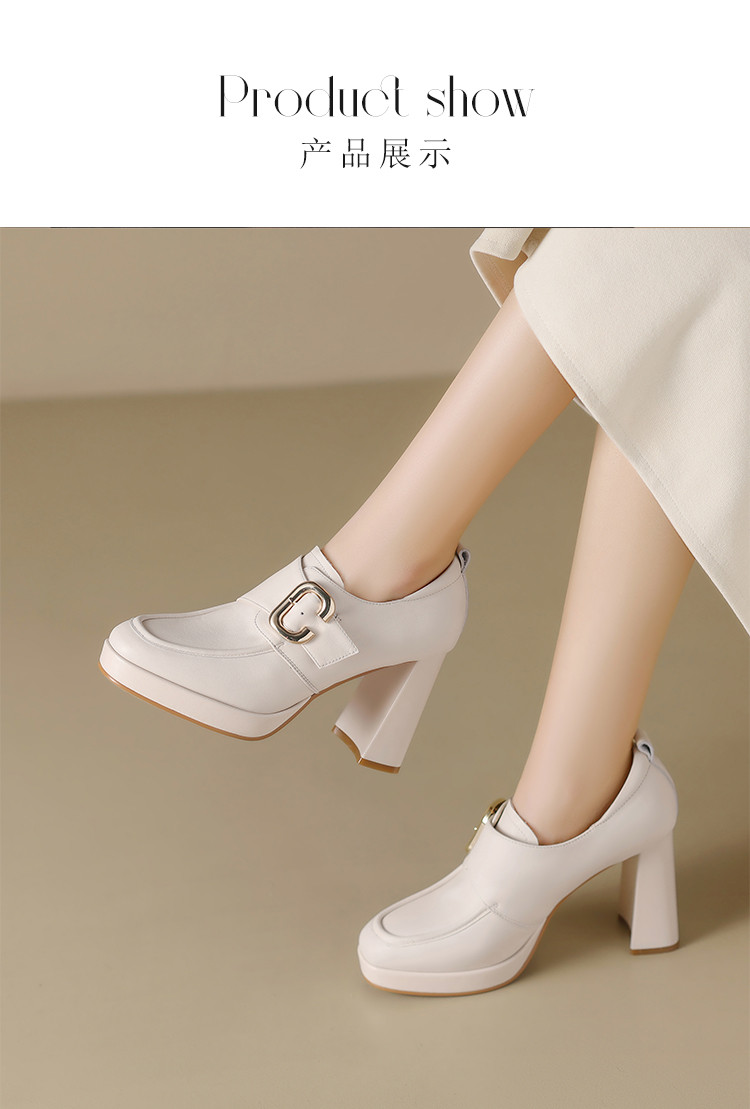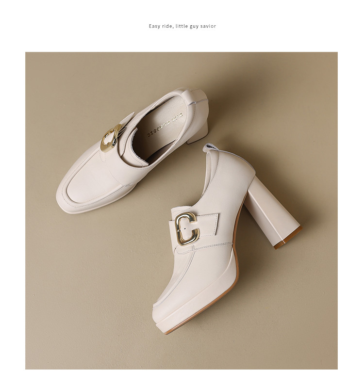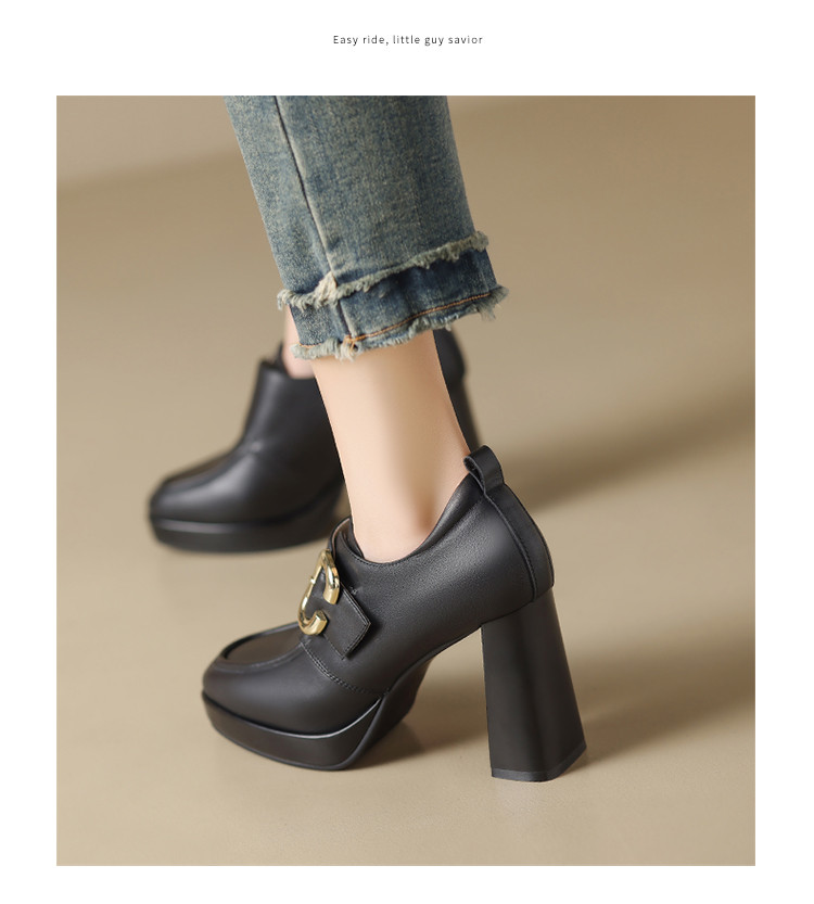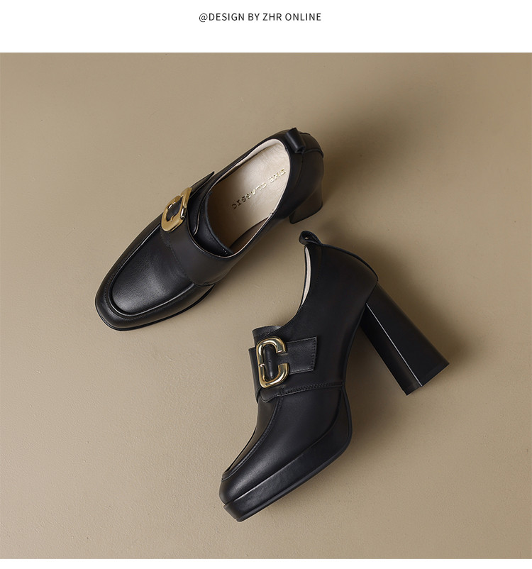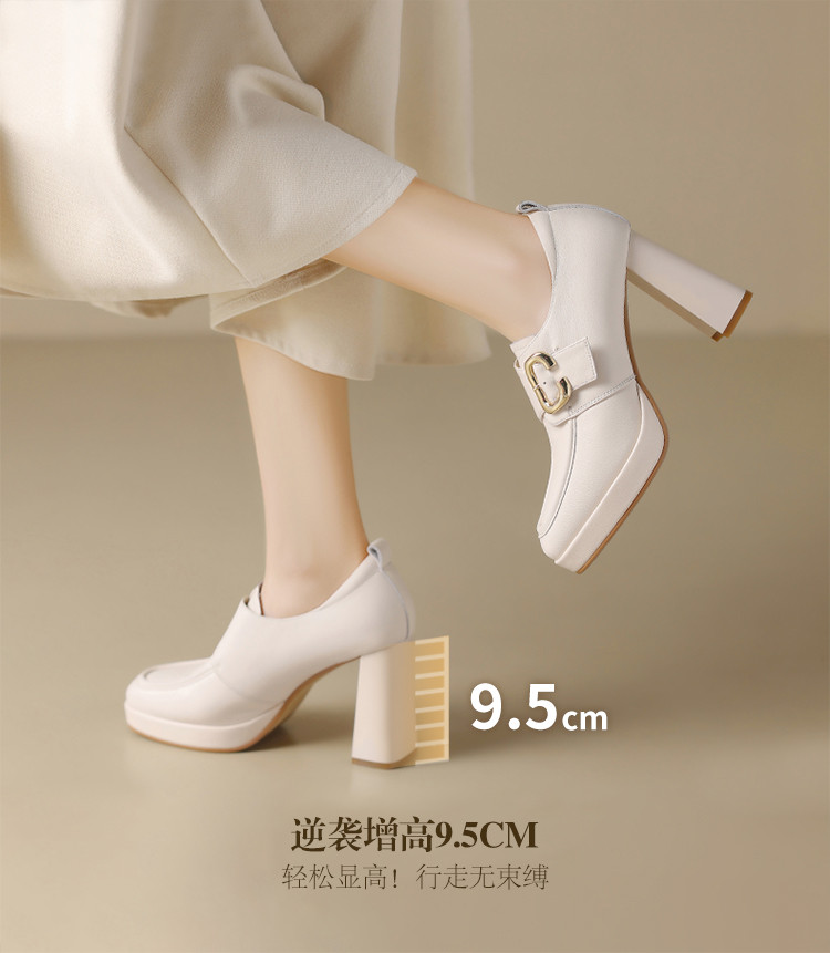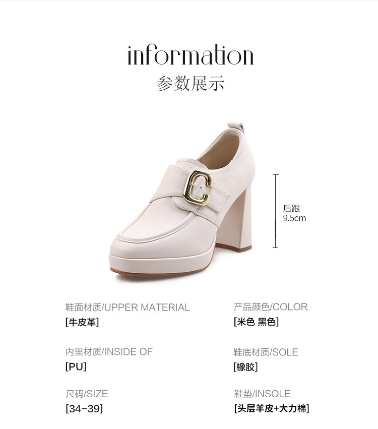 商品名称:【头层牛皮】金属饰扣深口单鞋小个子增高粗跟高跟鞋春秋女士单鞋 495744