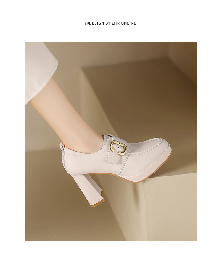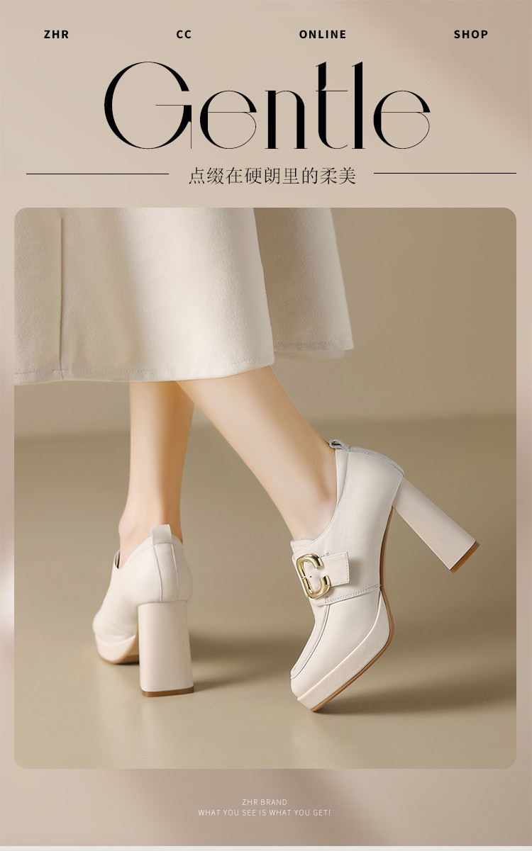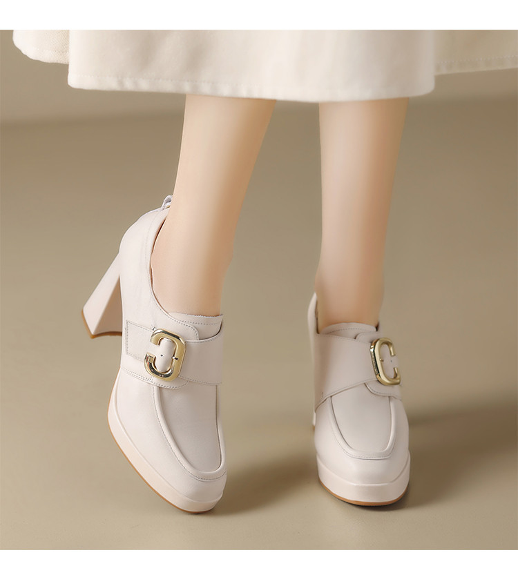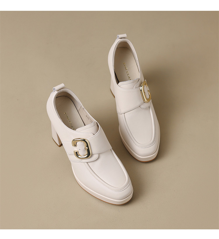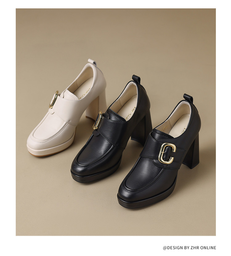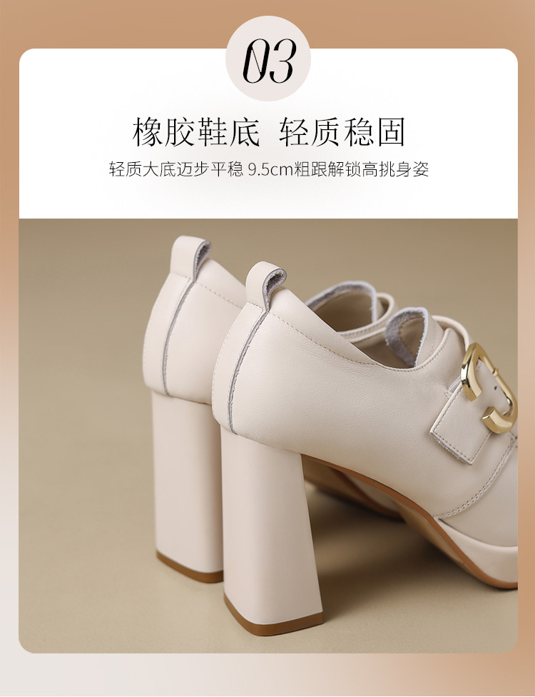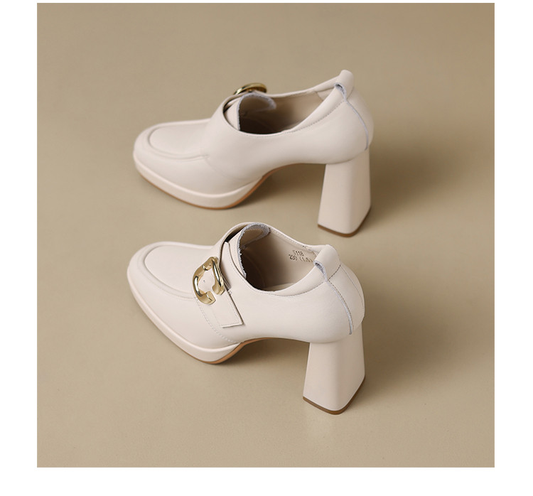 商品名称:【头层牛皮】金属饰扣深口单鞋小个子增高粗跟高跟鞋春秋女士单鞋 495744