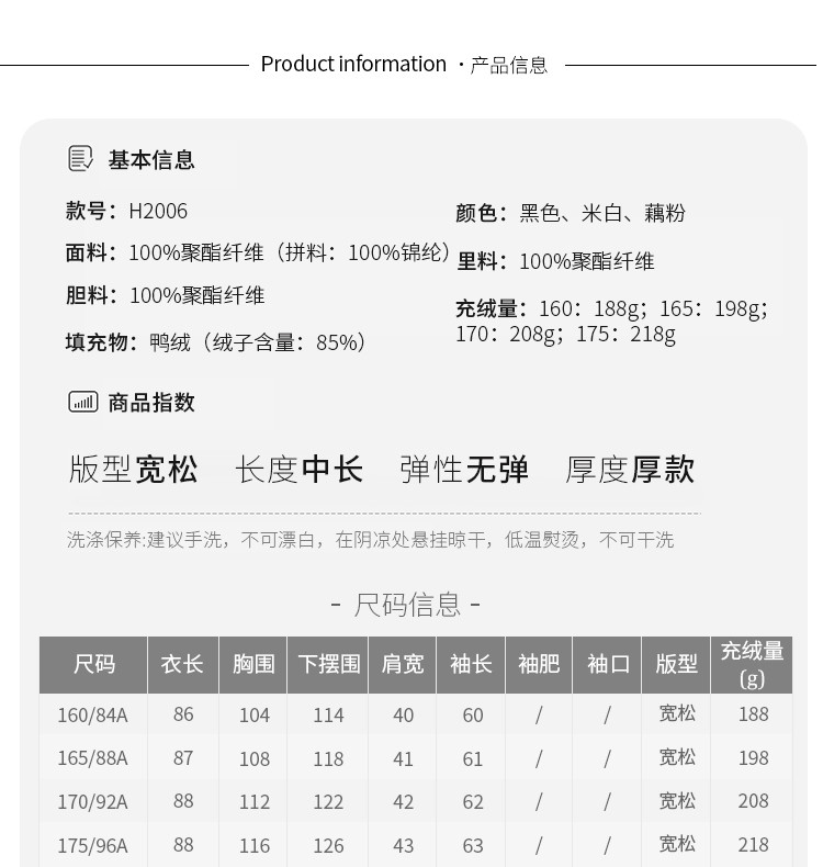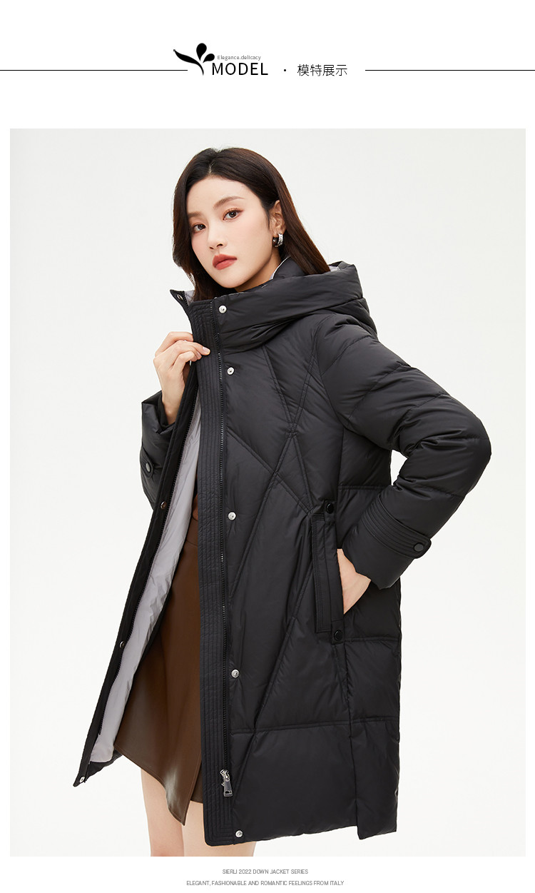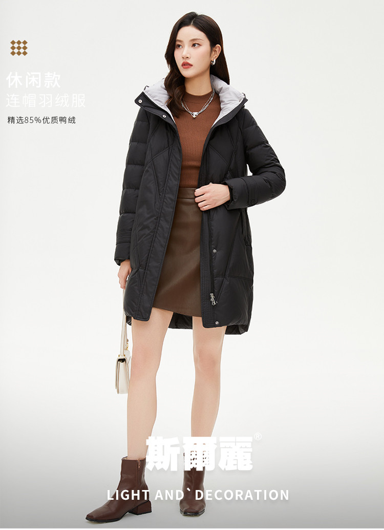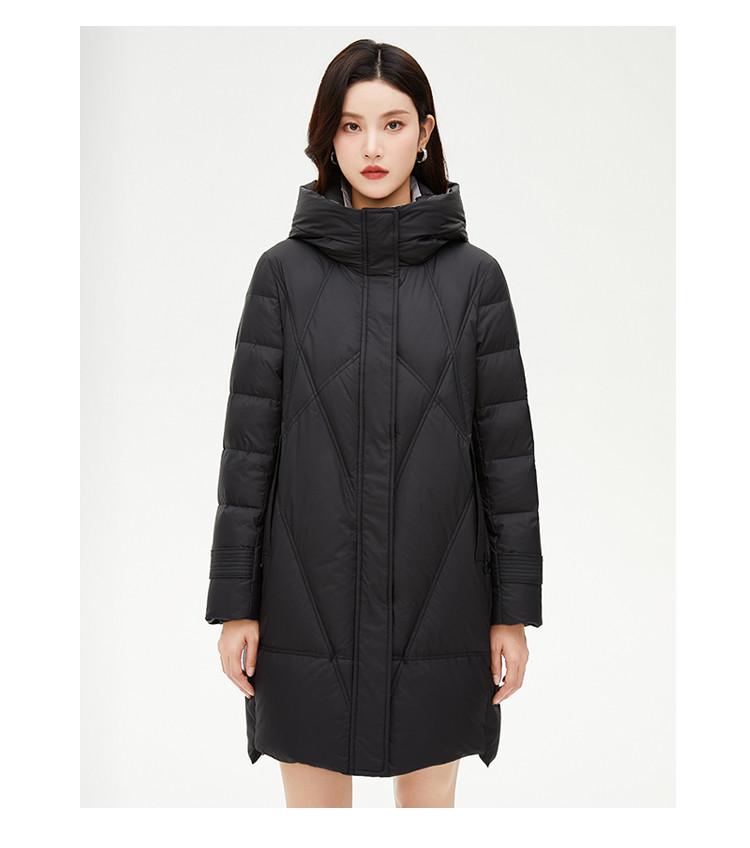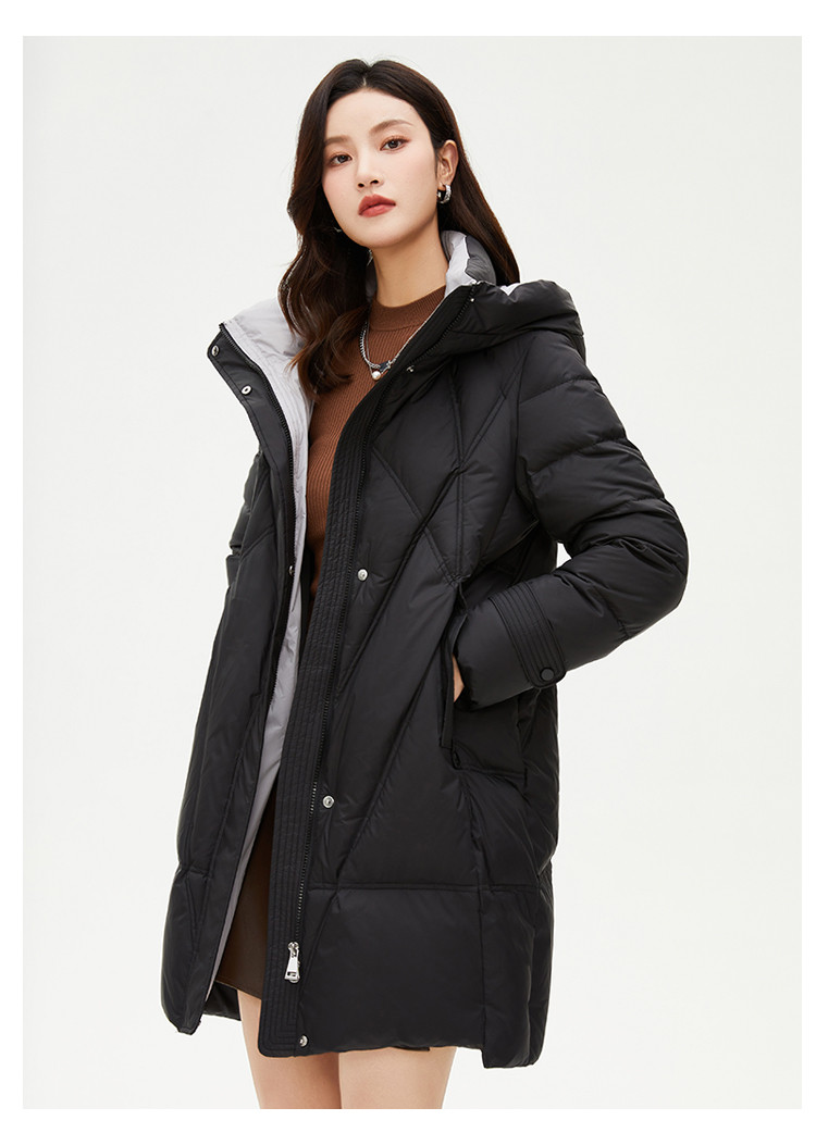 商品名称:【好物推荐】简约风立领厚款女士新国标宽松大码中长款休闲羽绒服 584799
