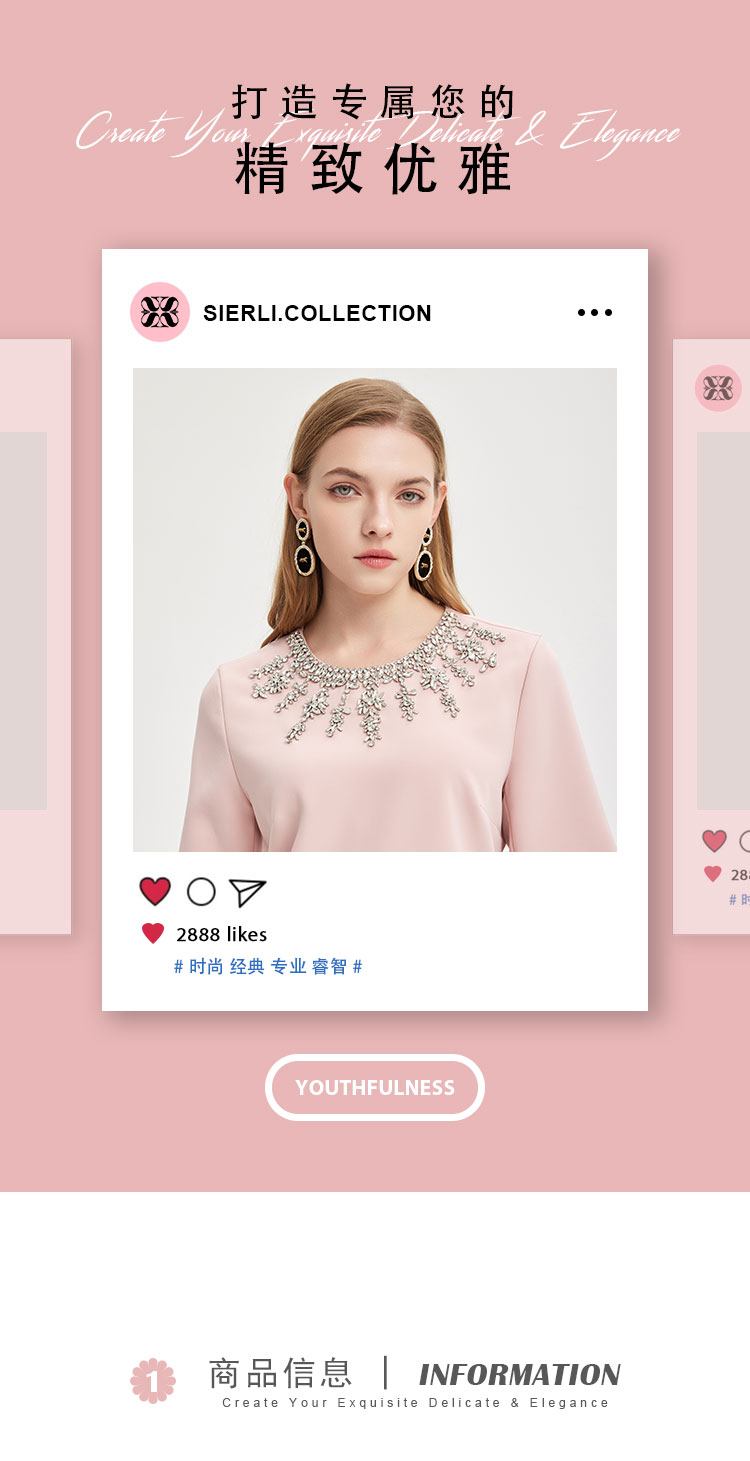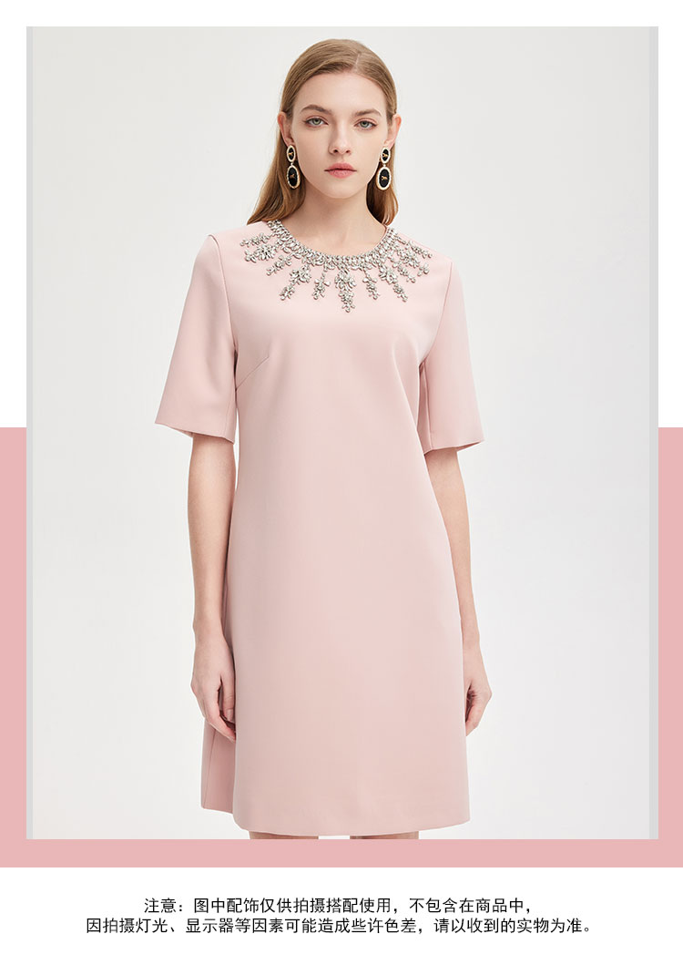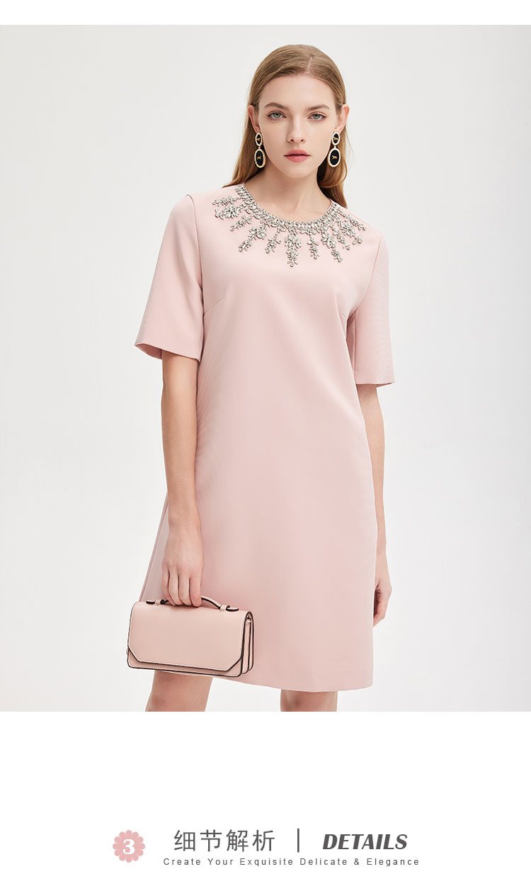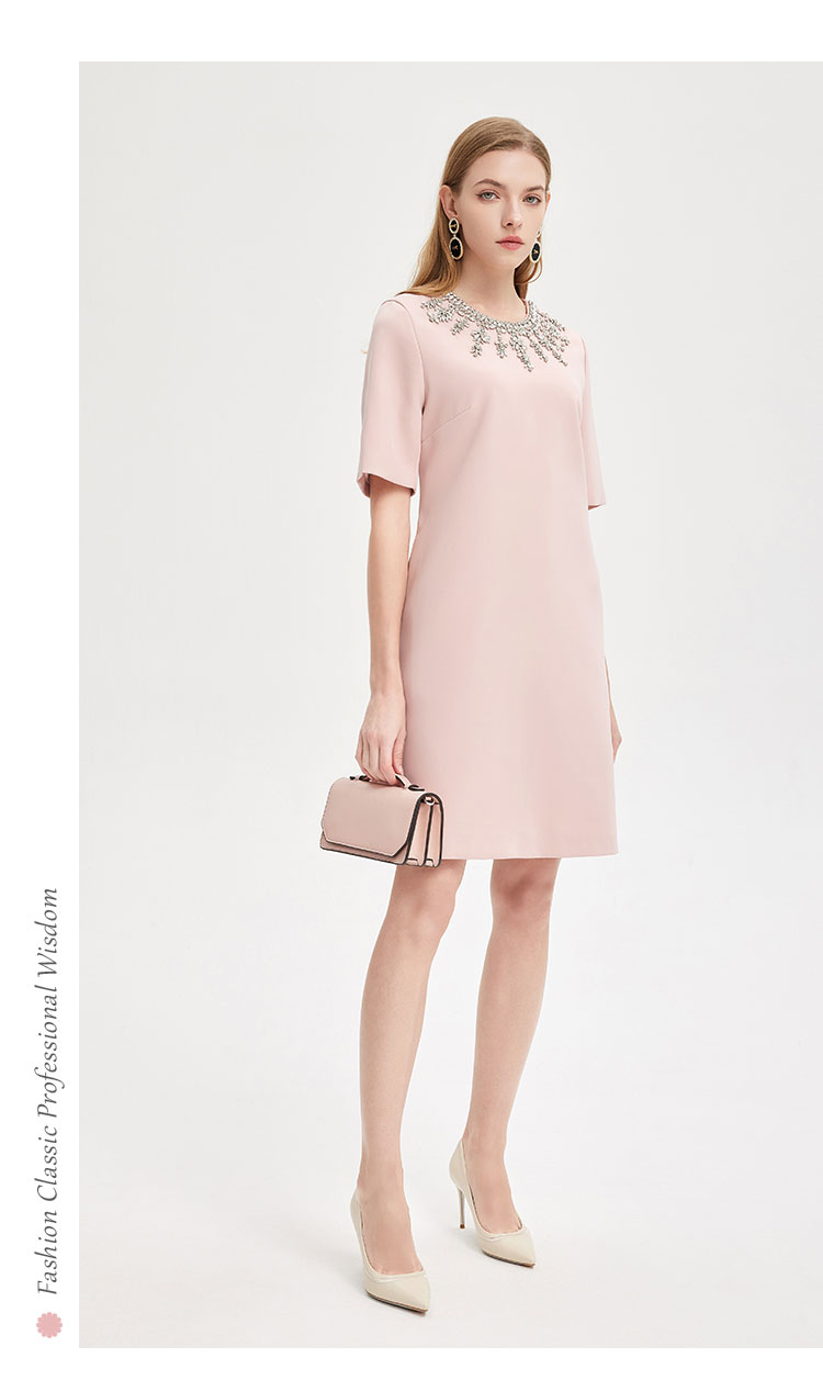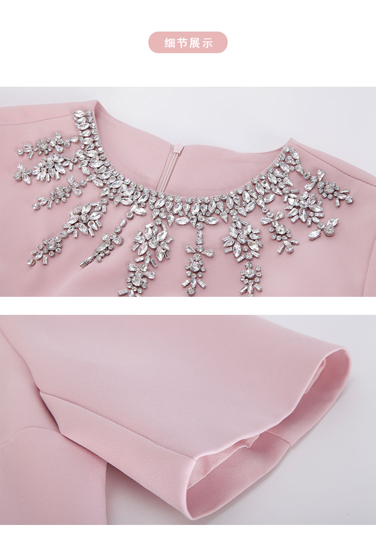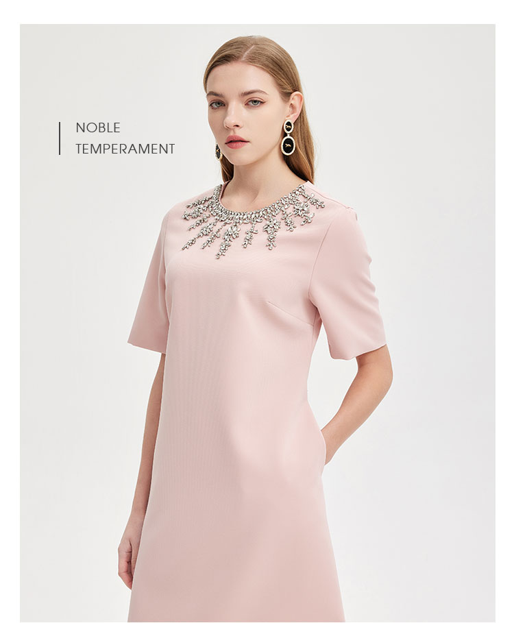 商品名称:轻奢名媛风华丽钉珠H身型显瘦减龄高级质感礼服连衣裙 607199