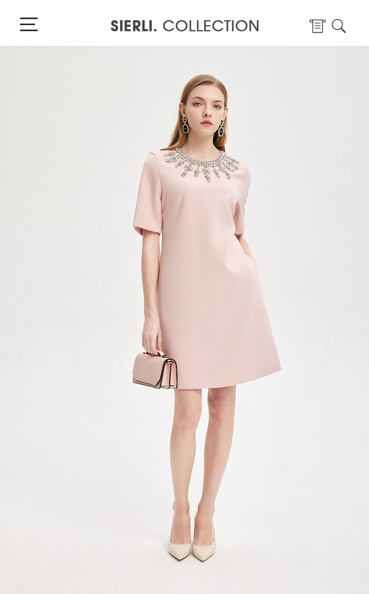 轻奢名媛风华丽钉珠H身型显瘦减龄高级质感礼服连衣裙 607199