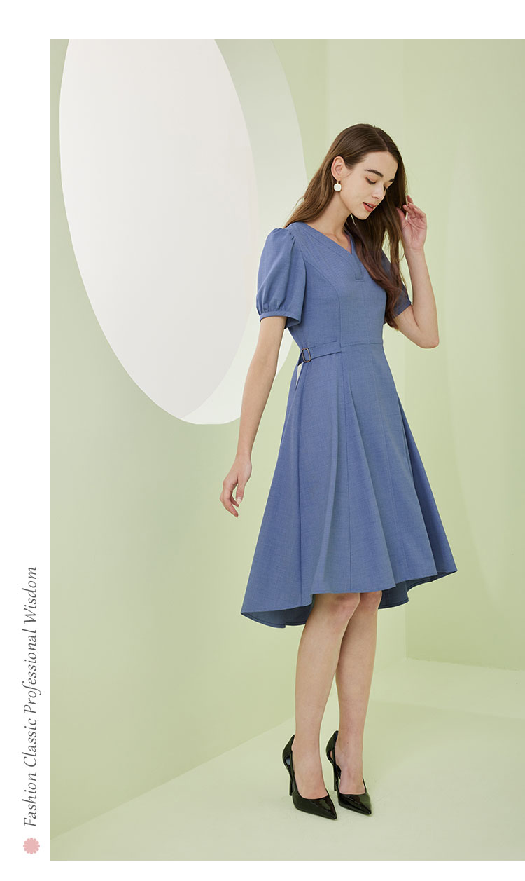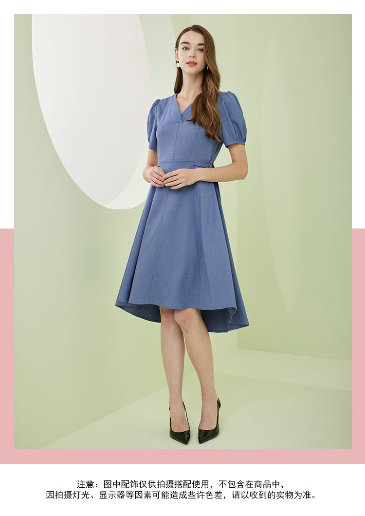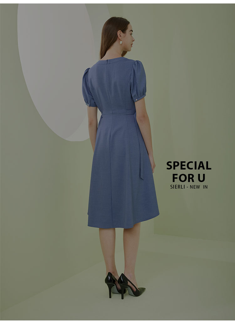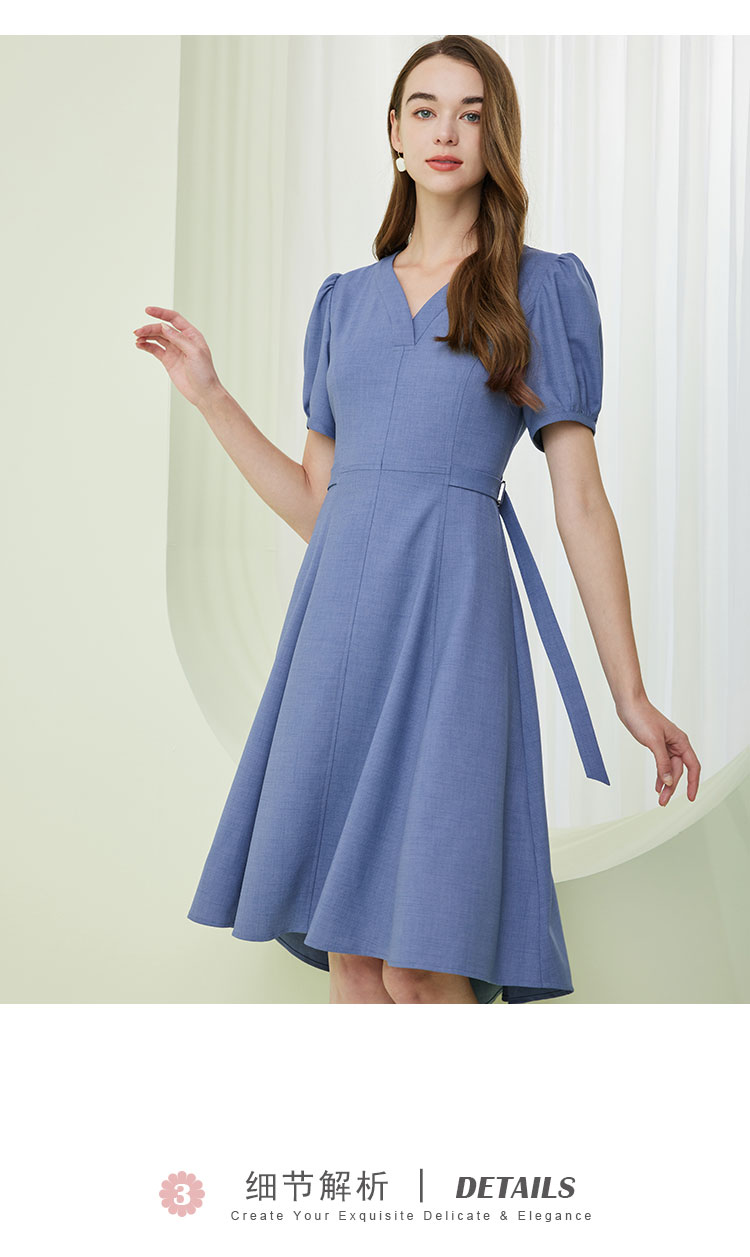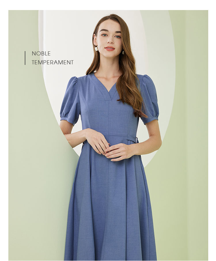 商品名称:夏季时尚V领短袖系带温柔淑女优雅气质中长A摆连衣裙 468063