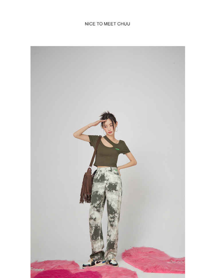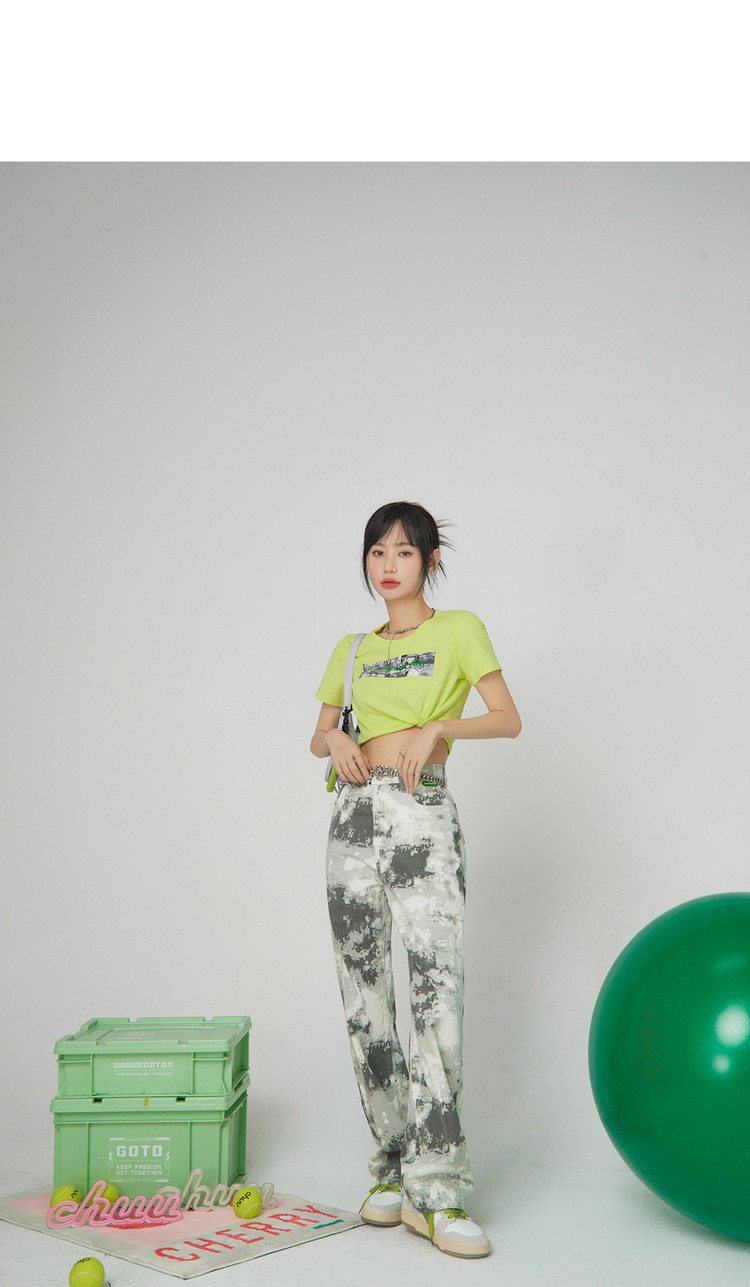 商品名称:高腰渐变色休闲裤女夏季韩版显瘦直筒长裤子 543251